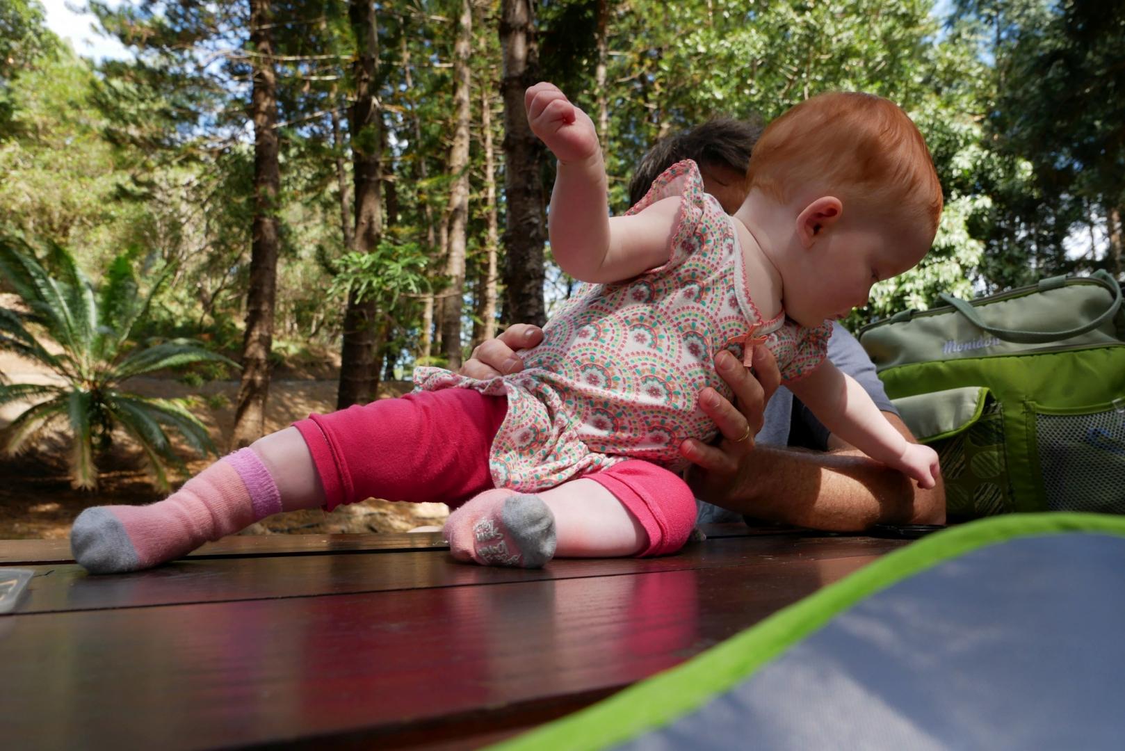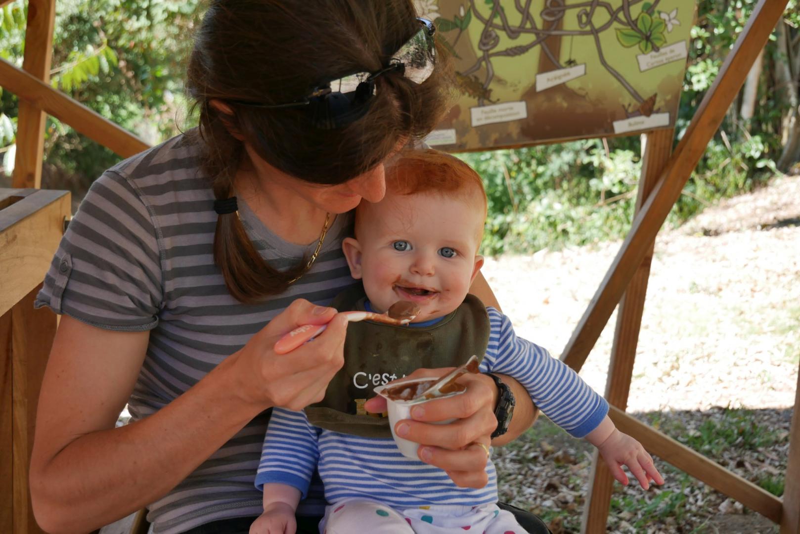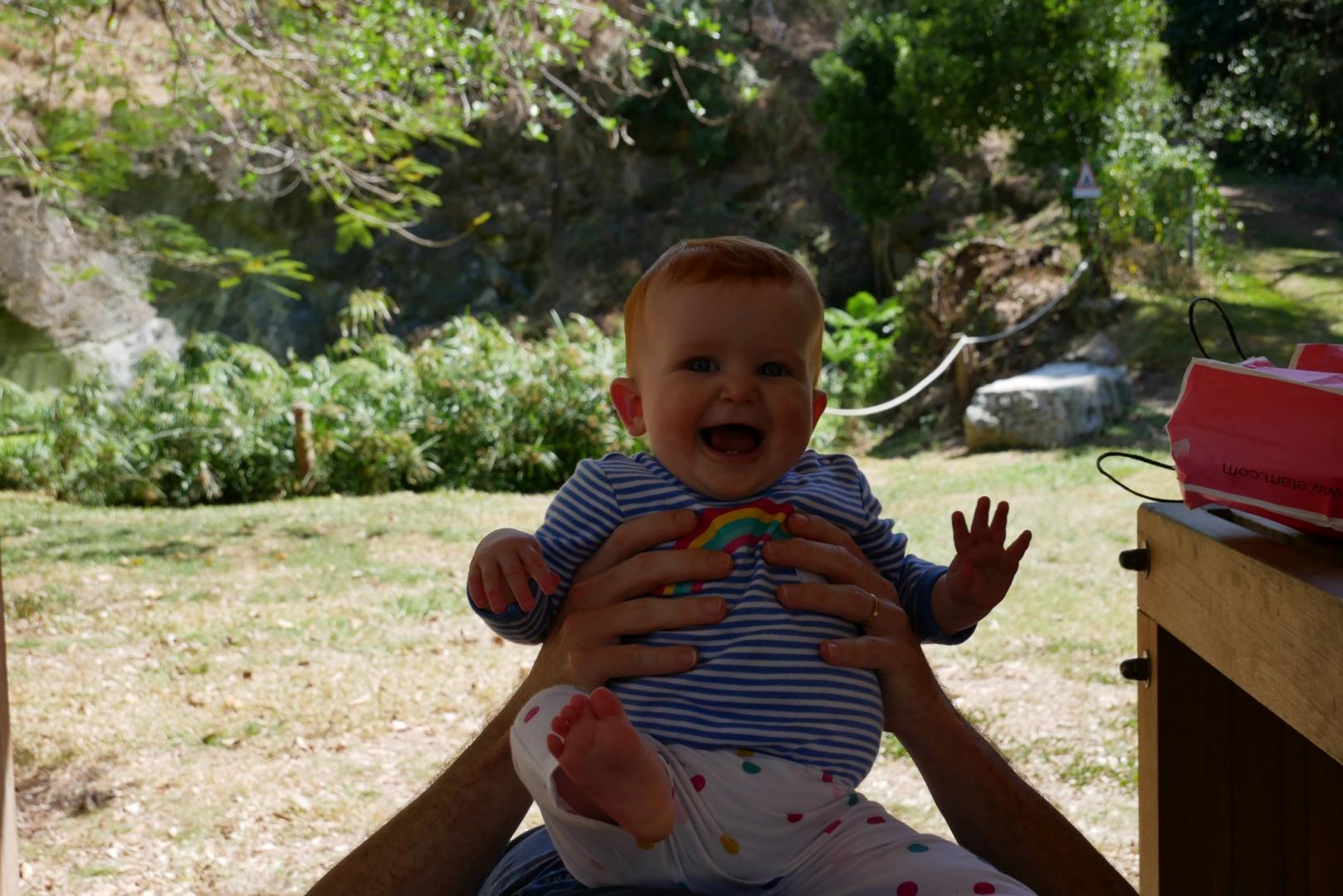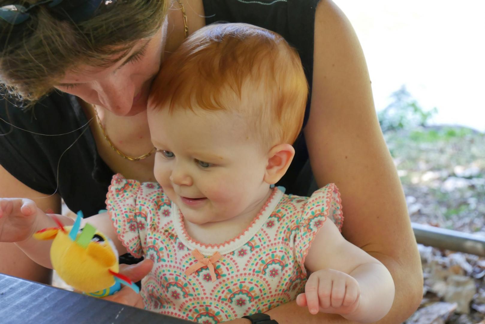 Après une nuit correcte, j’ai redécouvert encore tout cela. On est allés marcher (enfin surtout eux hein … moi je suis en kangourou), faire une ballade de 1h30-2h00. A mi-parcours je me suis un peu lassée et du coup j’avoue m’être un peu assoupie (oui, dans mon kangourou !) … pas longtemps hein, à peine 45 minutes. Au réveil on était presque revenus, moi j’ai apprécié au final. Après une nouvelle baignade, on est finalement repartis vers la maison, je soupçonne mes parents d’avoir innocemment décalé ma sieste, en tous cas, j’ai dormi une partie du trajet.