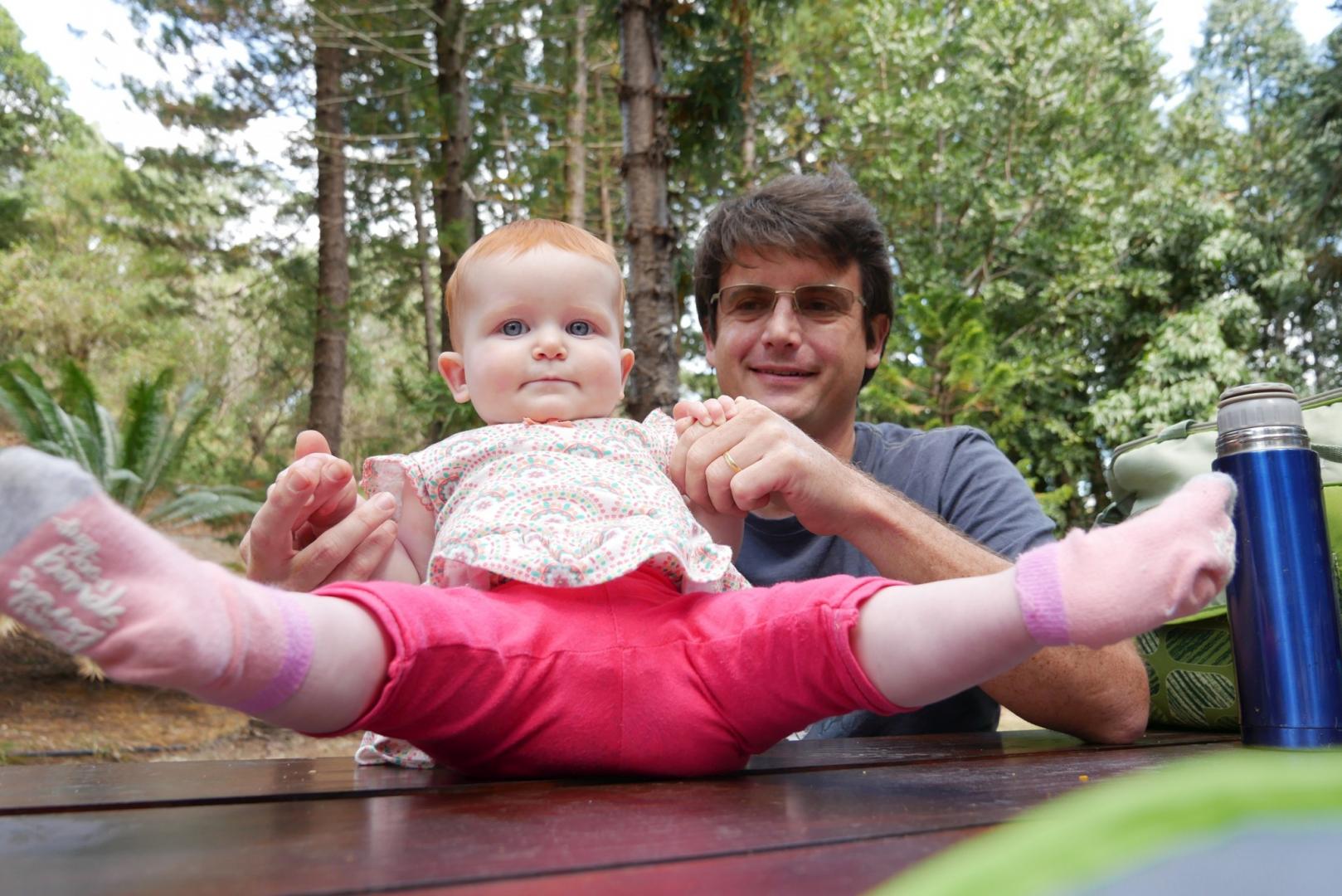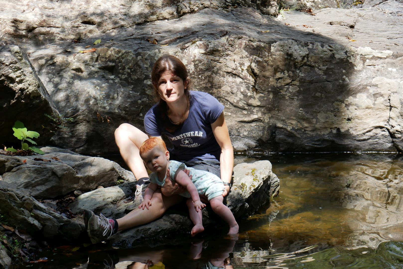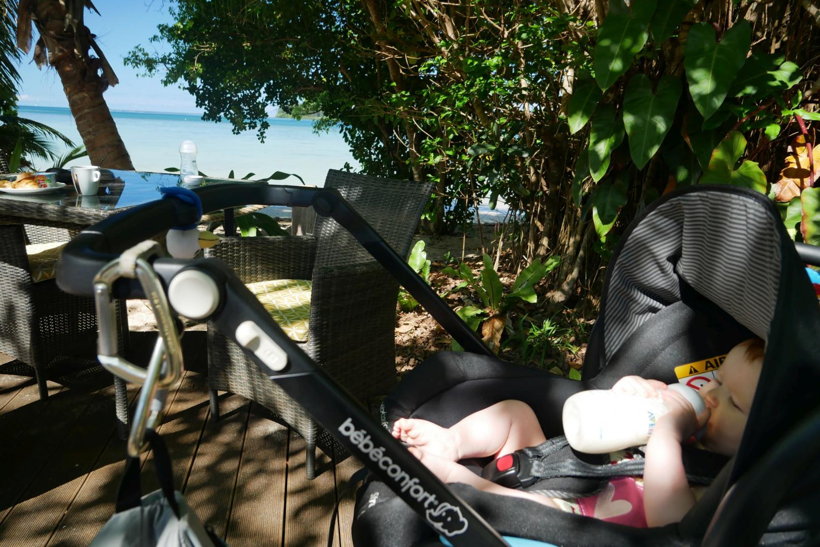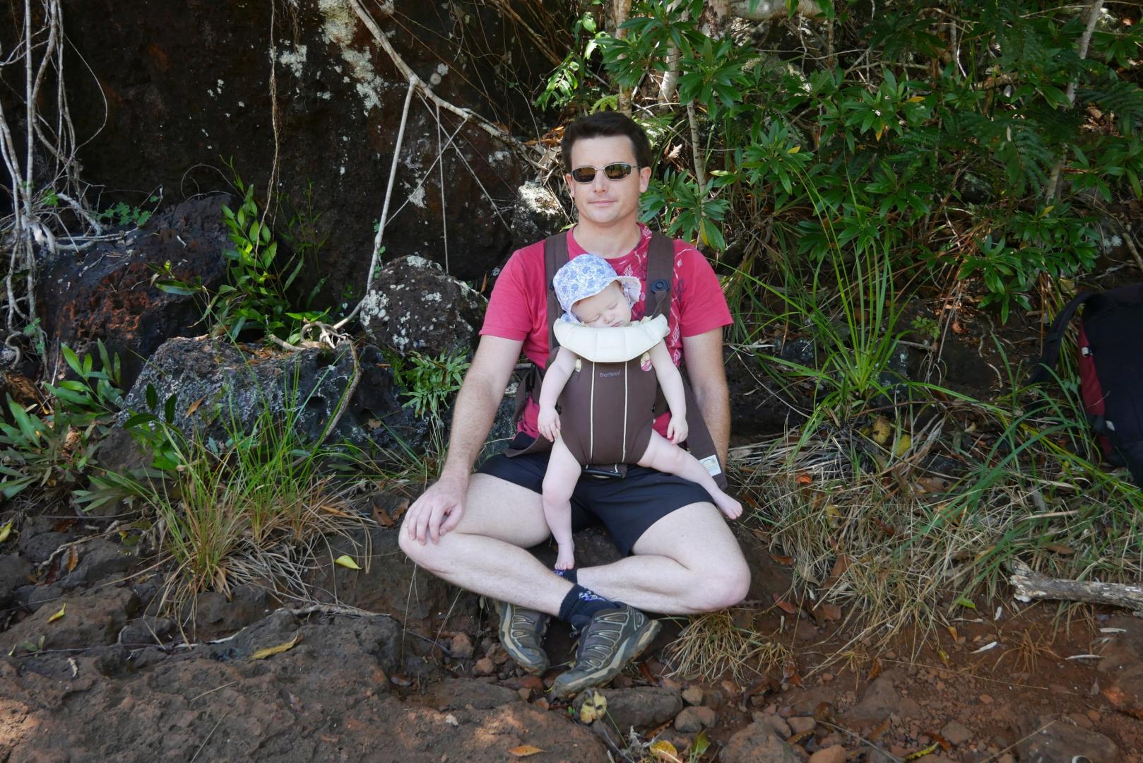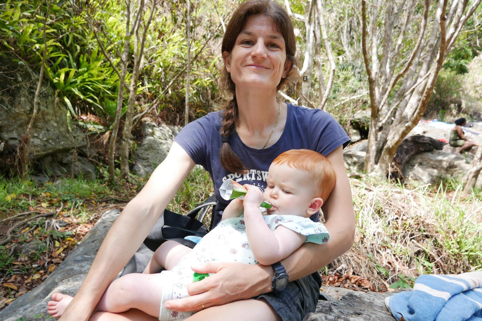 Après une nuit correcte, j’ai redécouvert encore tout cela. On est allés marcher (enfin surtout eux hein … moi je suis en kangourou), faire une ballade de 1h30-2h00. A mi-parcours je me suis un peu lassée et du coup j’avoue m’être un peu assoupie (oui, dans mon kangourou !) … pas longtemps hein, à peine 45 minutes. Au réveil on était presque revenus, moi j’ai apprécié au final. Après une nouvelle baignade, on est finalement repartis vers la maison, je soupçonne mes parents d’avoir innocemment décalé ma sieste, en tous cas, j’ai dormi une partie du trajet.
