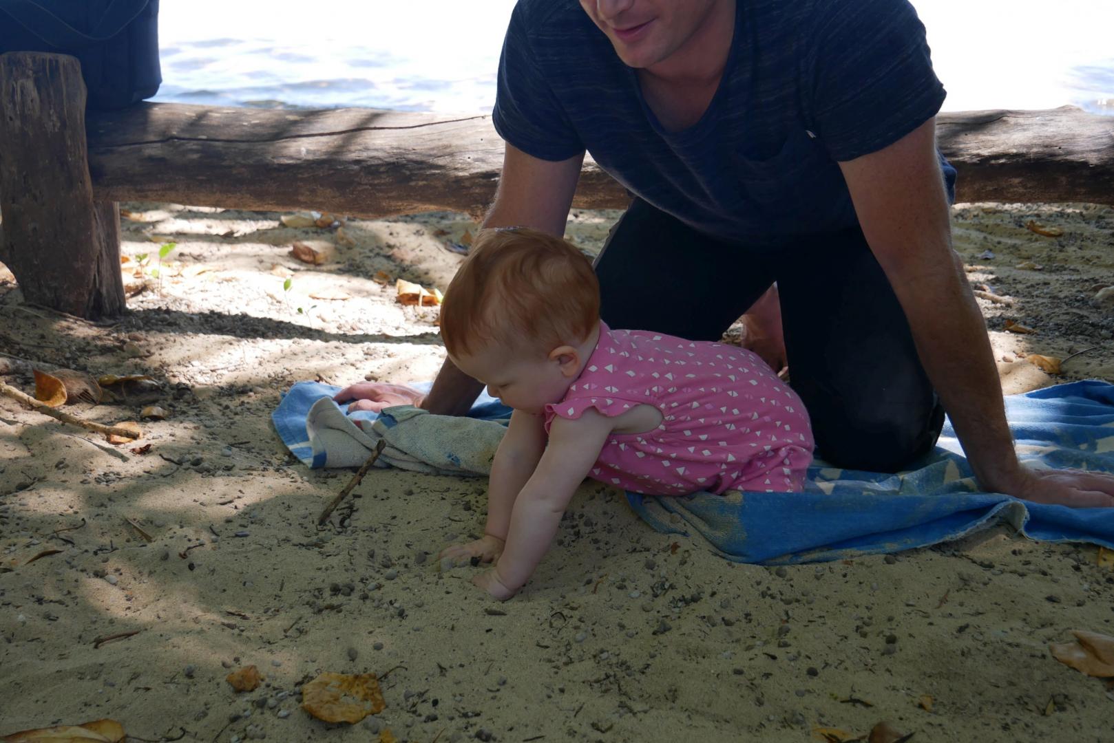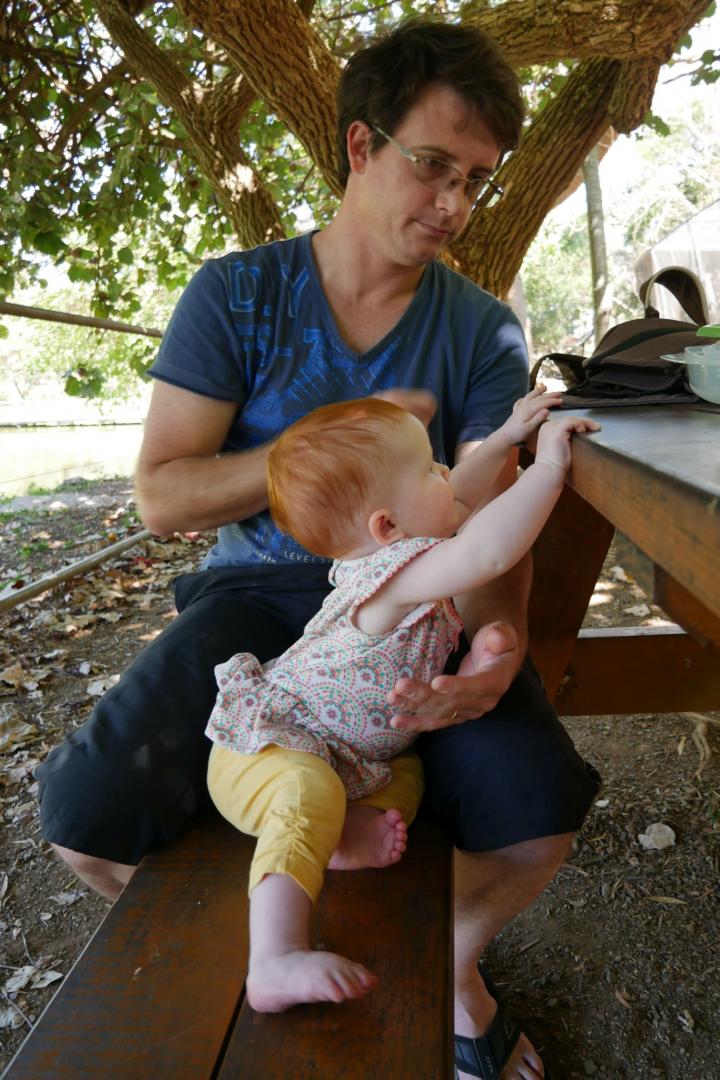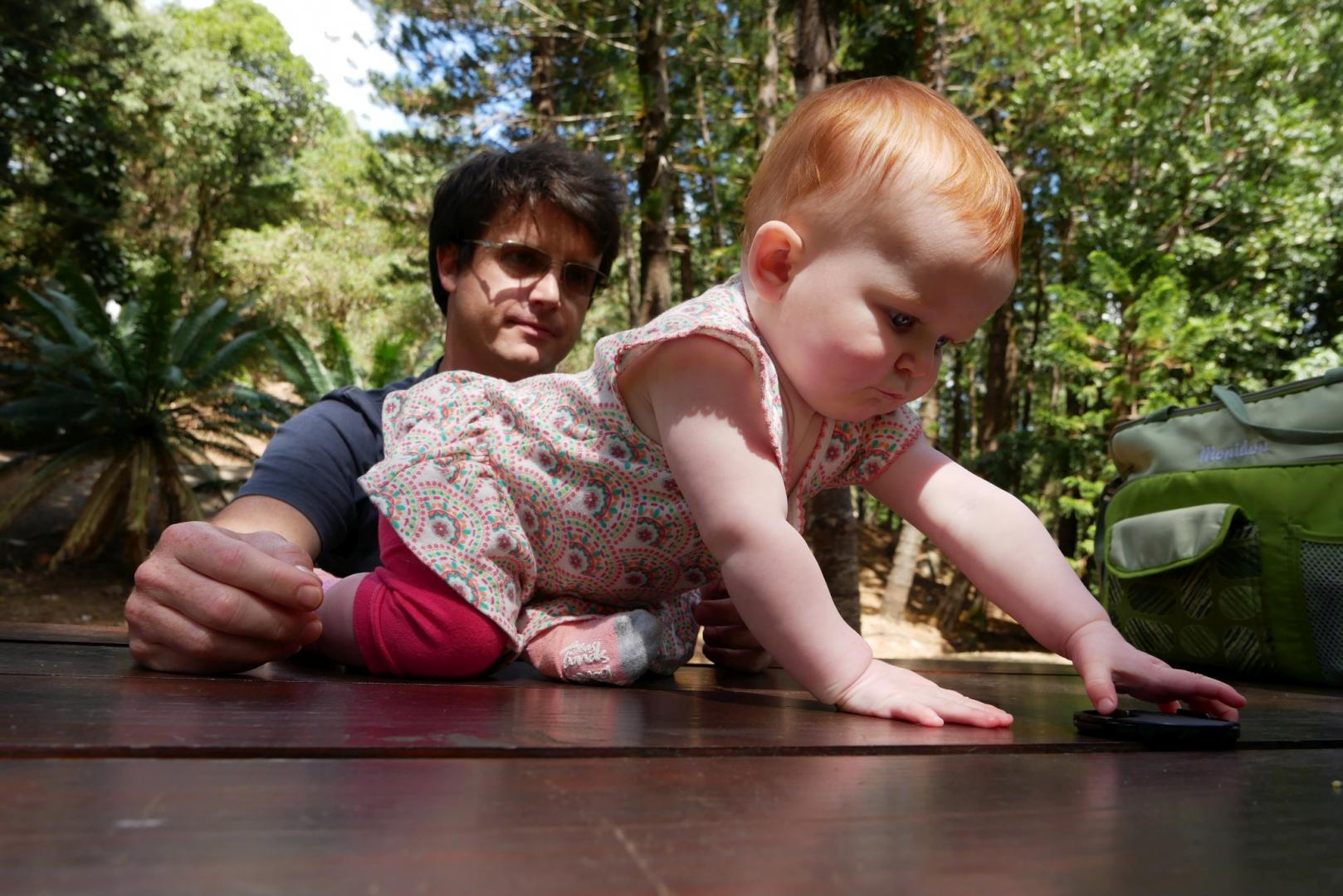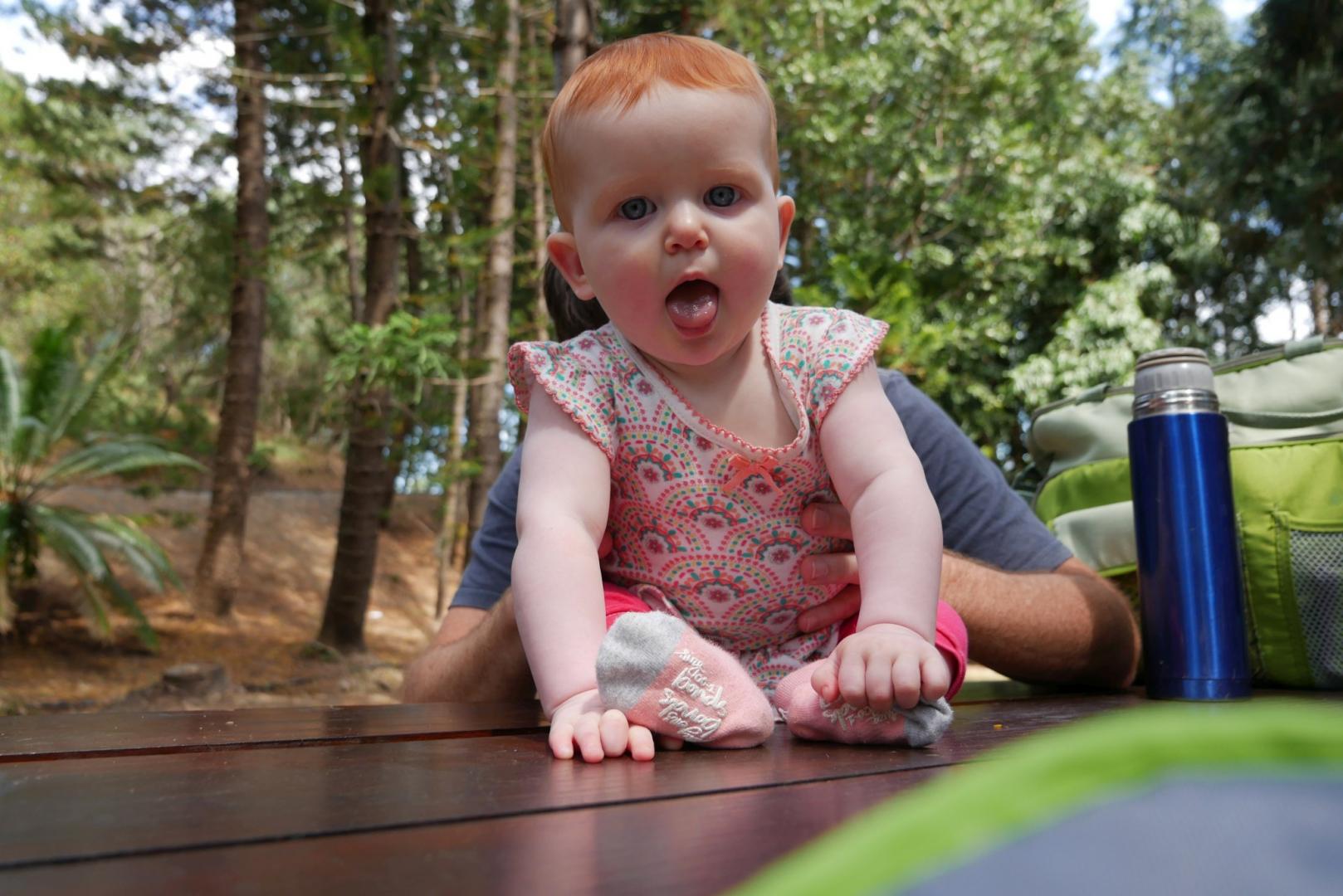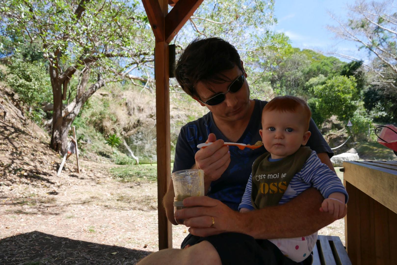 Après une nuit correcte, j’ai redécouvert encore tout cela. On est allés marcher (enfin surtout eux hein … moi je suis en kangourou), faire une ballade de 1h30-2h00. A mi-parcours je me suis un peu lassée et du coup j’avoue m’être un peu assoupie (oui, dans mon kangourou !) … pas longtemps hein, à peine 45 minutes. Au réveil on était presque revenus, moi j’ai apprécié au final. Après une nouvelle baignade, on est finalement repartis vers la maison, je soupçonne mes parents d’avoir innocemment décalé ma sieste, en tous cas, j’ai dormi une partie du trajet.