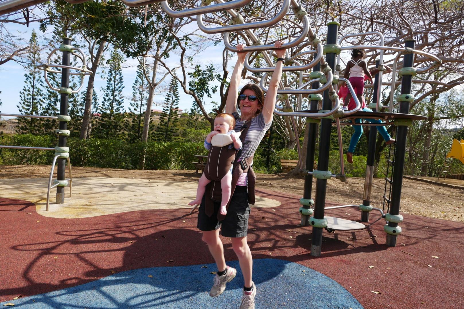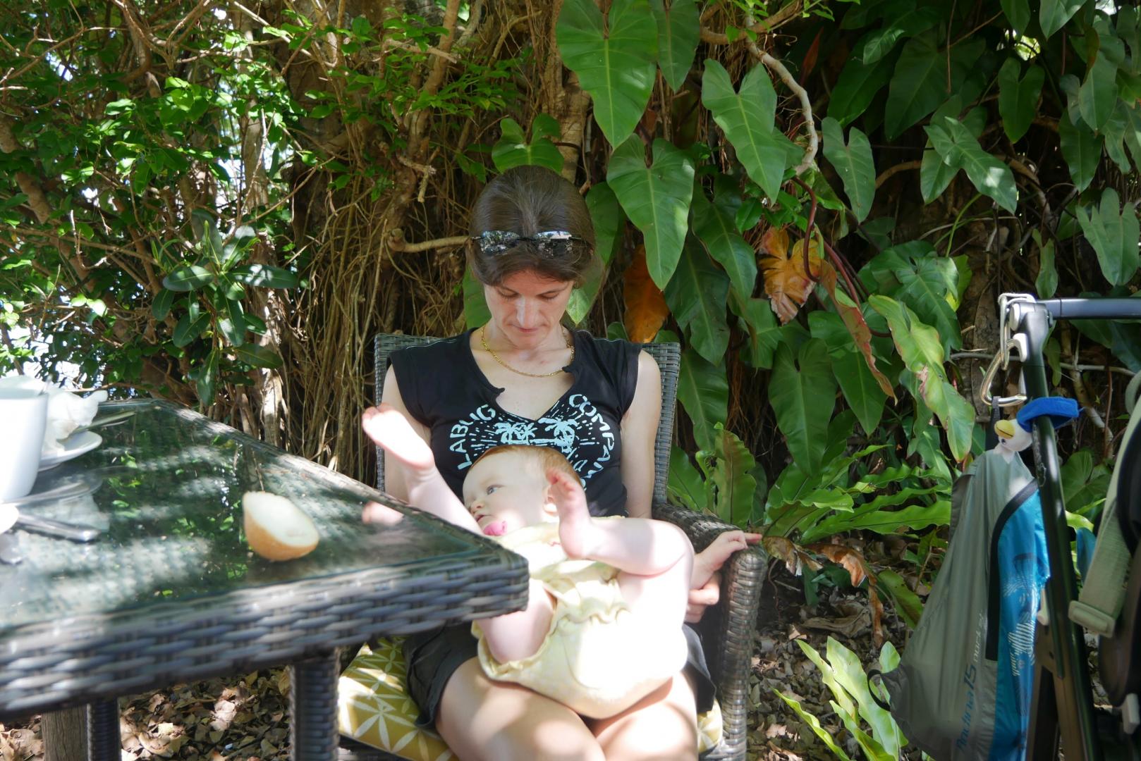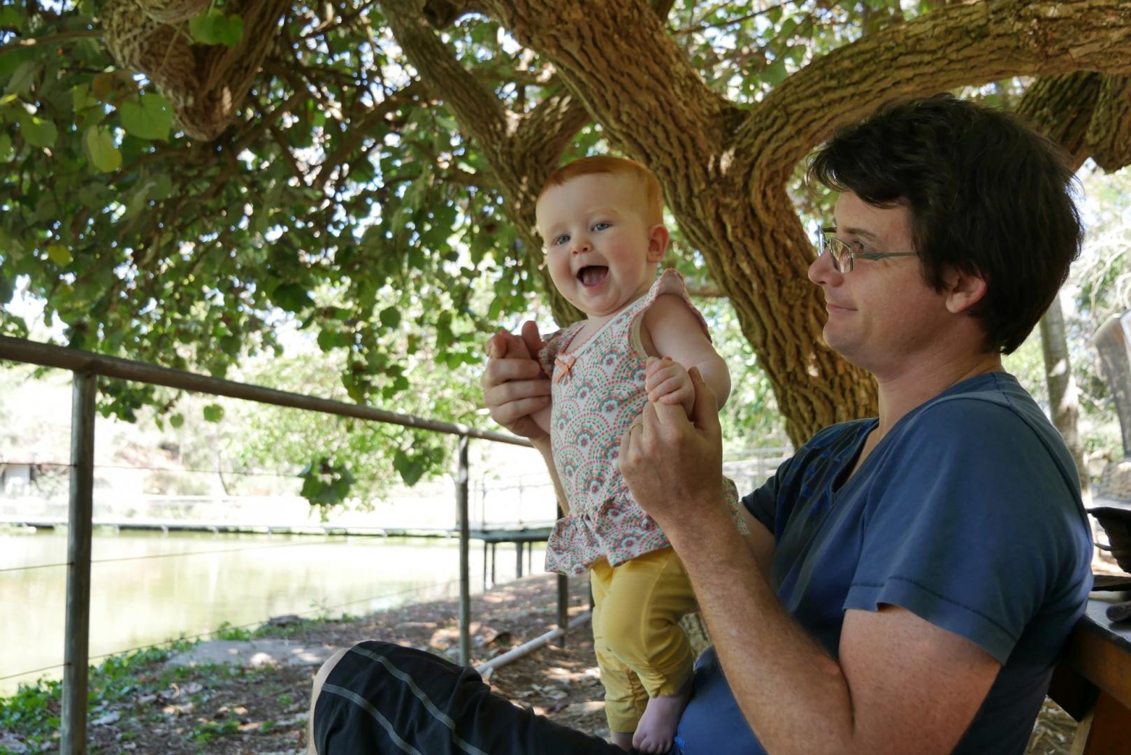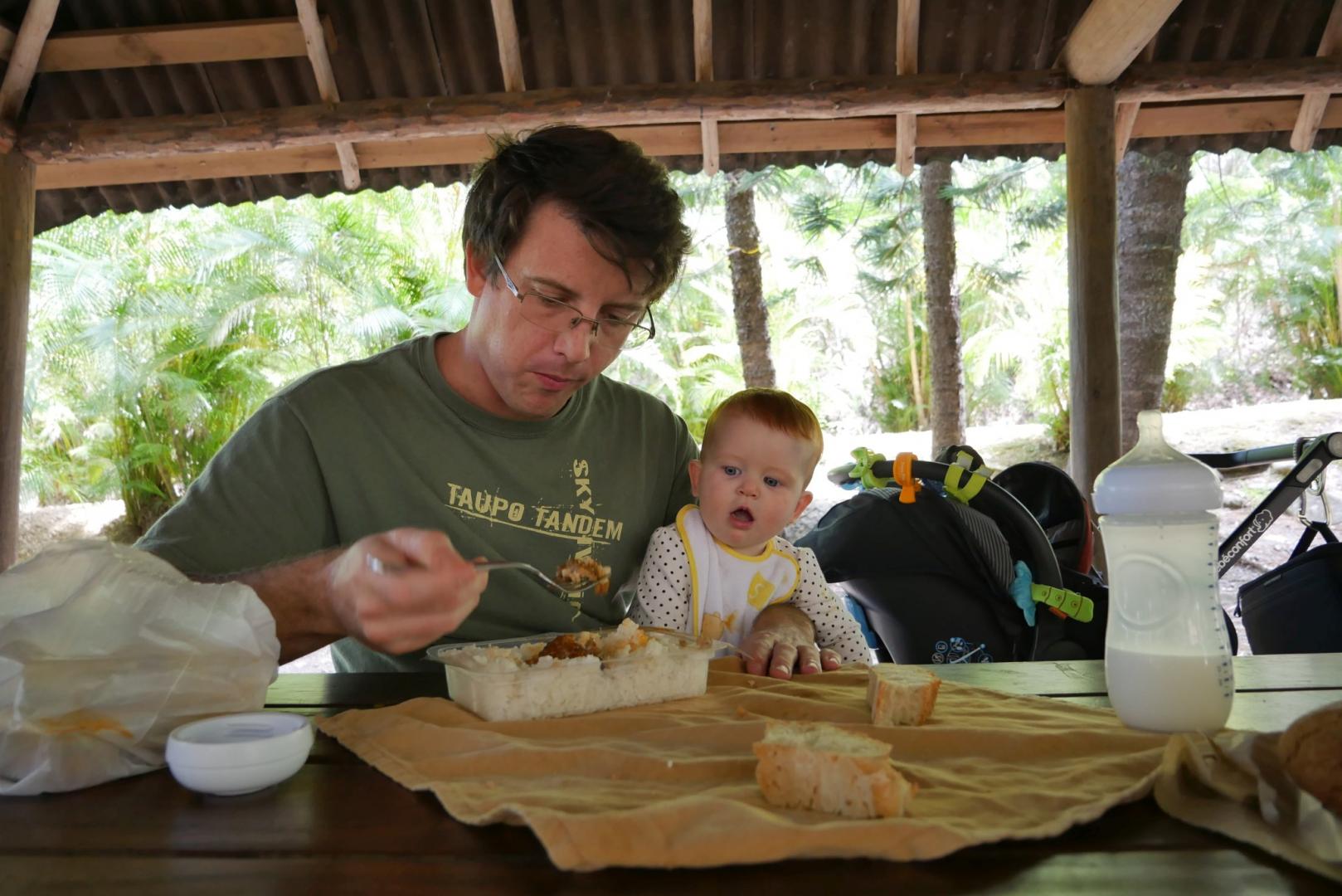 Après une nuit correcte, j’ai redécouvert encore tout cela. On est allés marcher (enfin surtout eux hein … moi je suis en kangourou), faire une ballade de 1h30-2h00. A mi-parcours je me suis un peu lassée et du coup j’avoue m’être un peu assoupie (oui, dans mon kangourou !) … pas longtemps hein, à peine 45 minutes. Au réveil on était presque revenus, moi j’ai apprécié au final. Après une nouvelle baignade, on est finalement repartis vers la maison, je soupçonne mes parents d’avoir innocemment décalé ma sieste, en tous cas, j’ai dormi une partie du trajet.