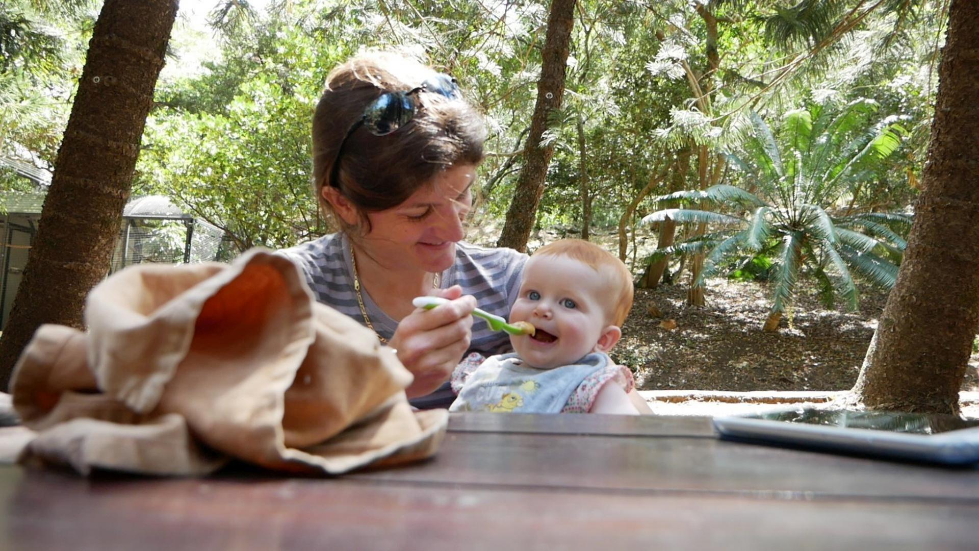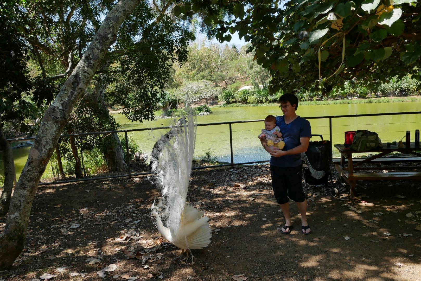 Les w-end aussi, mes parents continuent de m’amener au parc, où je déjeune avec eux, observe tout depuis le « kangourou » (surtout les paons) et sieste parfois et brièvement, à la faveur de chaos alors que je suis dans ma poussette (eh oui, plus ça remue mieux je m’endors ! Papa et maman tentent donc de viser tous les trous possibles).