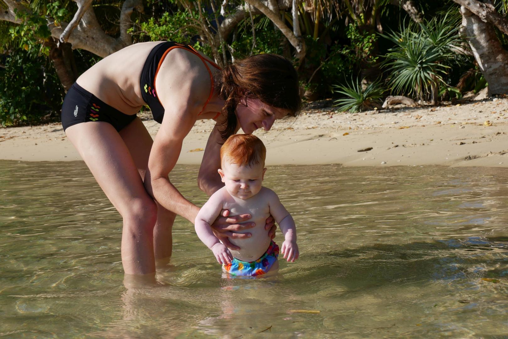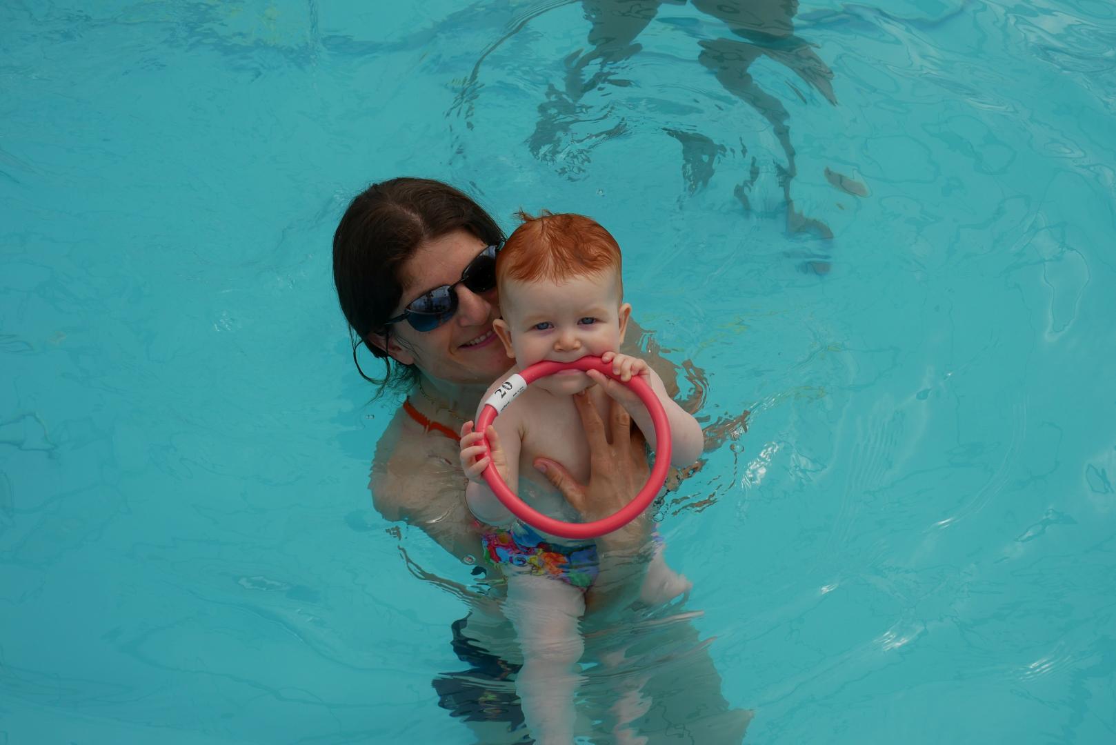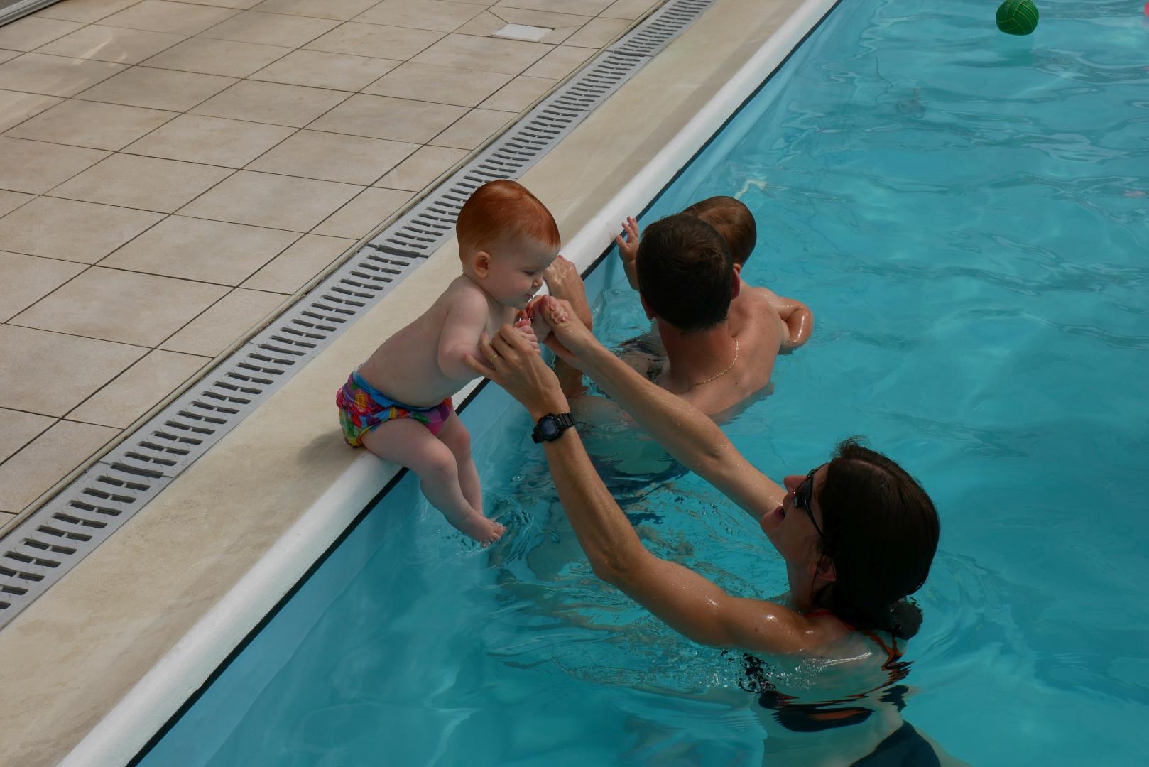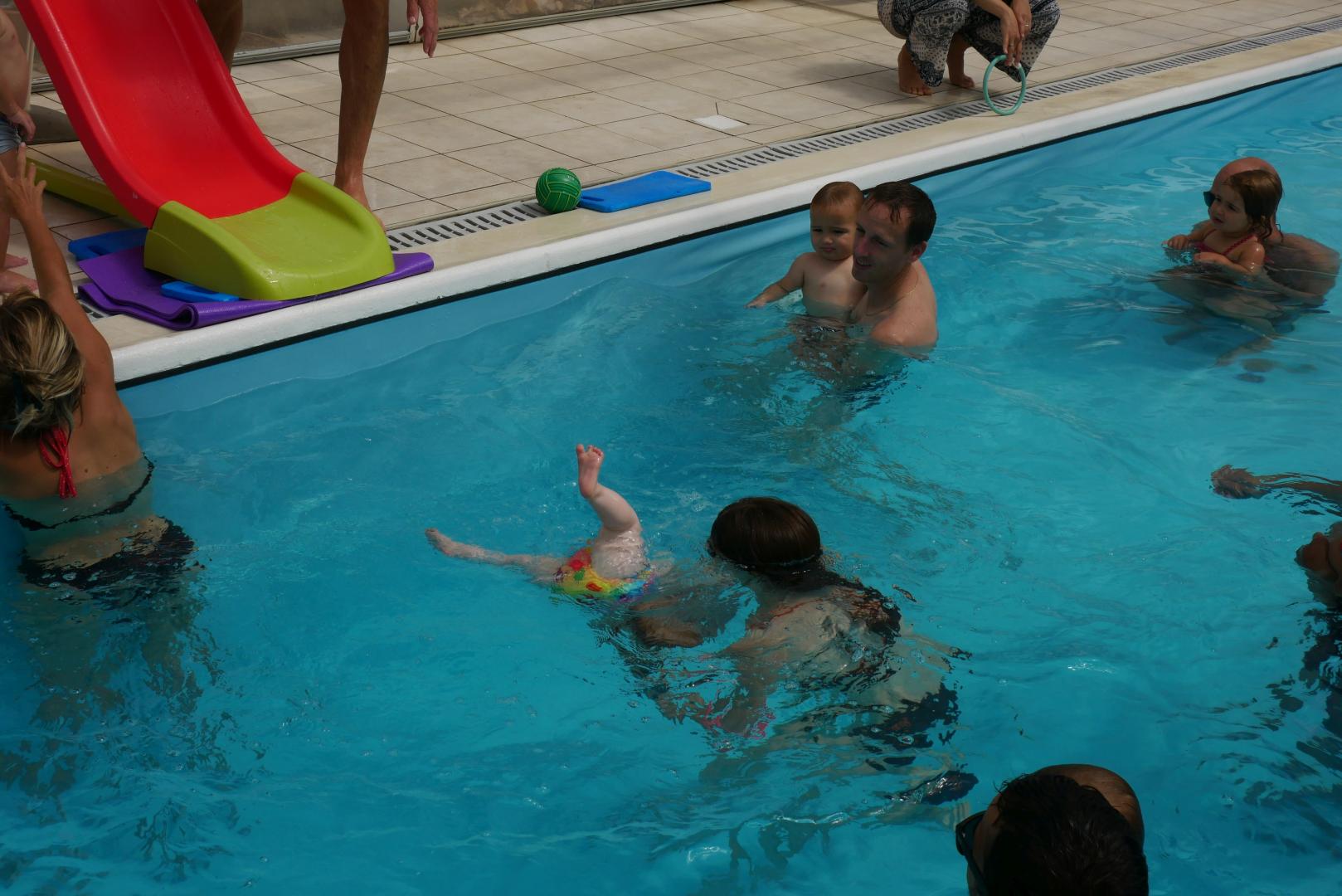 Je prends aussi souvent des bains que des douches. J’aime toujours autant l’eau et le montre pendant les séances de bébé nageurs.
