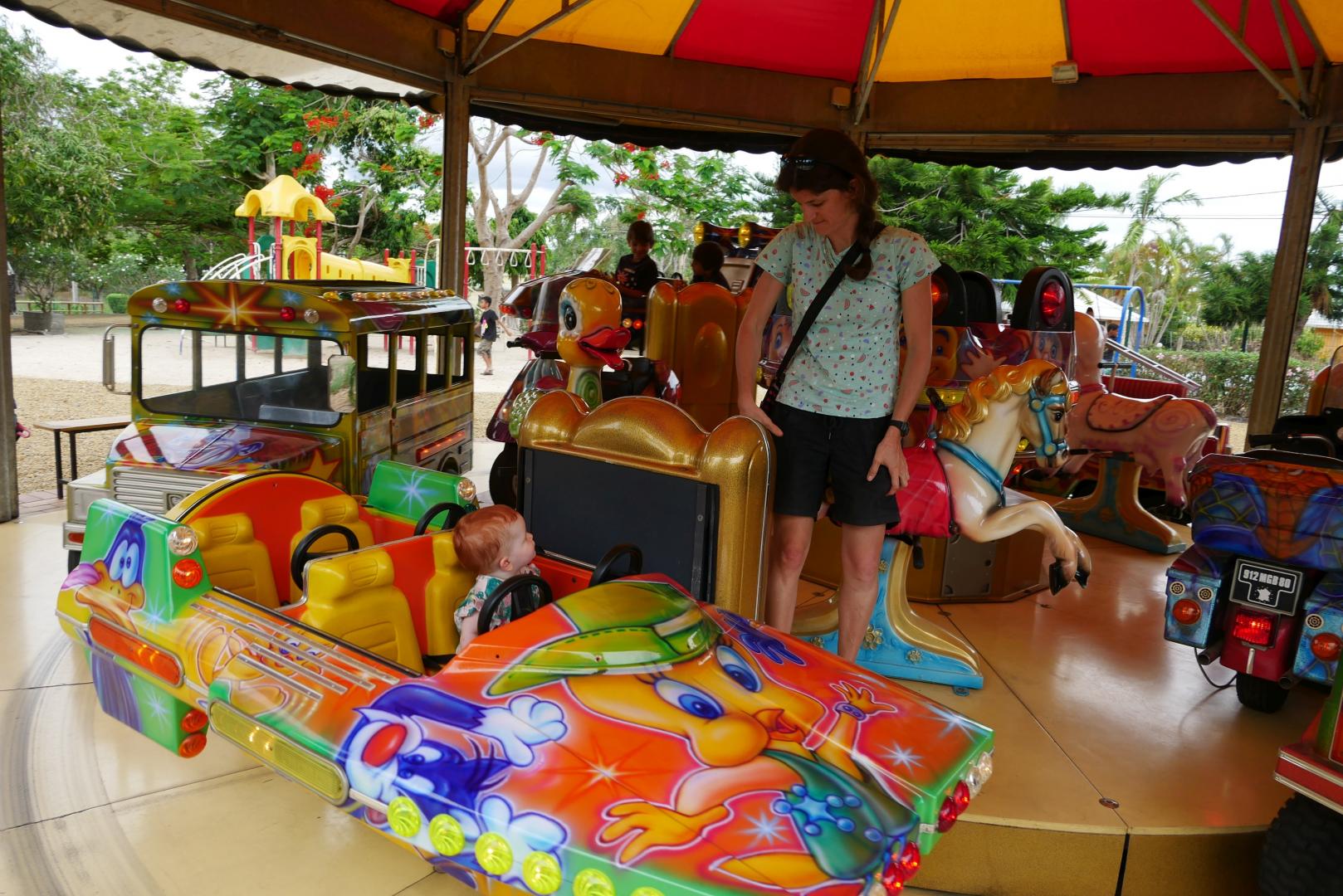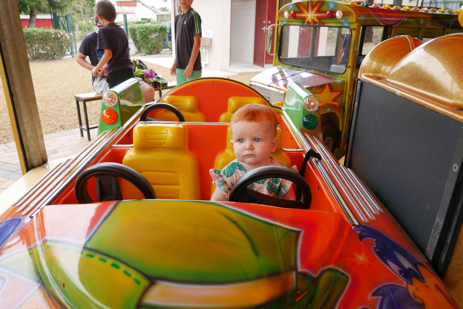 Je ne vais pas tout vous raconter en détail, je suis un bébé de bientôt 11 mois qui tient à sa vie privée, mais c’était chouette ce week-end. J’ai commencé rapidement à explorer… et première découverte, le gazon. C’est rigolo. Le bungalow et sa terrasse aussi, je me suis mis debout sur chaque objet possible. On a fait un « marché » ou j’ai reçu plein de compliments (mais ça je suis habituée, ils attendront que je sache signer des autographes…). Et aussi, j’ai fait mon premier tour de manège ! Bon j’ai pas tout compris, mais globalement j’ai bien aimé. Pour le reste, on s’est bien amusés, je vous laisse voir les photos.