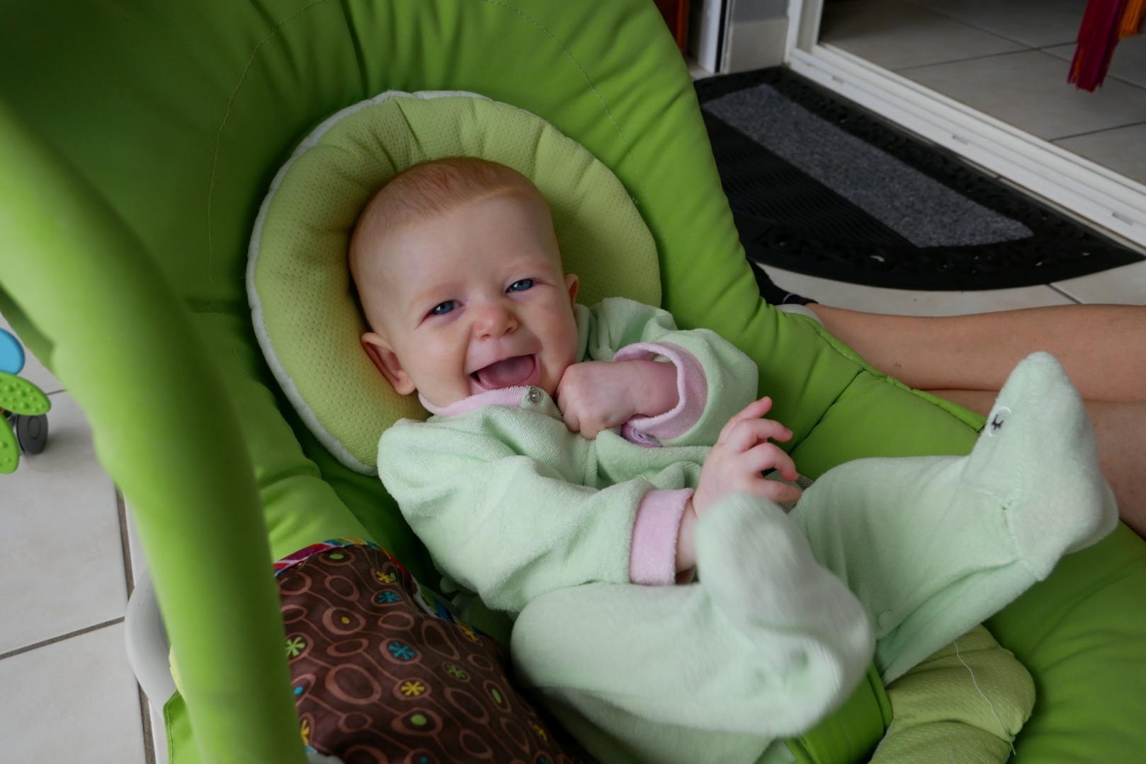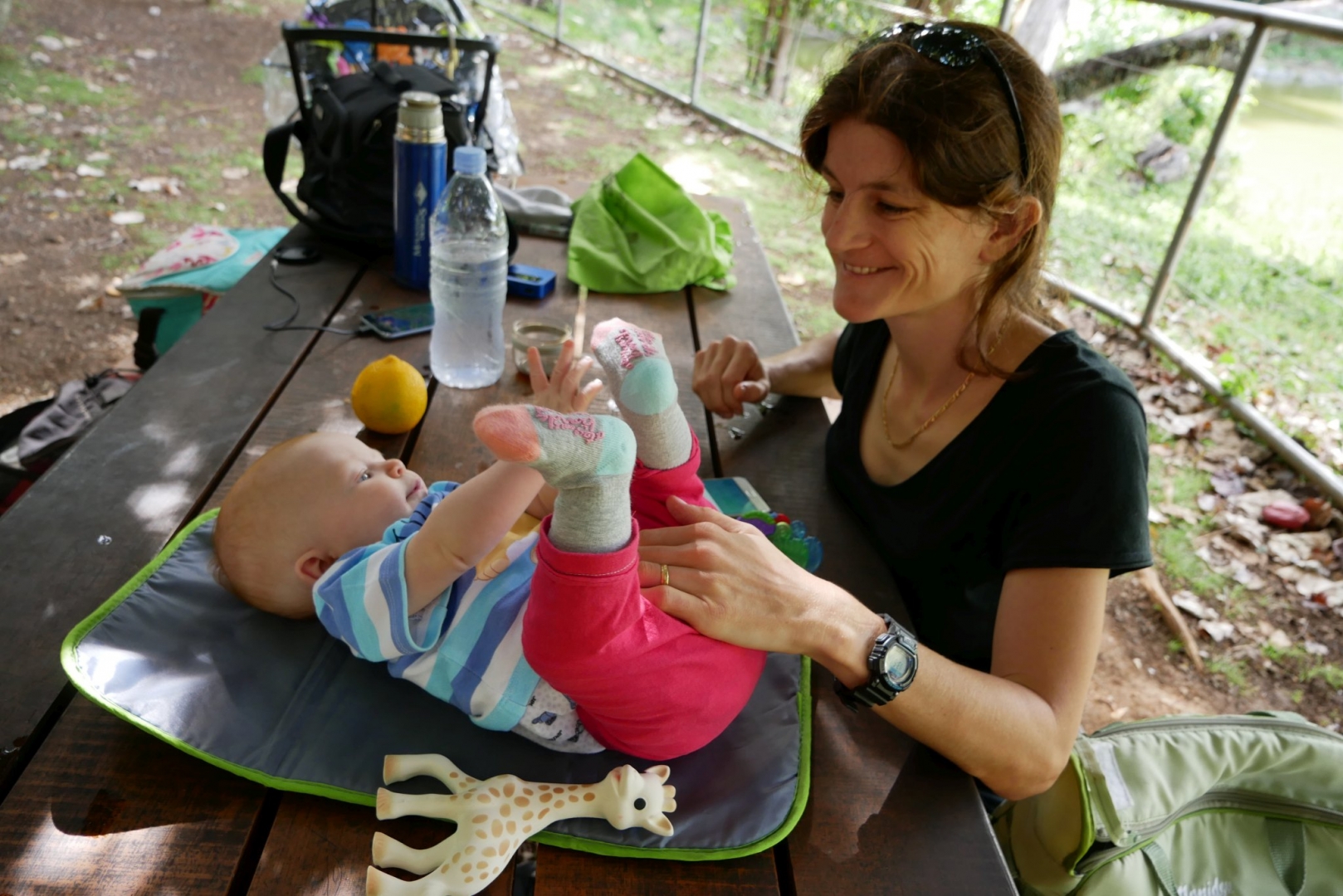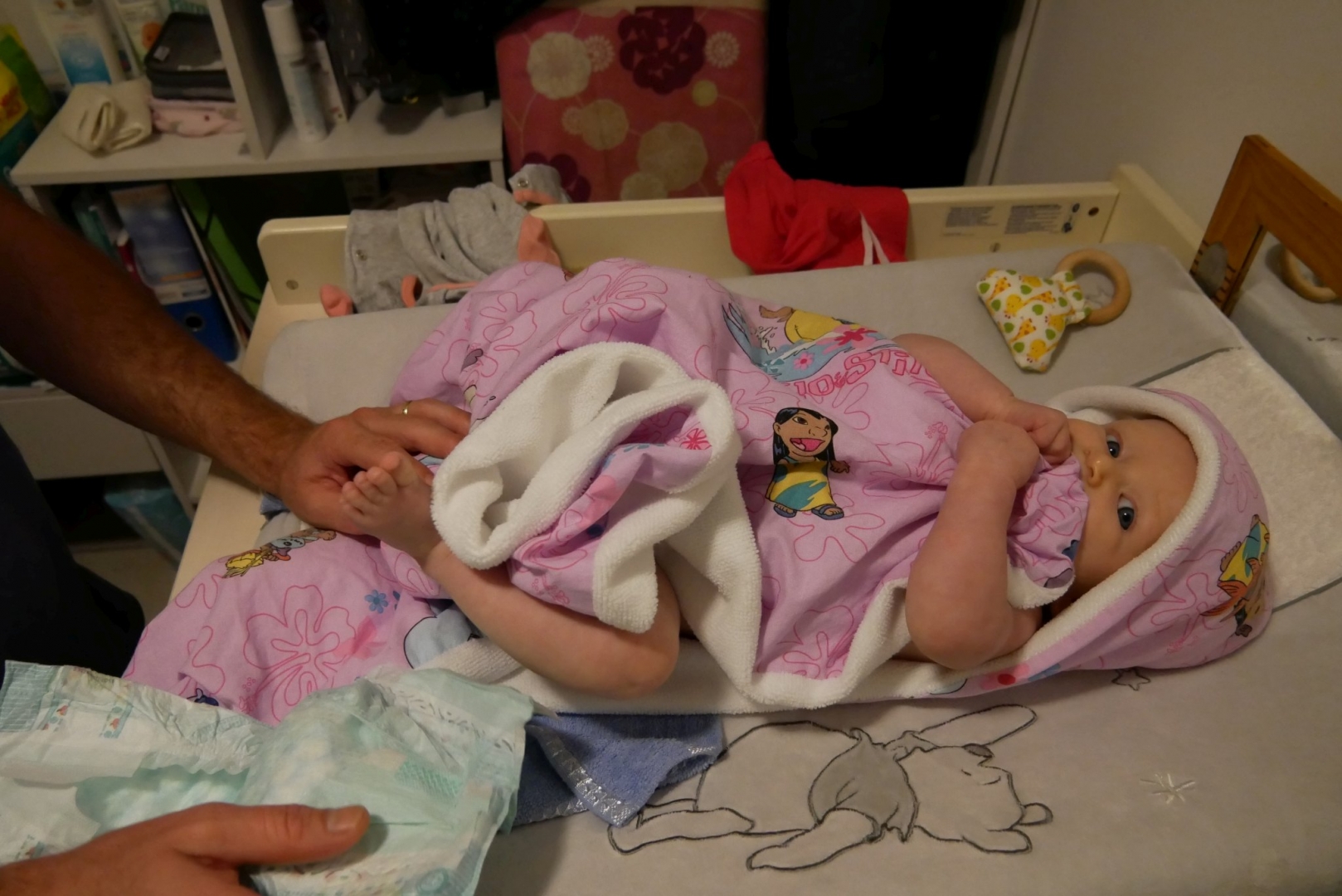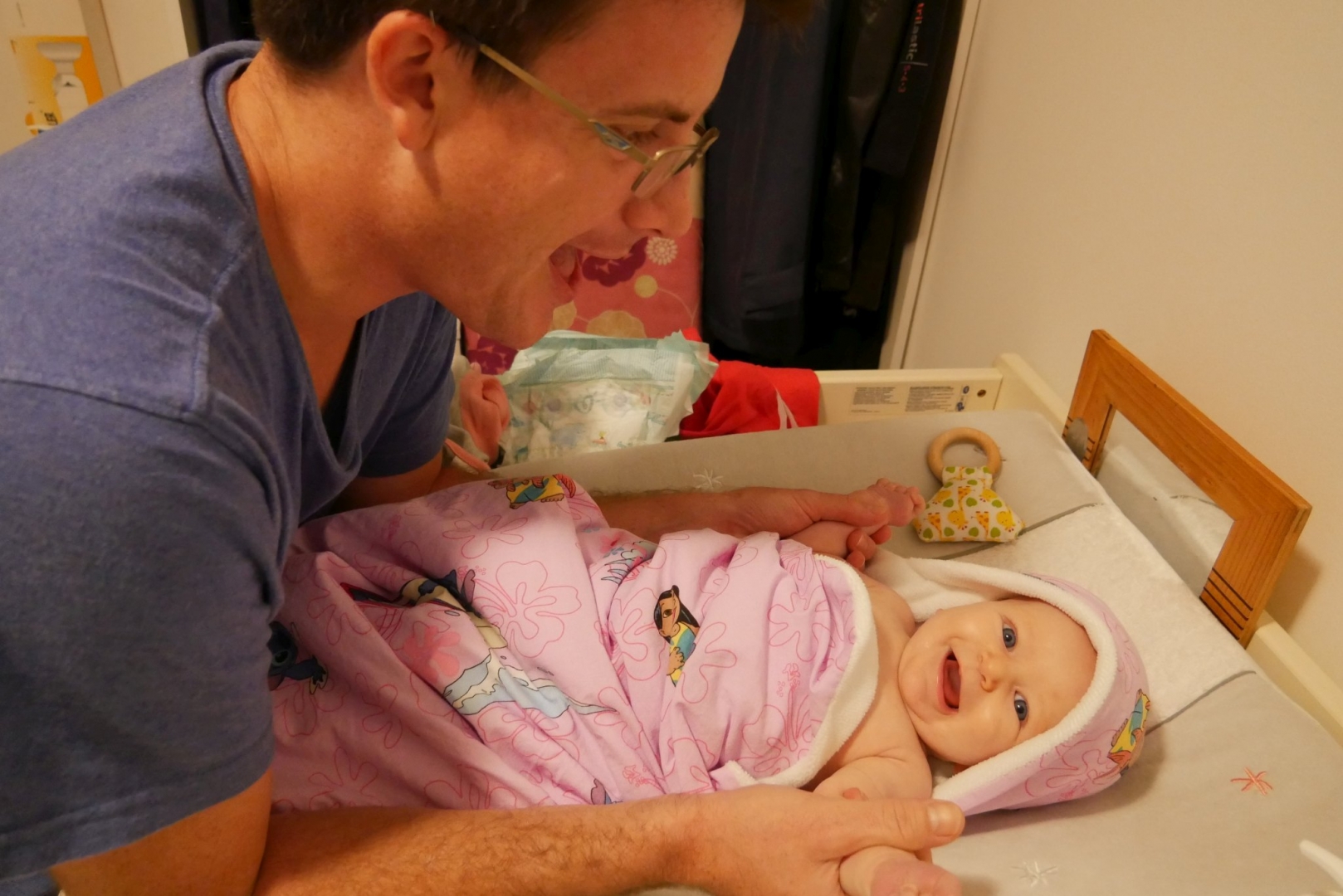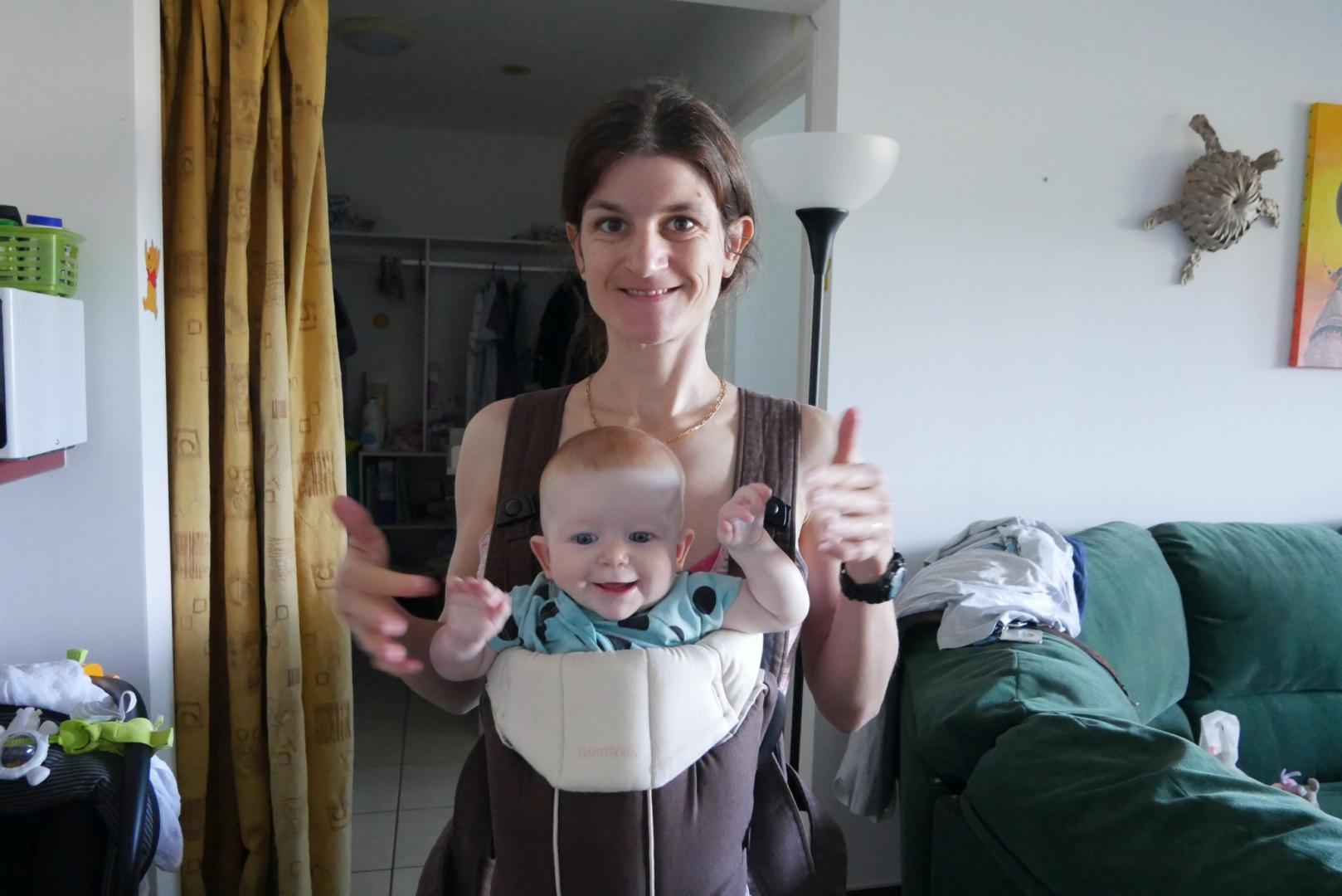 3ème jour dans le frigo. Toujours pas trouvé la sortie. Du coup on est allés se promener dans la ville. Après mon repas puis quelques courses ce matin, repas sushis. Moi je dormais mais après j’ai pu regarder le train avec des sushis qui passaient dessus. J’ai eu une folle envie de les attraper mais on m’a retenue, on me restreint je vous le dis. Puis promenade sur les quais (en kangourou, enfin !). Et là vous savez quoi ? j’ai essayé la balançoire pour la première fois ! Au début je ne connaissais pas, j’étais dubitative. Mais rapidement, j’ai compris. Du haut, du bas qui fait plein de chatouille dans le ventre, que du bonheur. Du coup j’ai beaucoup ri. Beaucoup, et fort. Puis on est rentrés, et je me suis douchée. Oui douchée, ici je me douche moi, avec Stari toutefois.