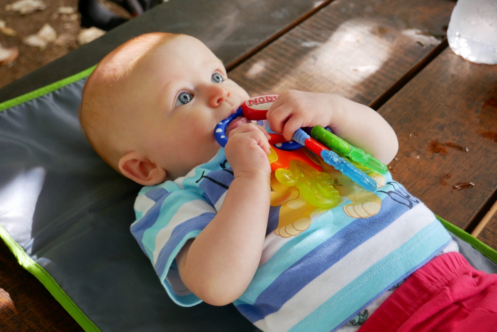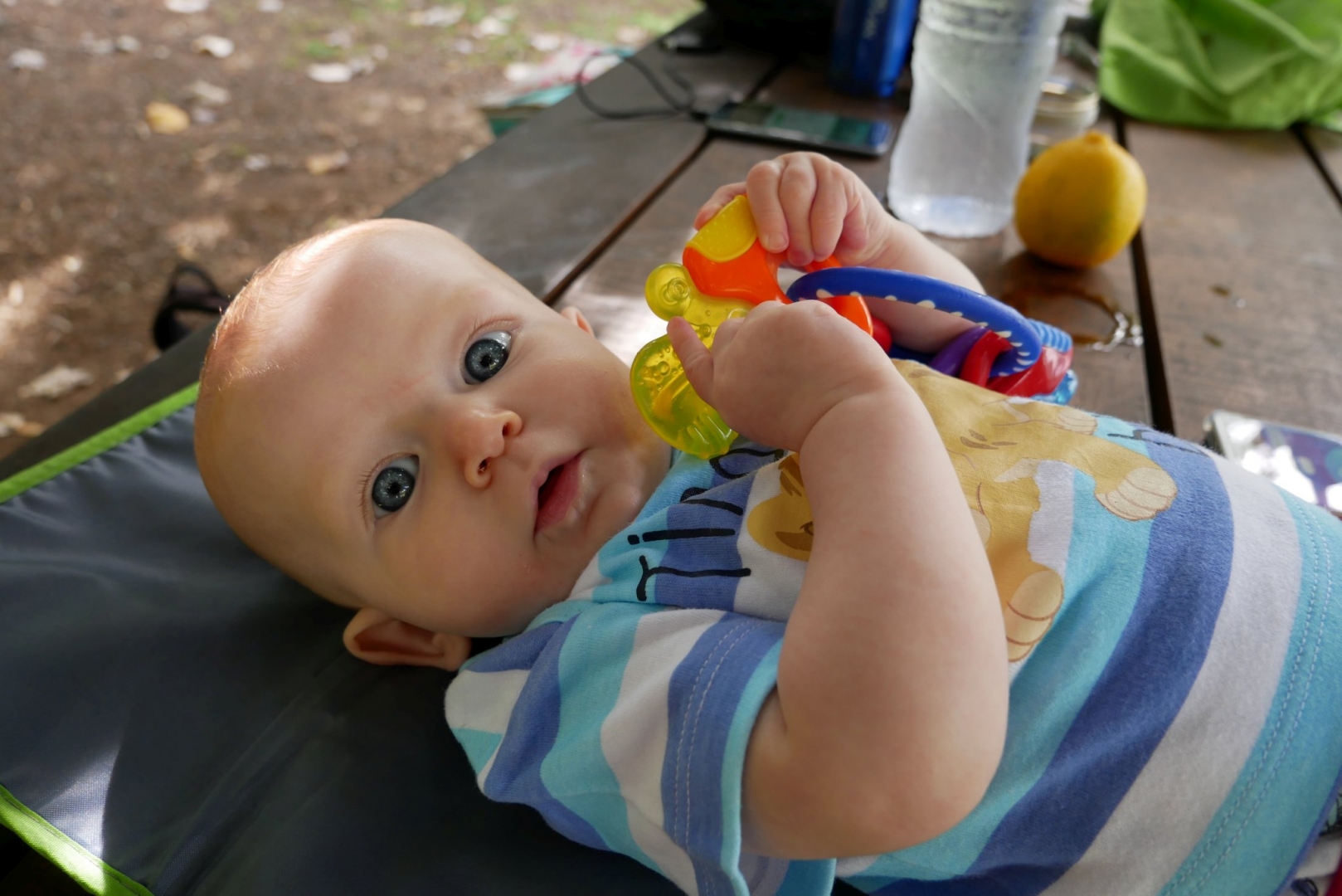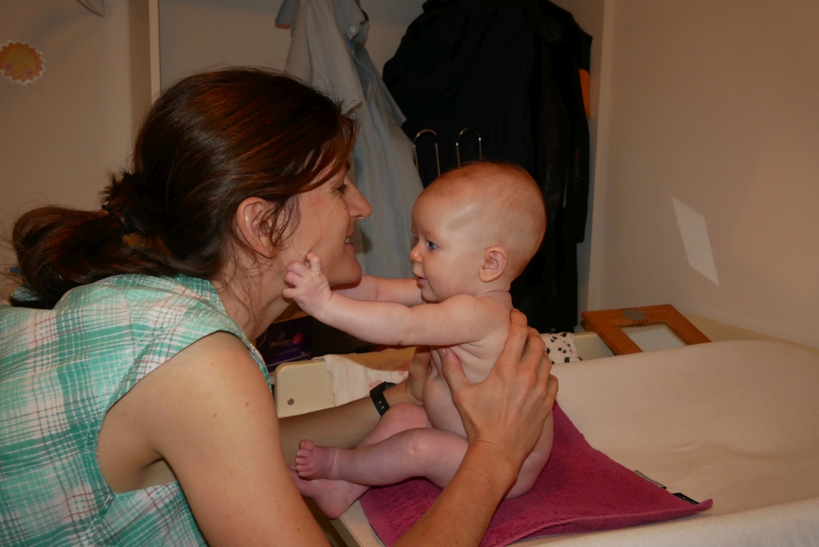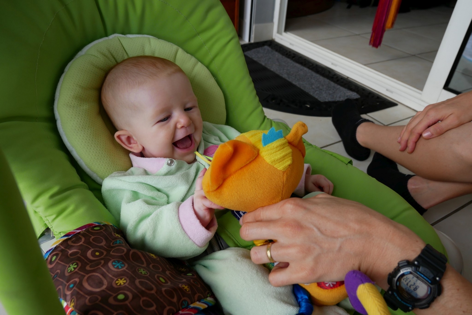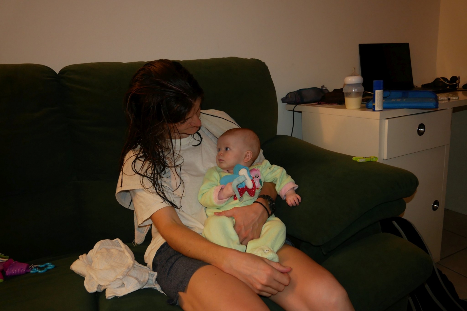3ème jour dans le frigo. Toujours pas trouvé la sortie. Du coup on est allés se promener dans la ville. Après mon repas puis quelques courses ce matin, repas sushis. Moi je dormais mais après j’ai pu regarder le train avec des sushis qui passaient dessus. J’ai eu une folle envie de les attraper mais on m’a retenue, on me restreint je vous le dis. Puis promenade sur les quais (en kangourou, enfin !). Et là vous savez quoi ? j’ai essayé la balançoire pour la première fois ! Au début je ne connaissais pas, j’étais dubitative. Mais rapidement, j’ai compris. Du haut, du bas qui fait plein de chatouille dans le ventre, que du bonheur. Du coup j’ai beaucoup ri. Beaucoup, et fort. Puis on est rentrés, et je me suis douchée. Oui douchée, ici je me douche moi, avec Stari toutefois.