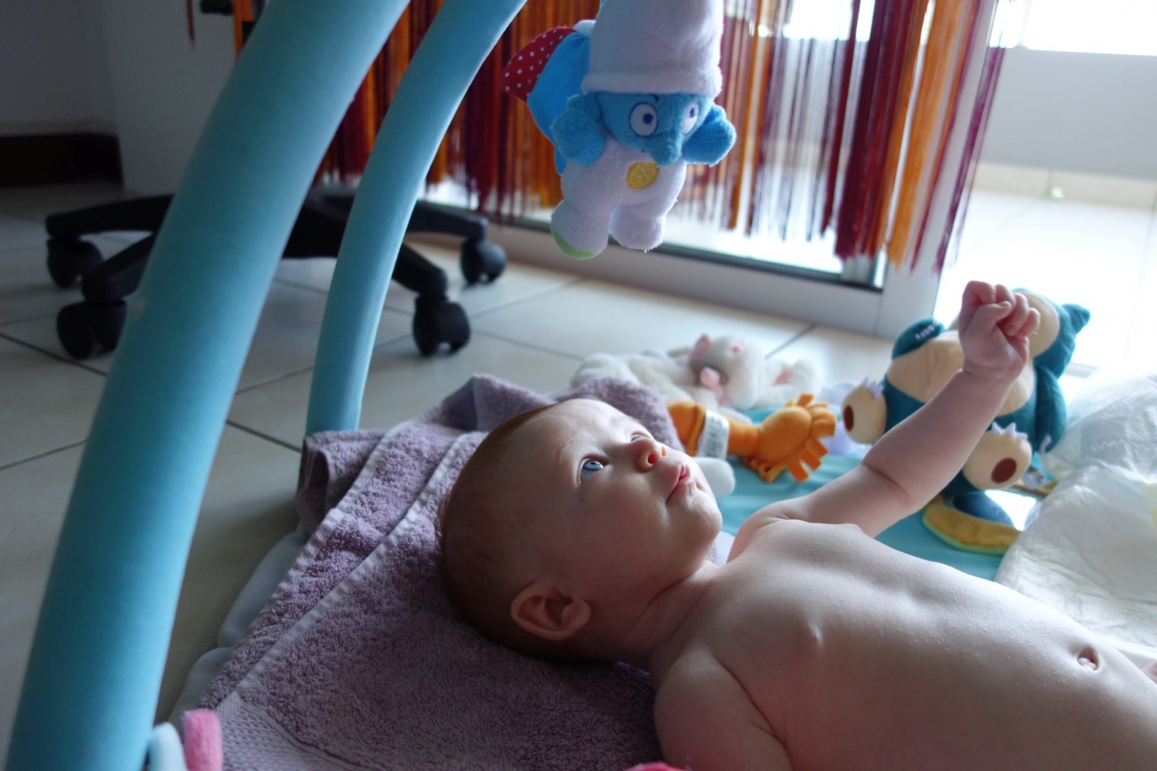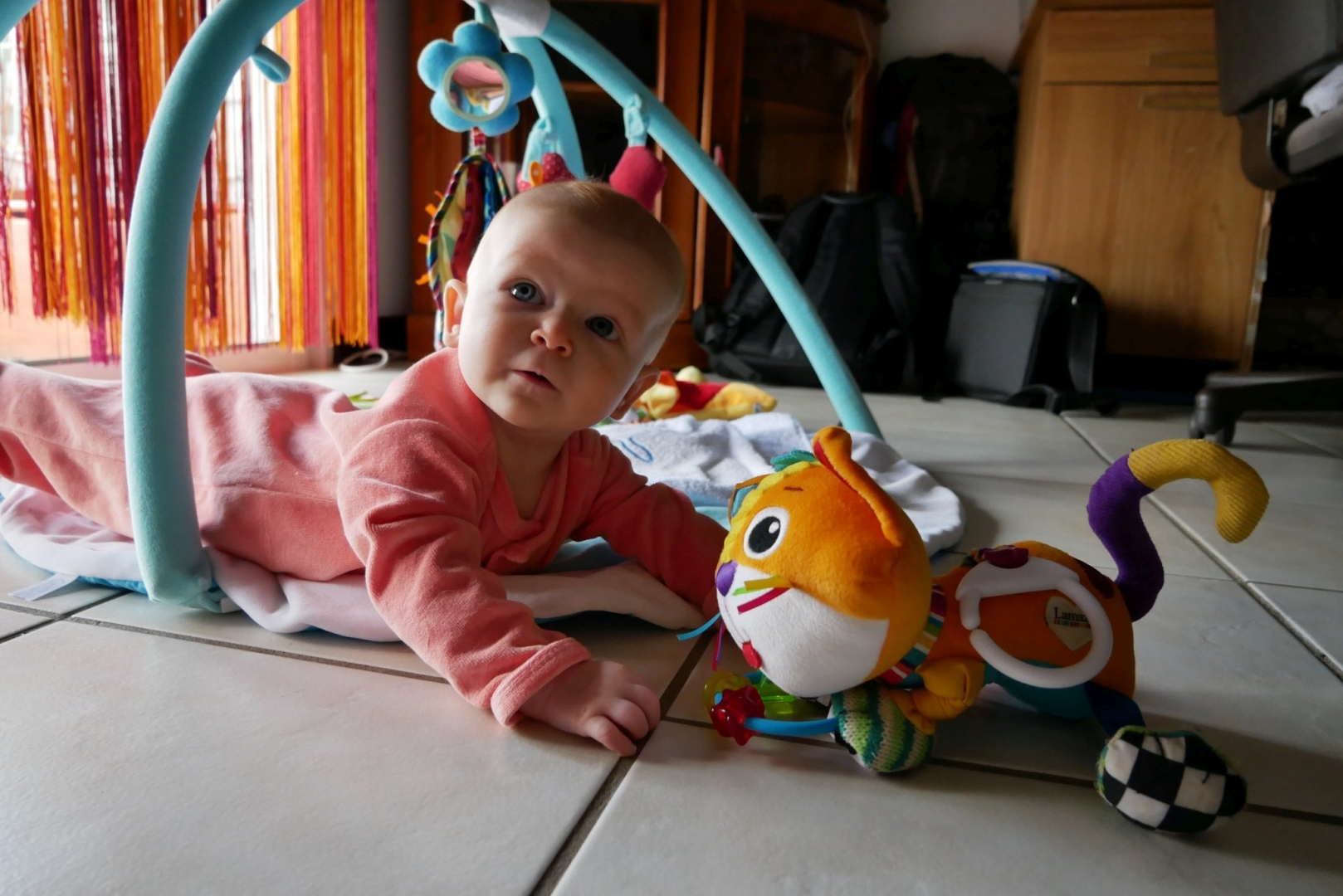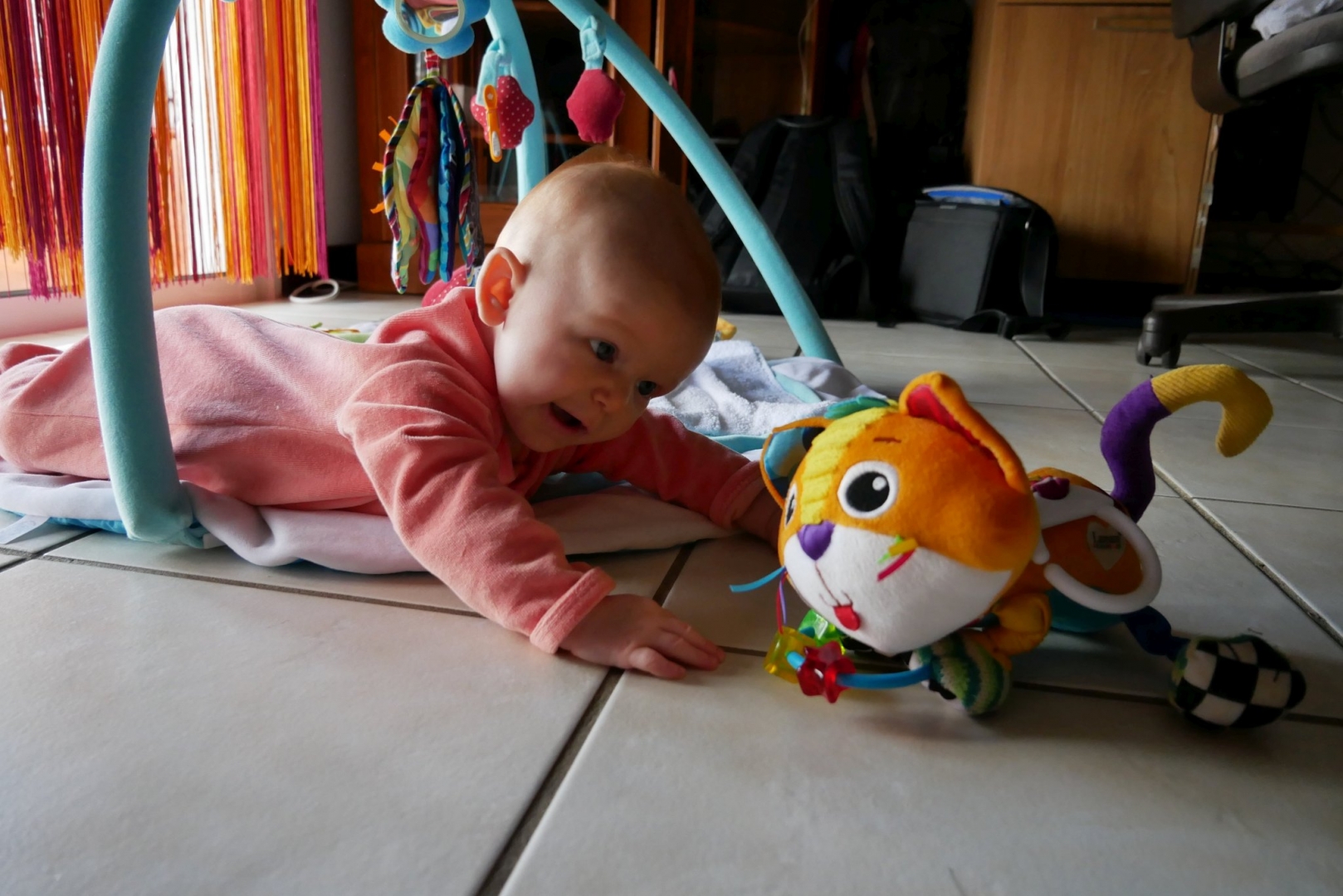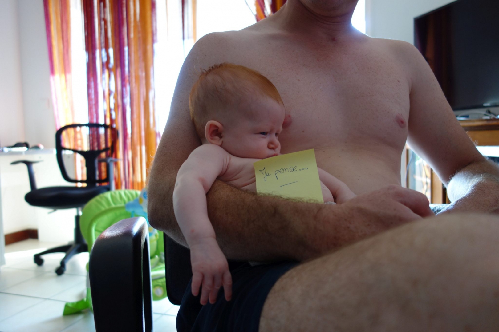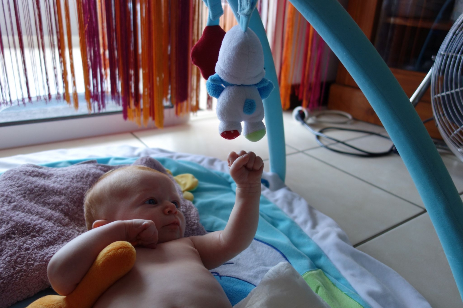 Cela peut vous sembler anodin mais pour moi, bébé de profession, cela fait beaucoup de boulot en plus : me voilà filmée, photographiée sous tous les angles. Un « bébé modèle » quoi. Et oui car qui dit nouveau jouet dit besoin de l’essayer … Plus moyen de faire des bêtises sans être filmée. Pour que papa arrête de jouer les paparazzis avec moi, j’ai même dû, avec la complicité de maman, l’emmener au parc forestier. Rien de tel qu’un papa dans un parc, ça court partout et photographie les bestioles. Et moi, programme câlin avec maman entre deux siestes.
