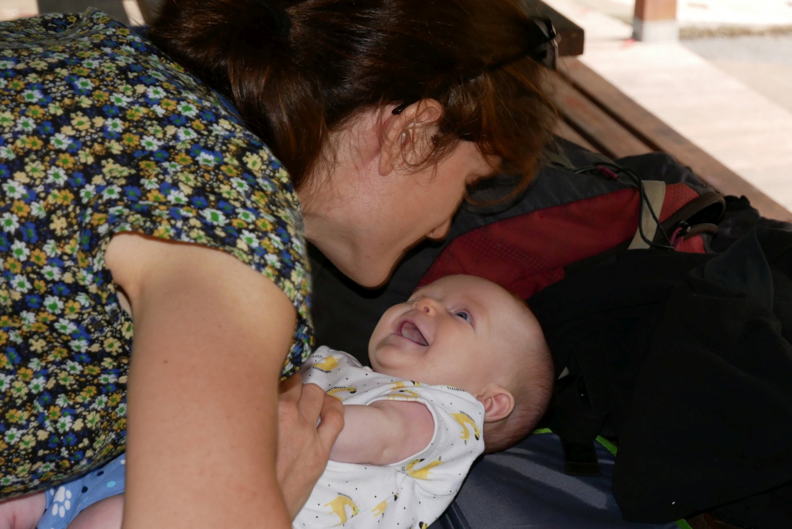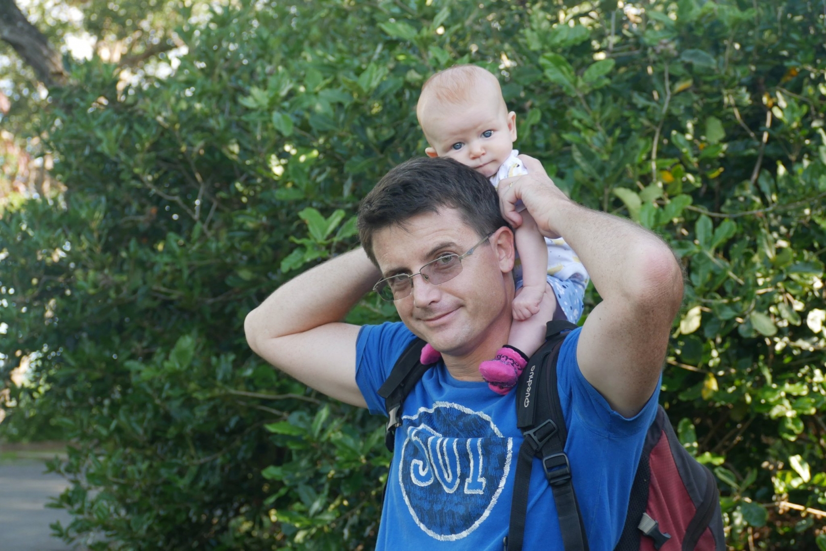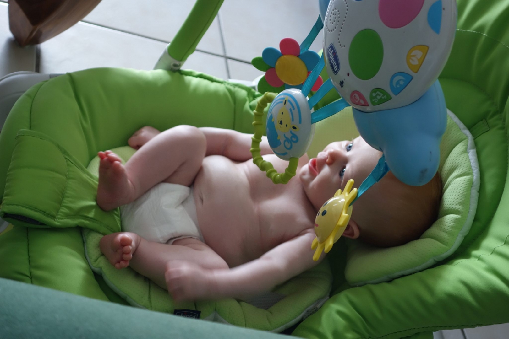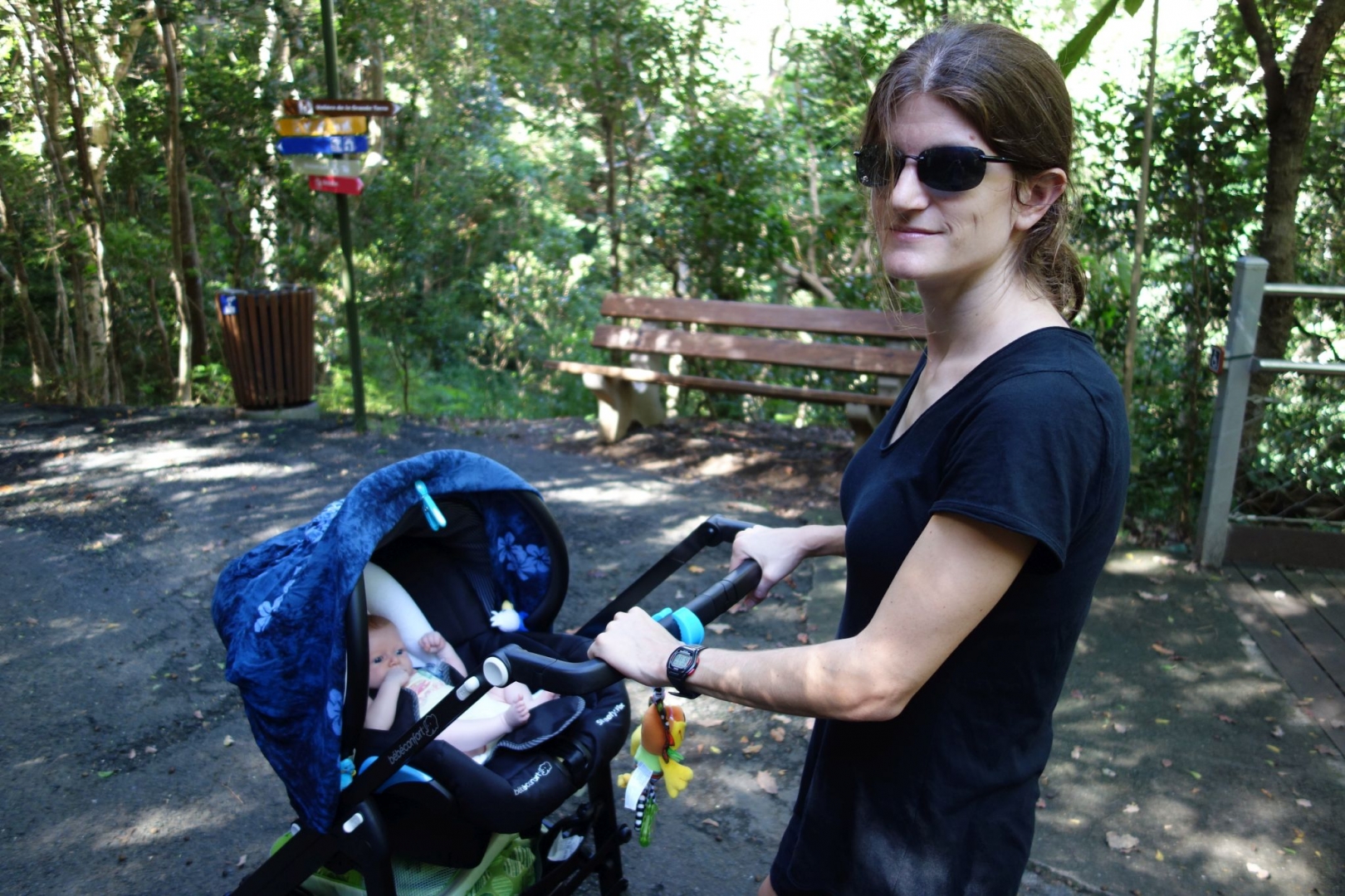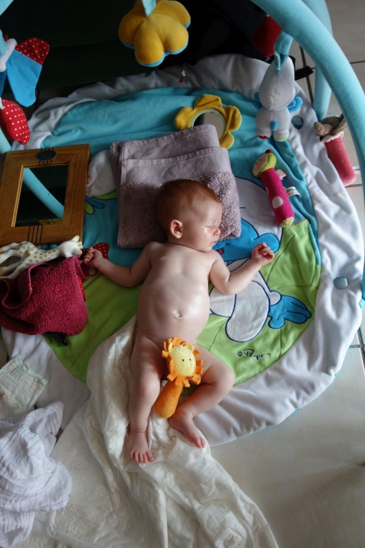 Cela peut vous sembler anodin mais pour moi, bébé de profession, cela fait beaucoup de boulot en plus : me voilà filmée, photographiée sous tous les angles. Un « bébé modèle » quoi. Et oui car qui dit nouveau jouet dit besoin de l’essayer … Plus moyen de faire des bêtises sans être filmée. Pour que papa arrête de jouer les paparazzis avec moi, j’ai même dû, avec la complicité de maman, l’emmener au parc forestier. Rien de tel qu’un papa dans un parc, ça court partout et photographie les bestioles. Et moi, programme câlin avec maman entre deux siestes.