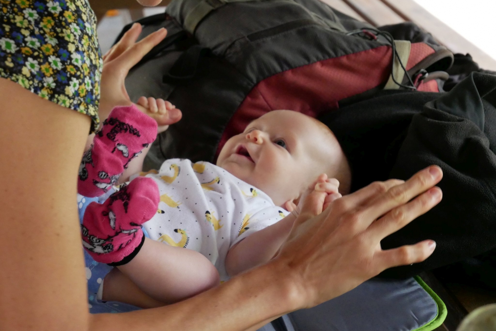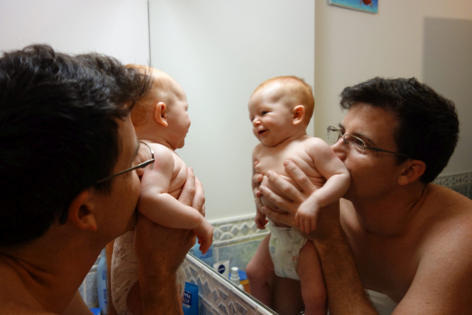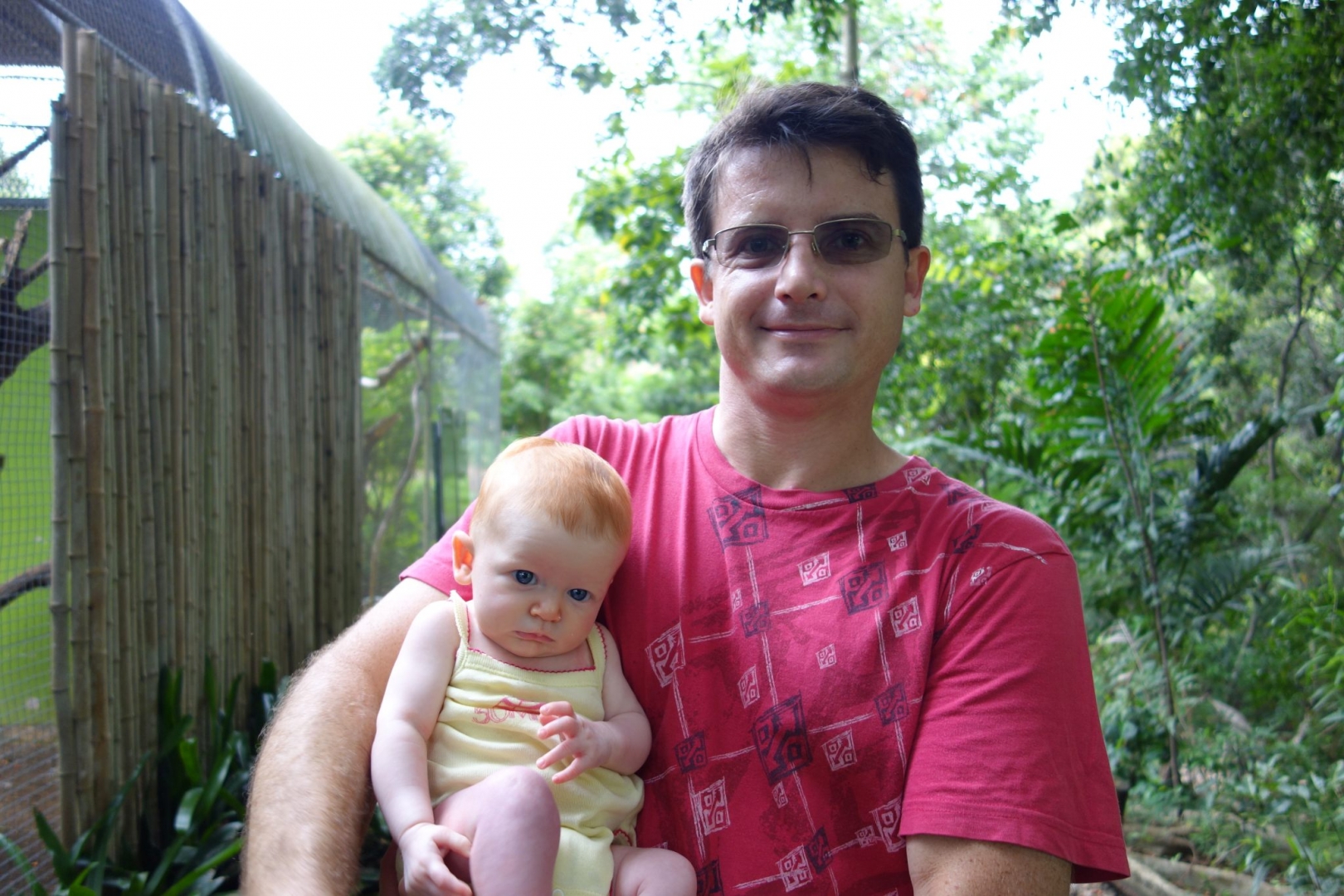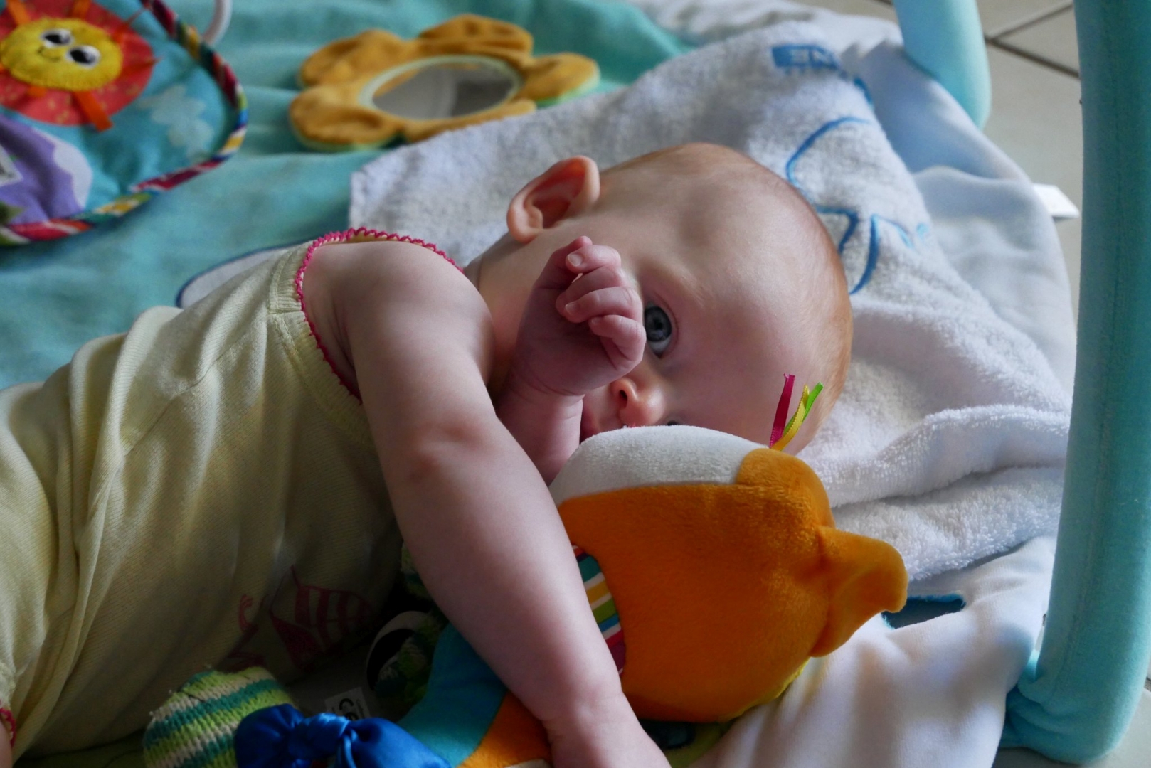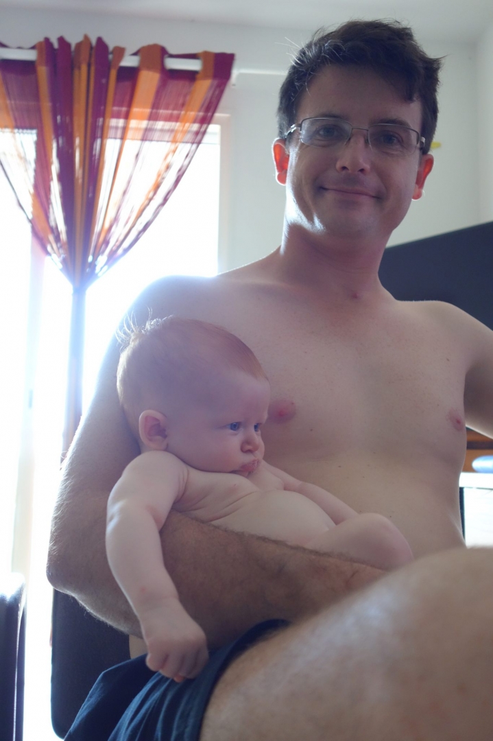 Cela peut vous sembler anodin mais pour moi, bébé de profession, cela fait beaucoup de boulot en plus : me voilà filmée, photographiée sous tous les angles. Un « bébé modèle » quoi. Et oui car qui dit nouveau jouet dit besoin de l’essayer … Plus moyen de faire des bêtises sans être filmée. Pour que papa arrête de jouer les paparazzis avec moi, j’ai même dû, avec la complicité de maman, l’emmener au parc forestier. Rien de tel qu’un papa dans un parc, ça court partout et photographie les bestioles. Et moi, programme câlin avec maman entre deux siestes.