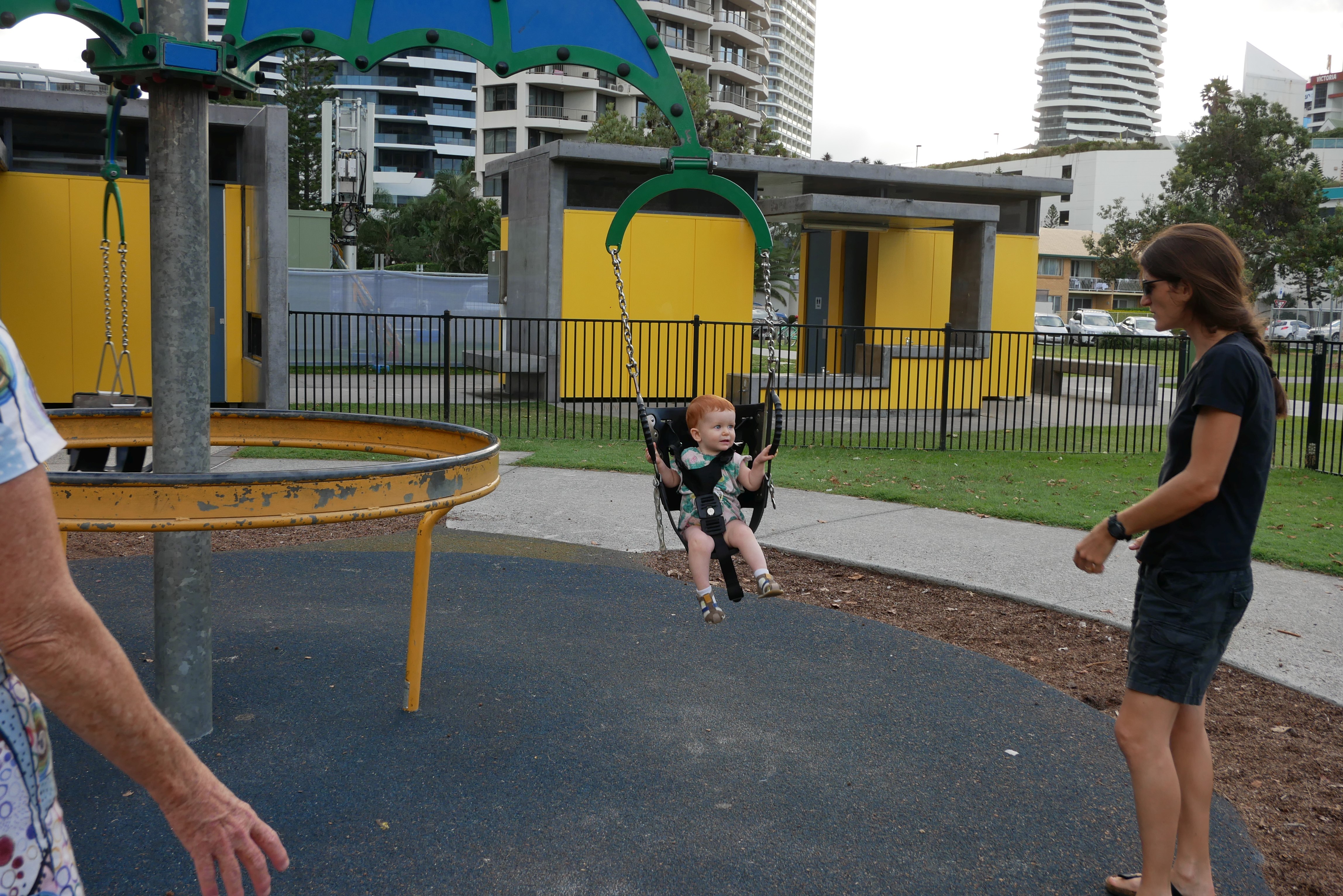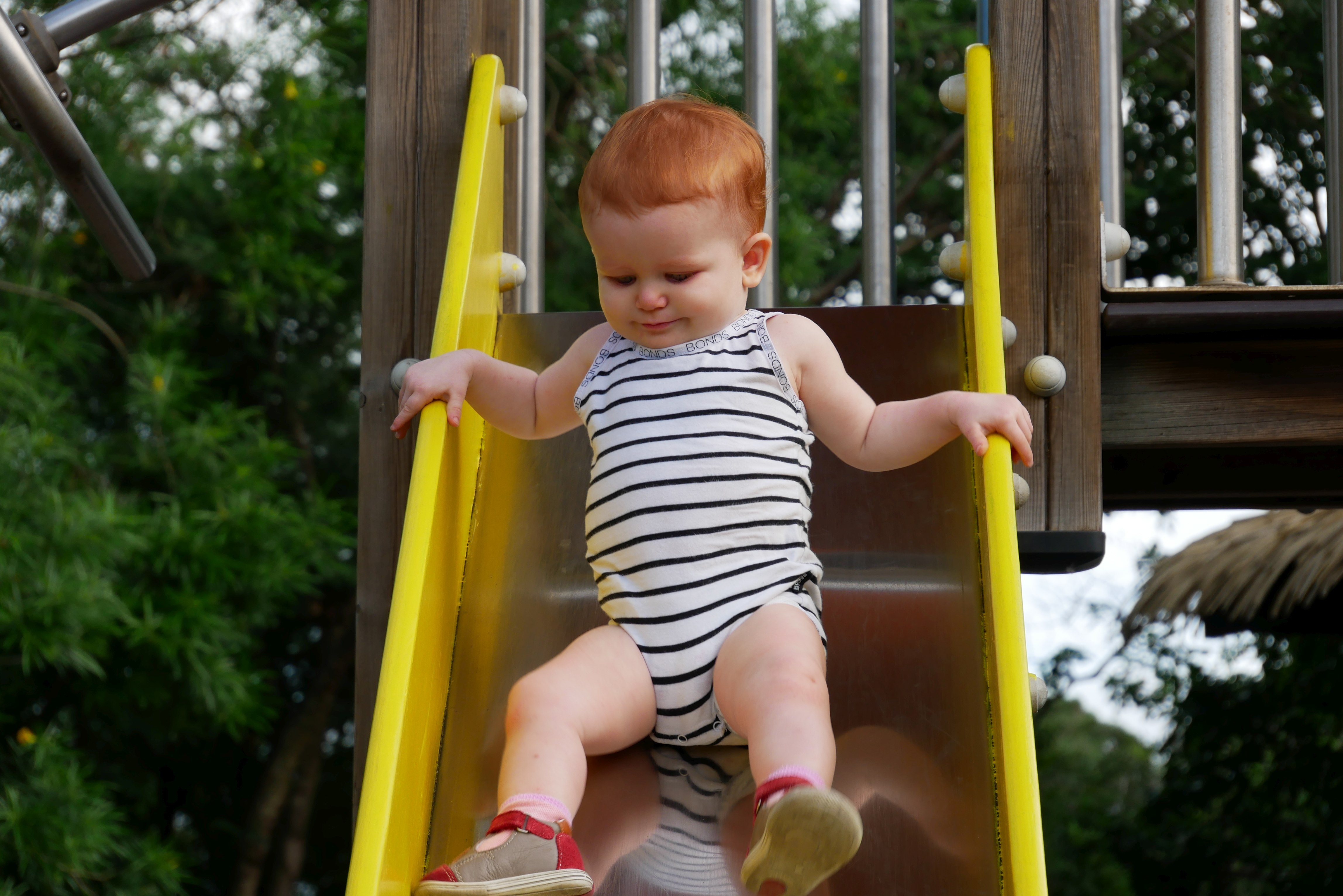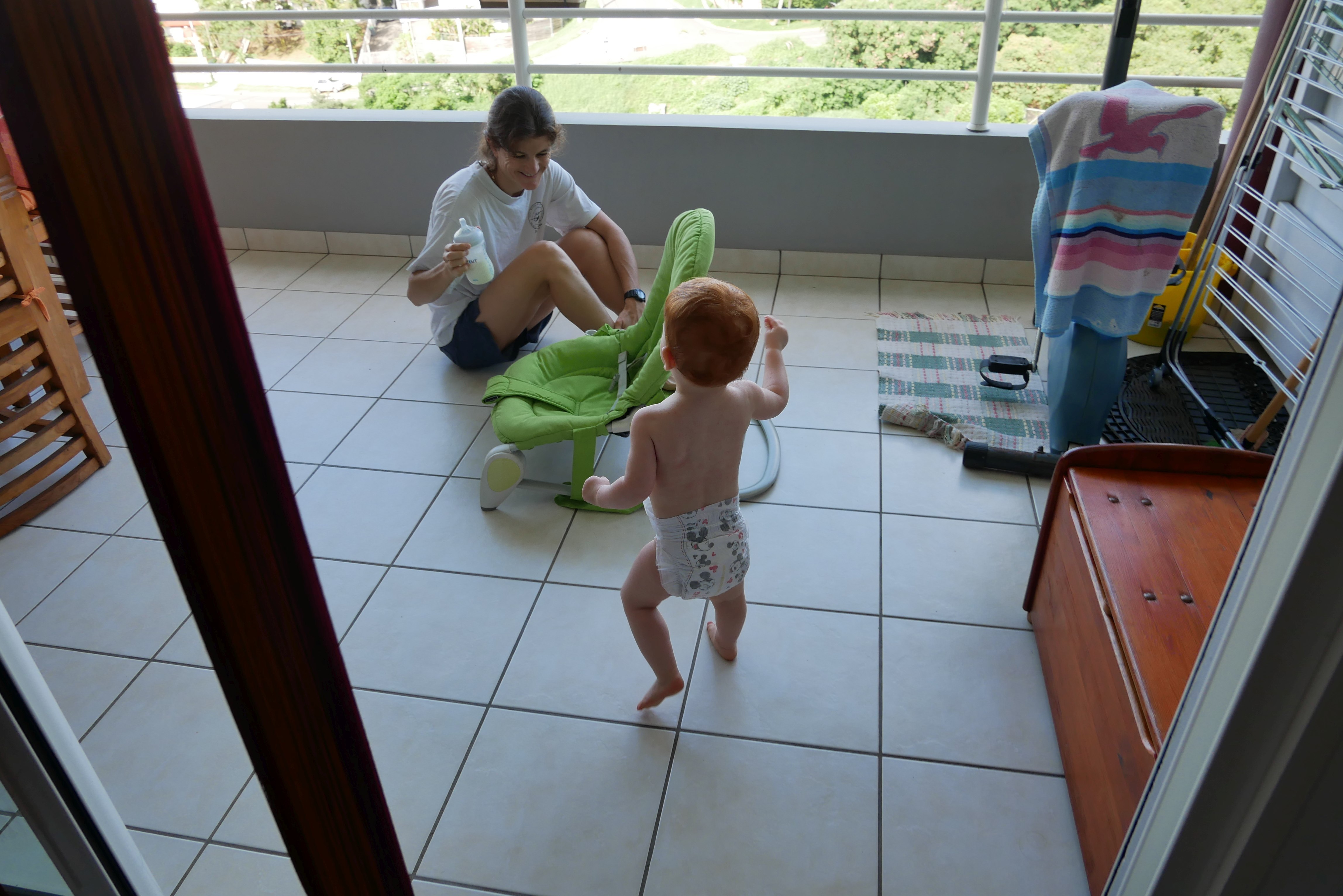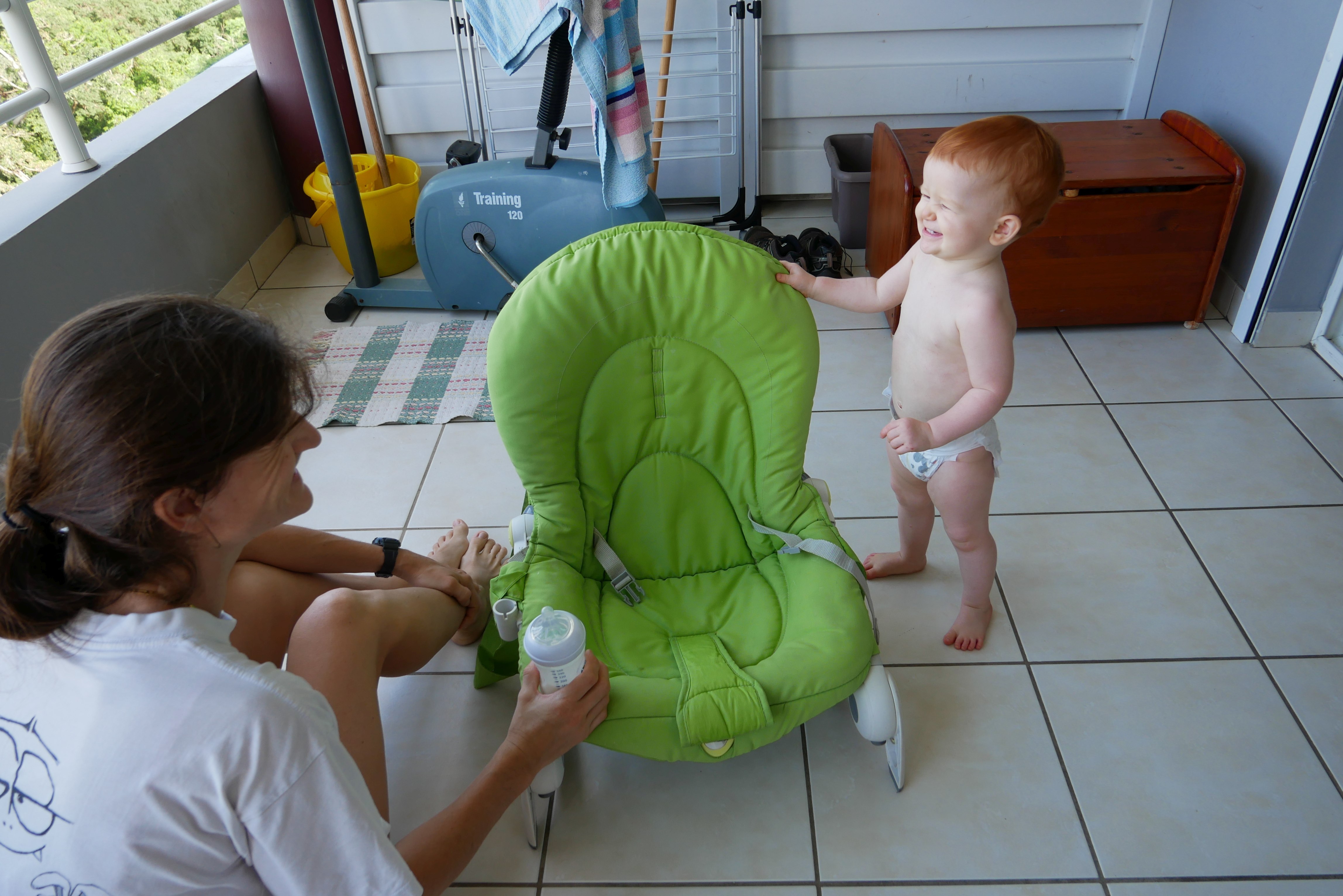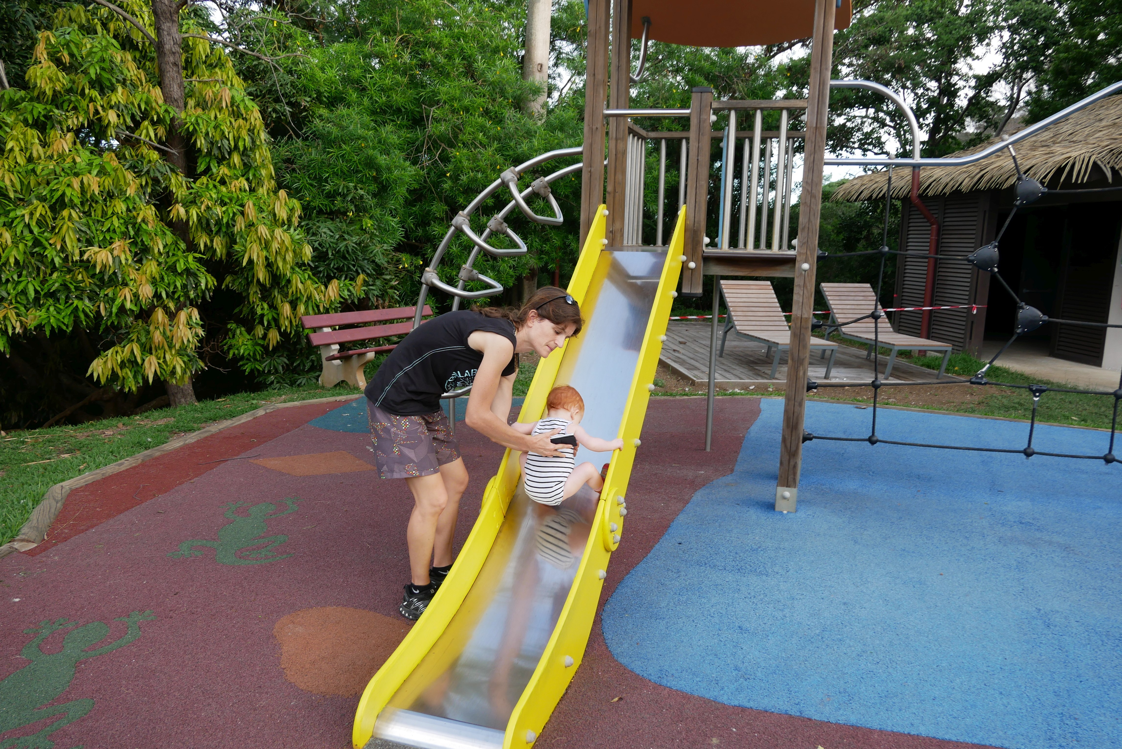 Bon, pour ceux qui n’ont pas suivi, nous les bébés on prend parfois des vacances. Là c’était les derniers jours. On a bien rigolé, j’ai continué d’explorer tous les parcs de jeux. Super sympa, au bilan, j’ai bien aimé les balançoires, certains jeux qui tournent, … J’ai aussi été me baigner à la plage. Ben dis donc, je ne pensais pas mais elles sont costaudes leurs vagues chez eux, reversant ! J’ai bien rigolé, j’ai bien aimé le sable aussi même si mes parents m’ont quelques peu bridée, soit-disant que ce sable est super fin et que j’allais en mettre partout. J’ai aussi vu de (très) près des animaux dans un parc, dont des crocodiles. Ils ne ressemblent pas beaucoup à ceux des dessins animés: aucun sourire et ils sont gros mais ils ne bougent pas. Et puis il a fallu repartir pour rentrer, on a pris l’avion tard le soir, j’ai aidé papa à pousser les bagages, ce qui a fait rire les gens dans l’aéroport. Au final on est arrivés, j’ai retrouvé ma crèche aujourd’hui.