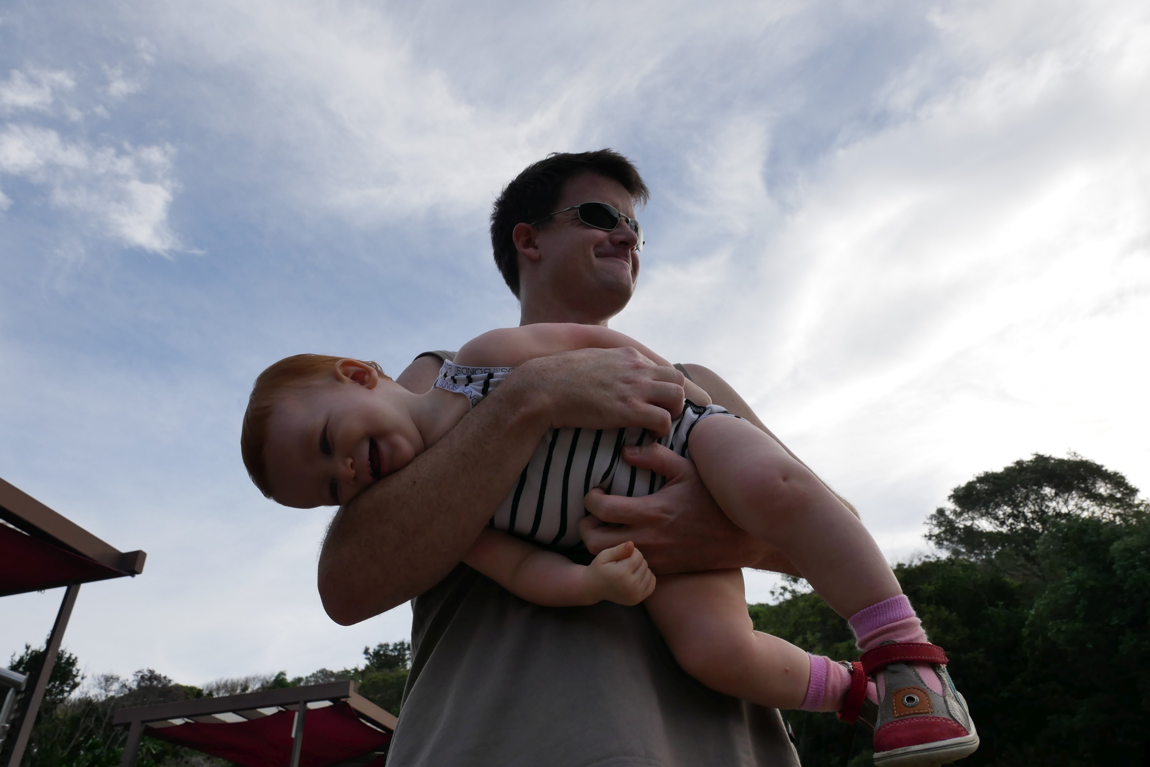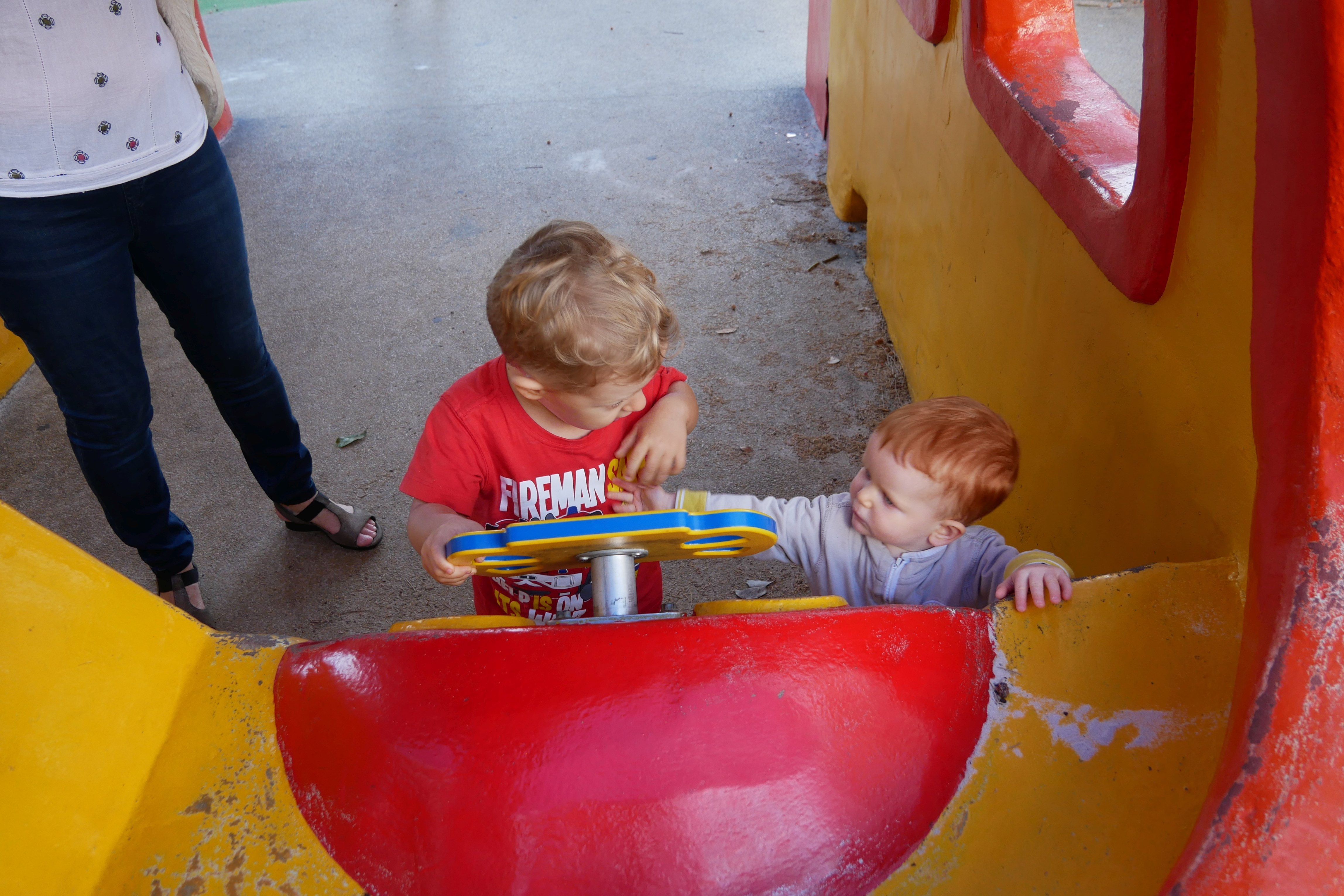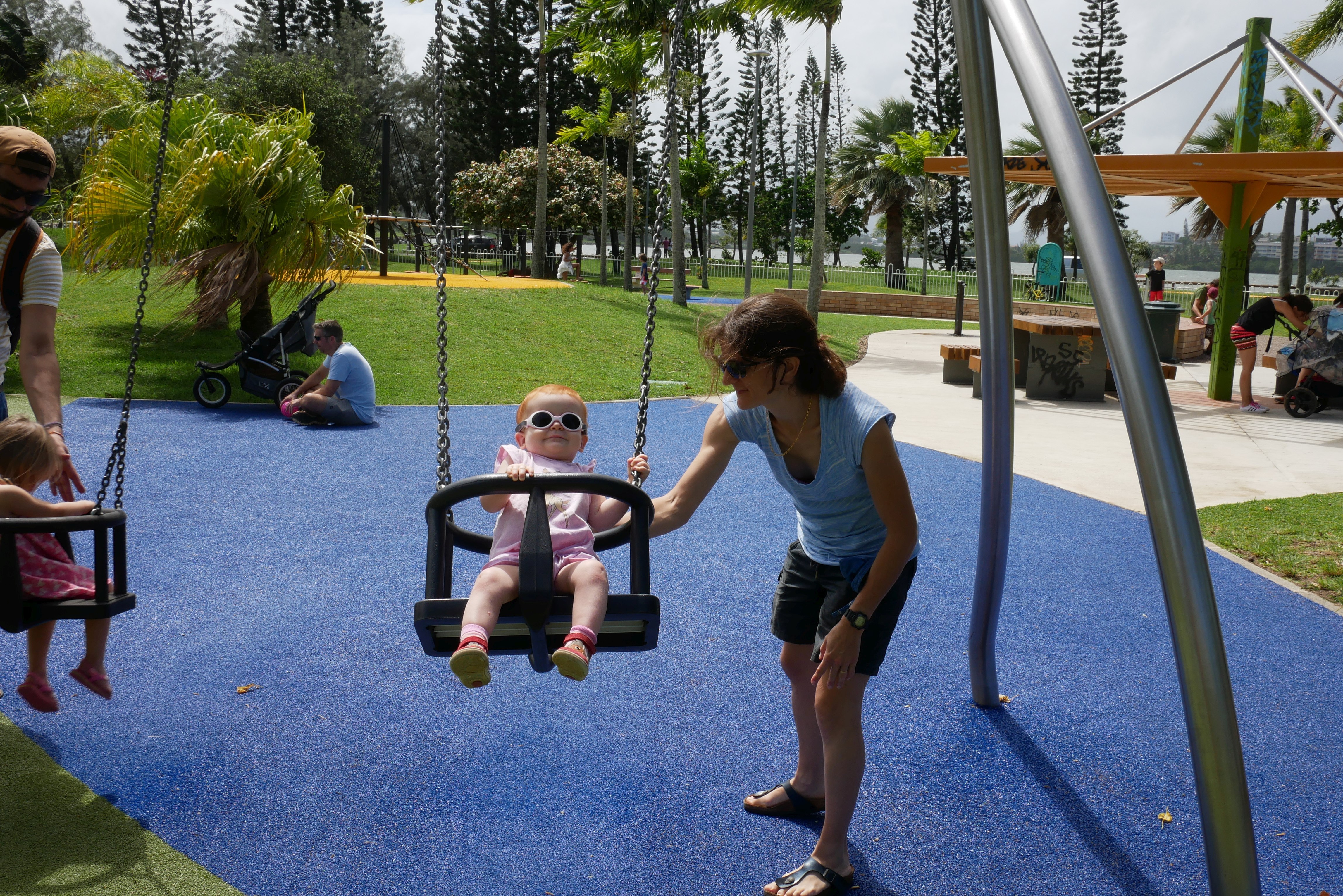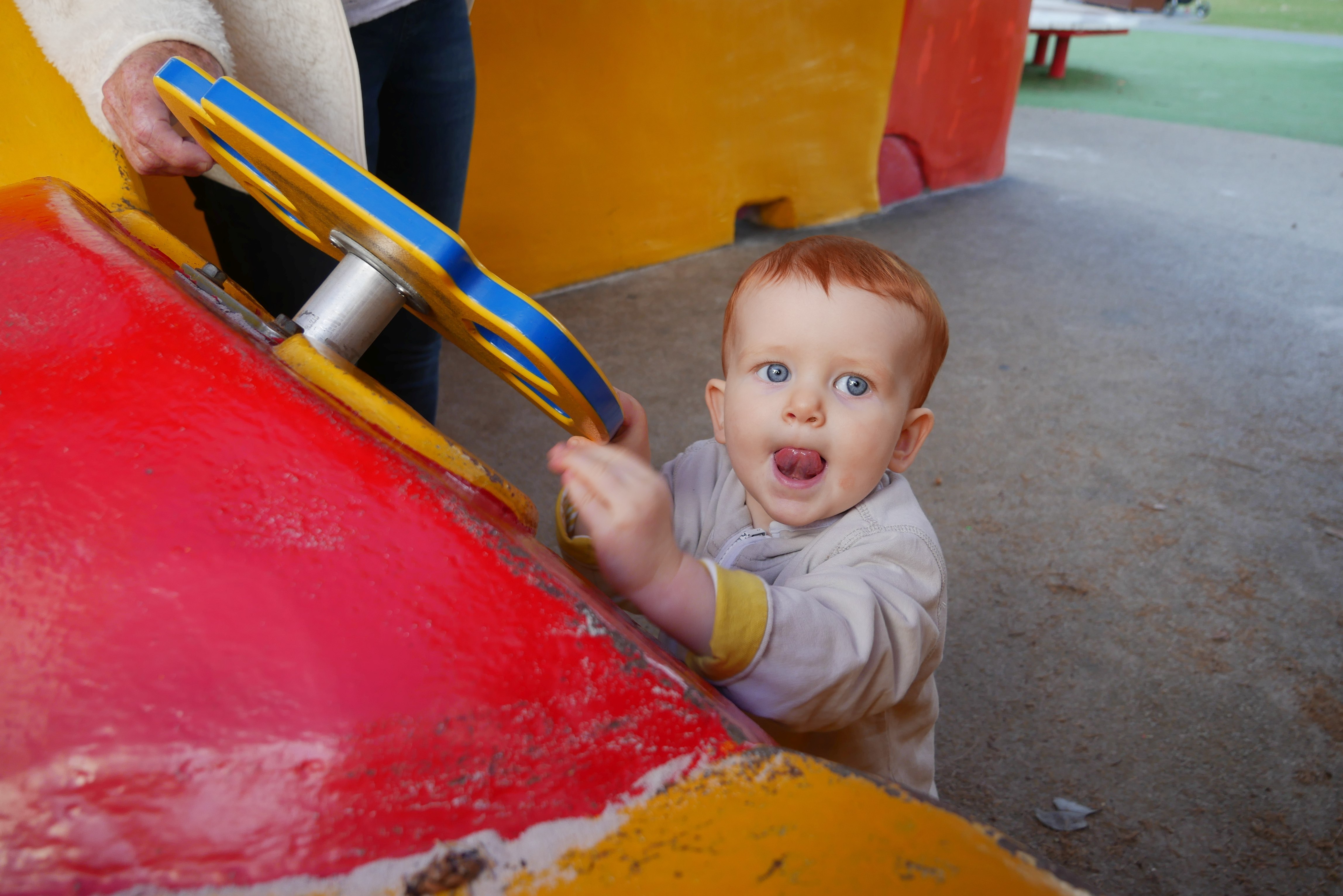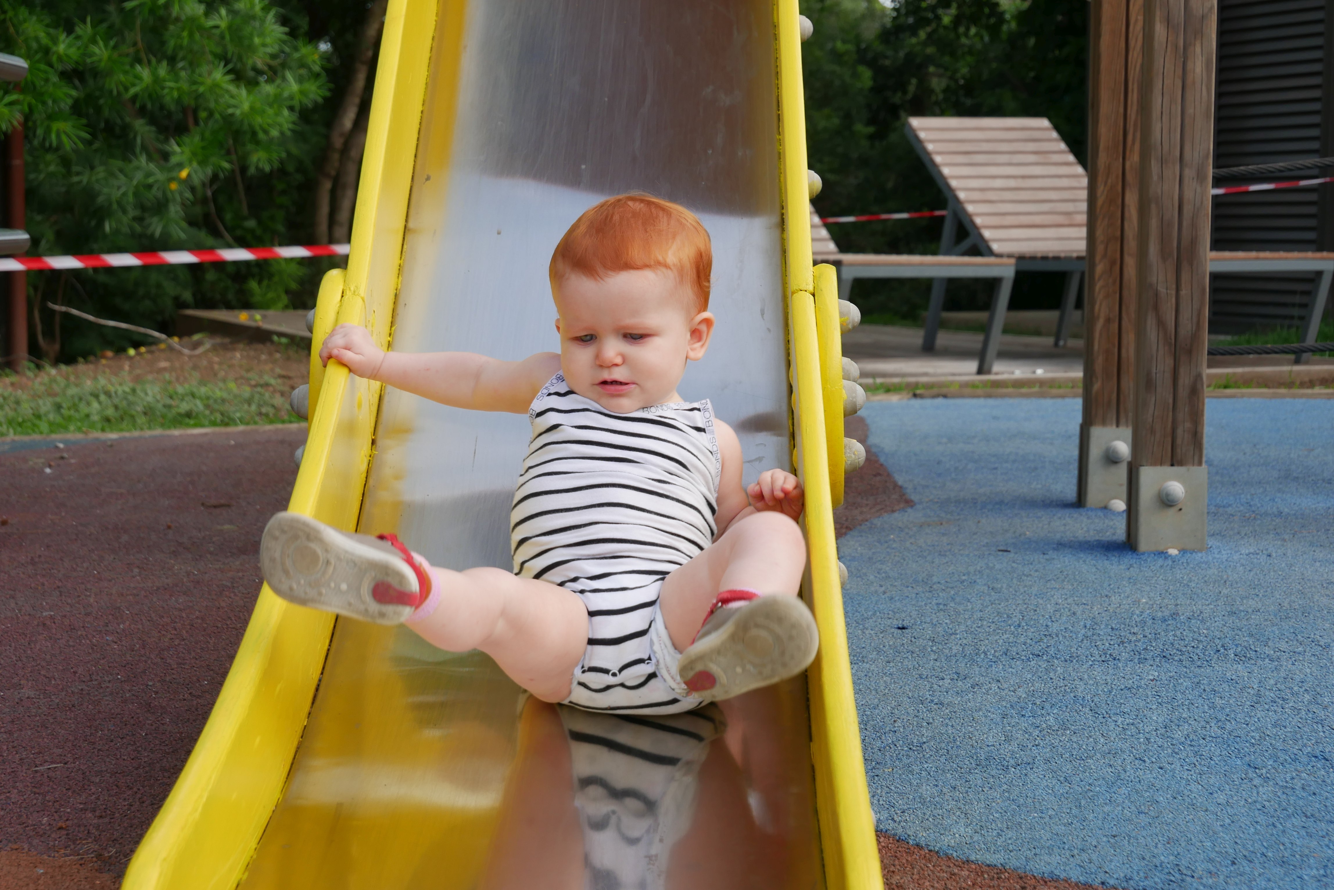 Bon, pour ceux qui n’ont pas suivi, nous les bébés on prend parfois des vacances. Là c’était les derniers jours. On a bien rigolé, j’ai continué d’explorer tous les parcs de jeux. Super sympa, au bilan, j’ai bien aimé les balançoires, certains jeux qui tournent, … J’ai aussi été me baigner à la plage. Ben dis donc, je ne pensais pas mais elles sont costaudes leurs vagues chez eux, reversant ! J’ai bien rigolé, j’ai bien aimé le sable aussi même si mes parents m’ont quelques peu bridée, soit-disant que ce sable est super fin et que j’allais en mettre partout. J’ai aussi vu de (très) près des animaux dans un parc, dont des crocodiles. Ils ne ressemblent pas beaucoup à ceux des dessins animés: aucun sourire et ils sont gros mais ils ne bougent pas. Et puis il a fallu repartir pour rentrer, on a pris l’avion tard le soir, j’ai aidé papa à pousser les bagages, ce qui a fait rire les gens dans l’aéroport. Au final on est arrivés, j’ai retrouvé ma crèche aujourd’hui.