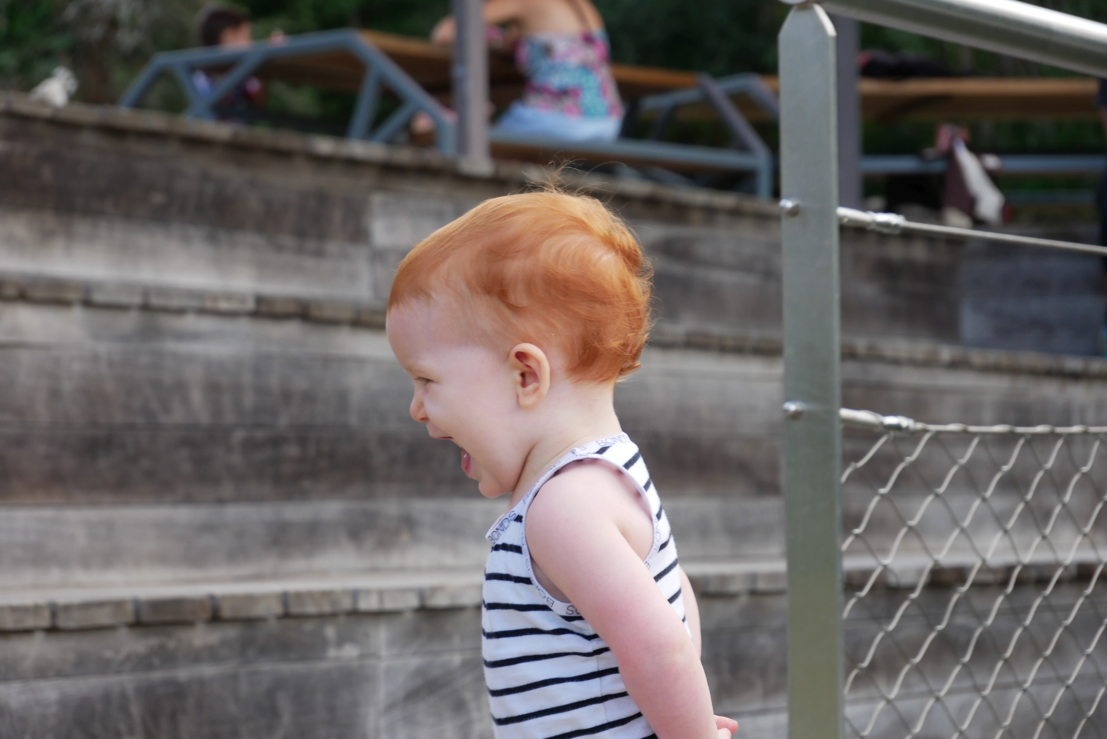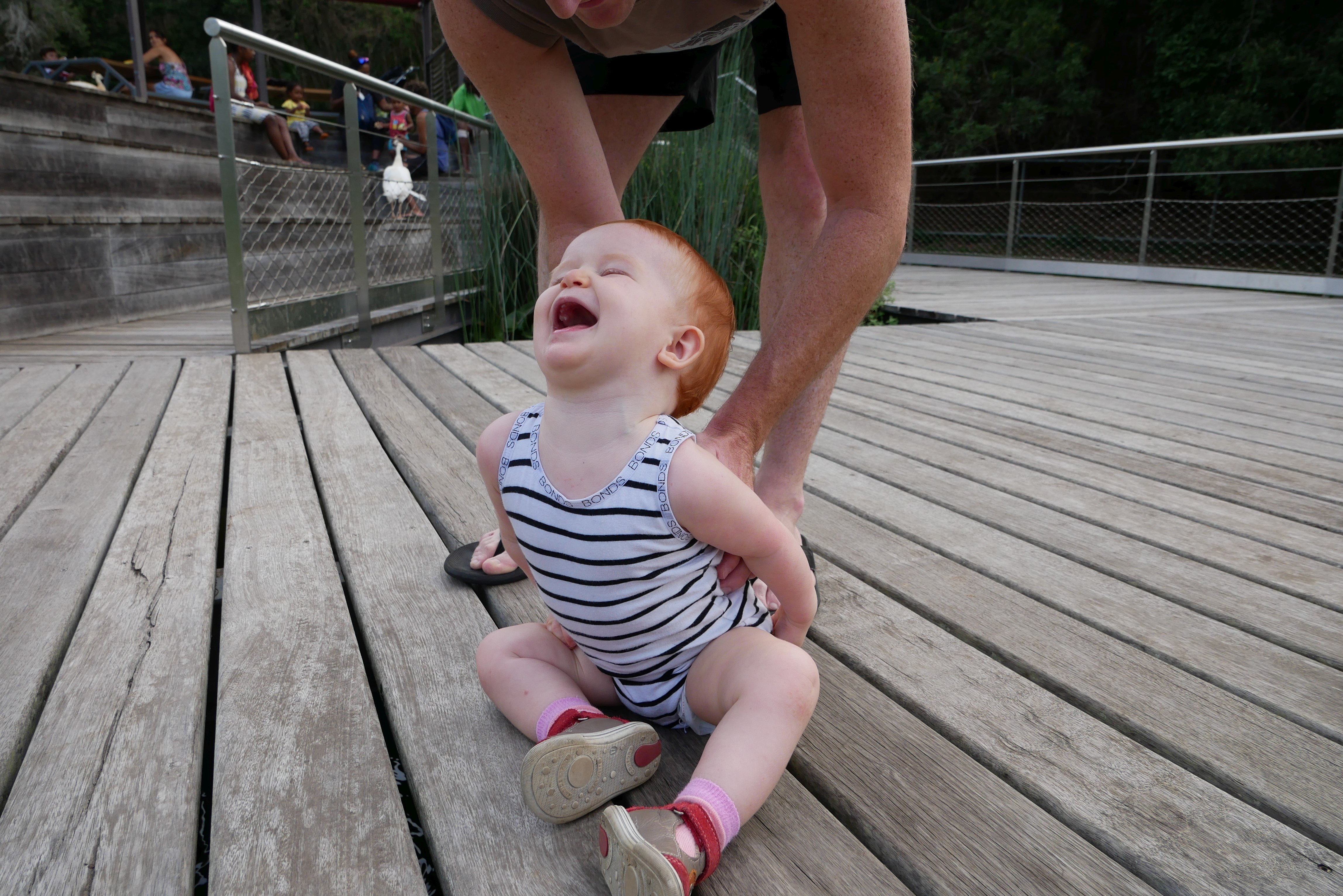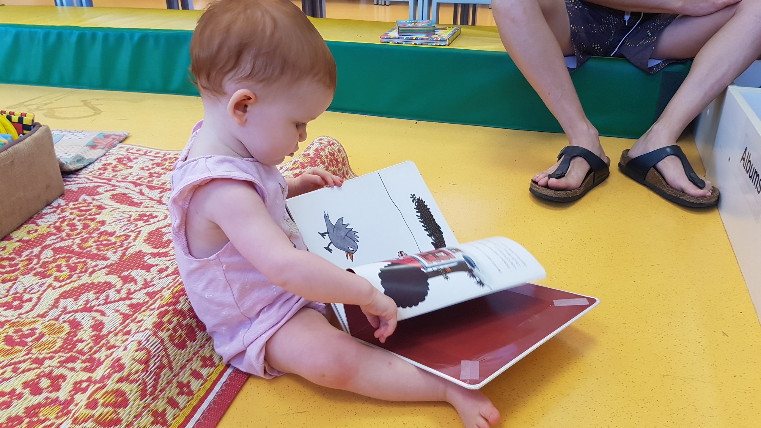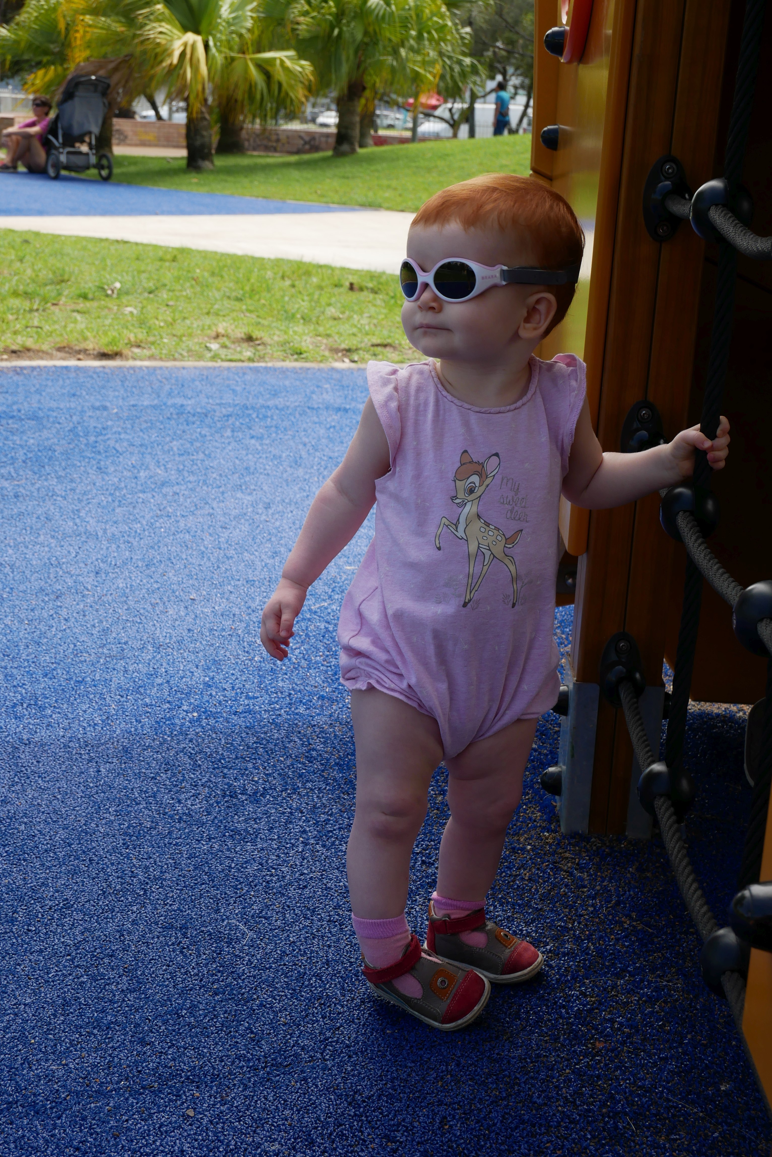 Bon, pour ceux qui n’ont pas suivi, nous les bébés on prend parfois des vacances. Là c’était les derniers jours. On a bien rigolé, j’ai continué d’explorer tous les parcs de jeux. Super sympa, au bilan, j’ai bien aimé les balançoires, certains jeux qui tournent, … J’ai aussi été me baigner à la plage. Ben dis donc, je ne pensais pas mais elles sont costaudes leurs vagues chez eux, reversant ! J’ai bien rigolé, j’ai bien aimé le sable aussi même si mes parents m’ont quelques peu bridée, soit-disant que ce sable est super fin et que j’allais en mettre partout. J’ai aussi vu de (très) près des animaux dans un parc, dont des crocodiles. Ils ne ressemblent pas beaucoup à ceux des dessins animés: aucun sourire et ils sont gros mais ils ne bougent pas. Et puis il a fallu repartir pour rentrer, on a pris l’avion tard le soir, j’ai aidé papa à pousser les bagages, ce qui a fait rire les gens dans l’aéroport. Au final on est arrivés, j’ai retrouvé ma crèche aujourd’hui.
