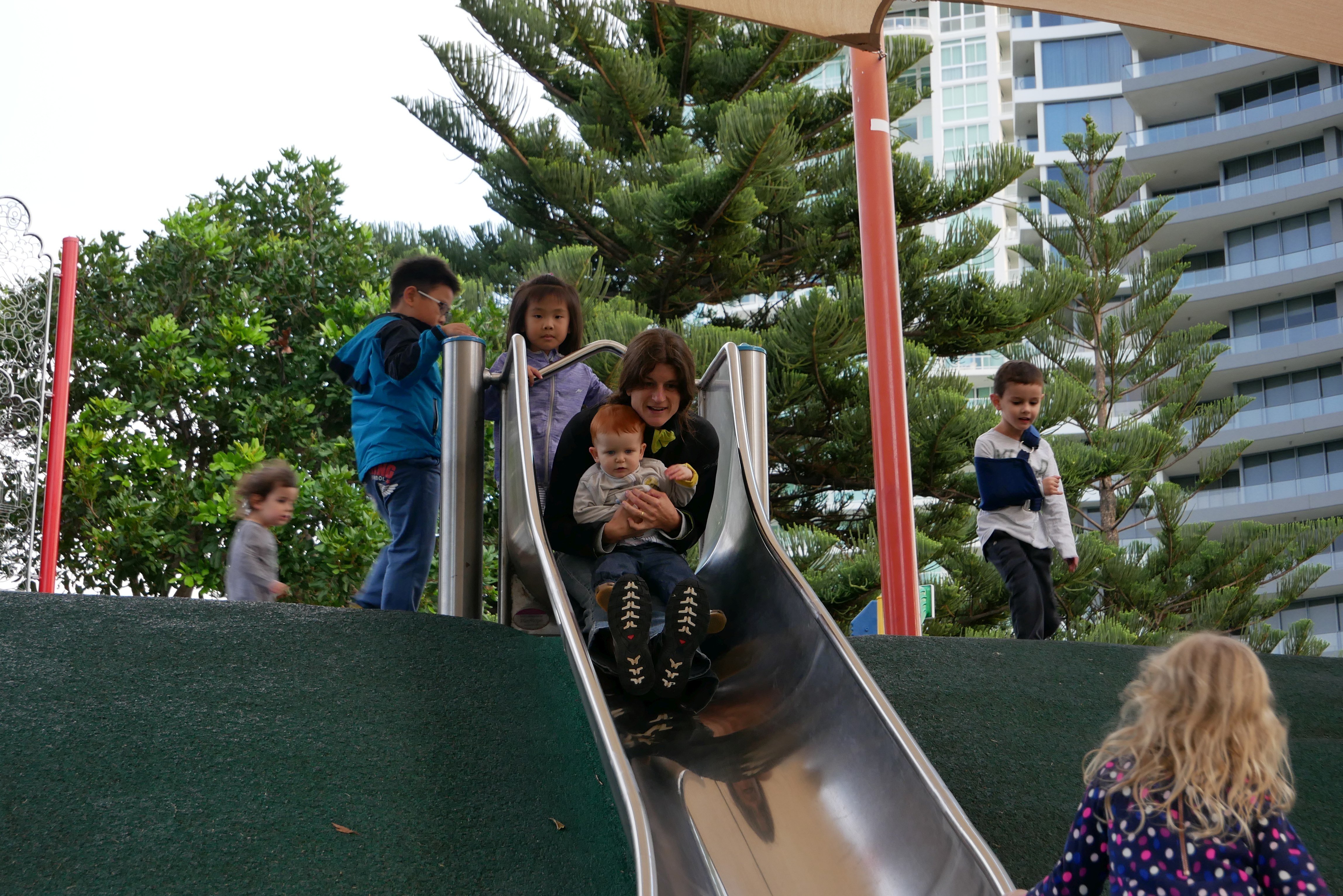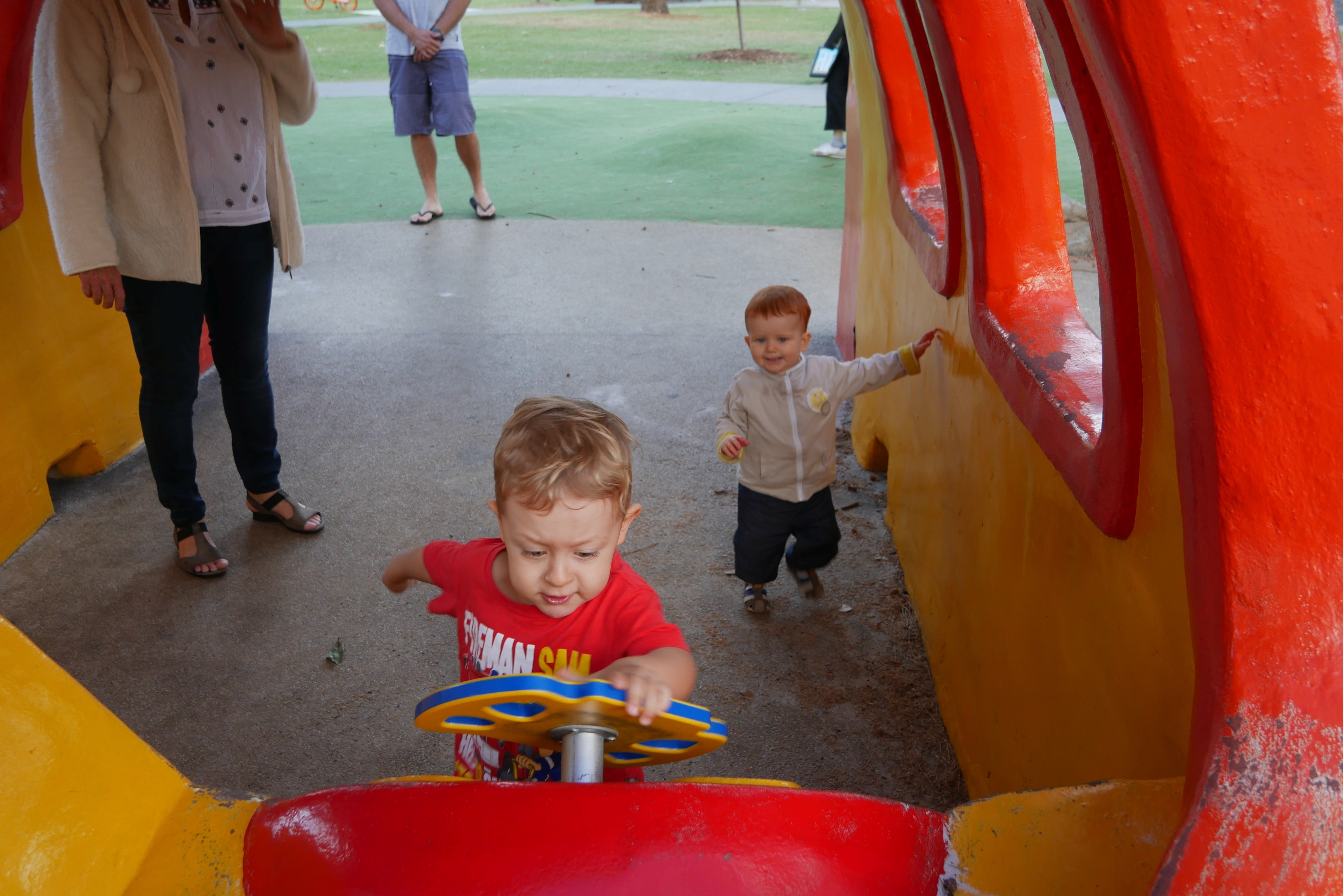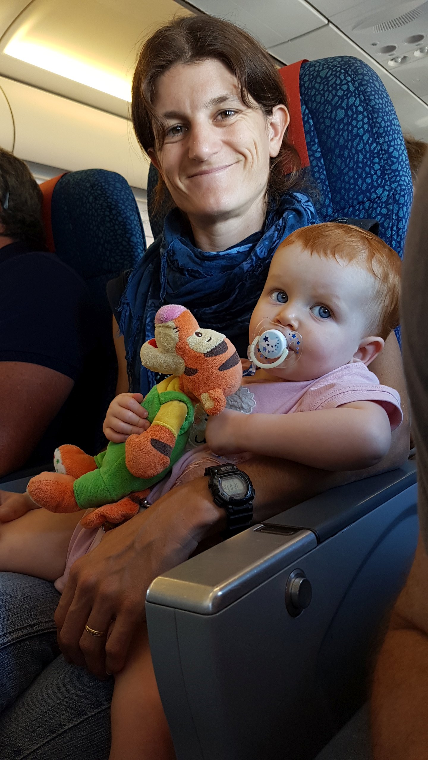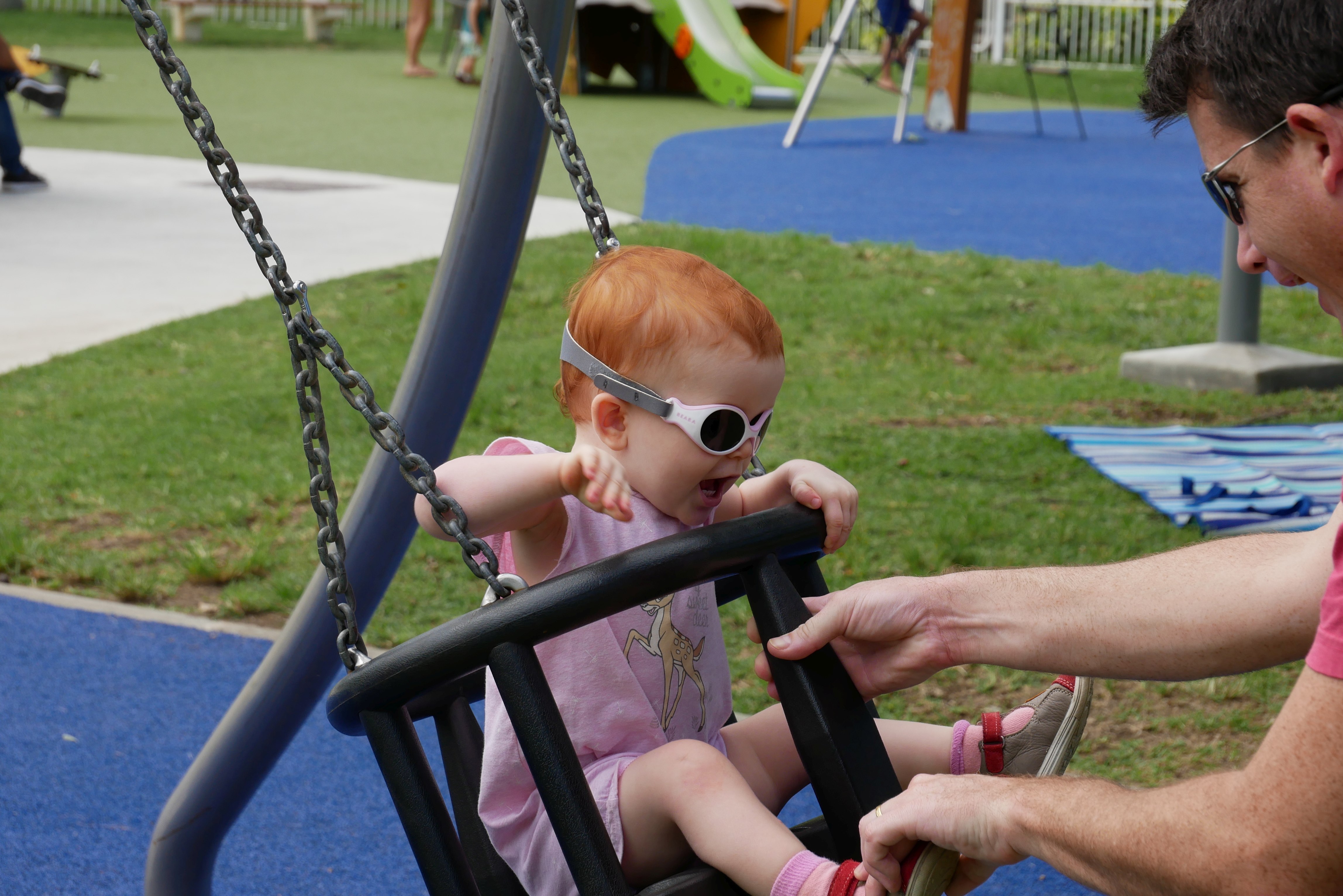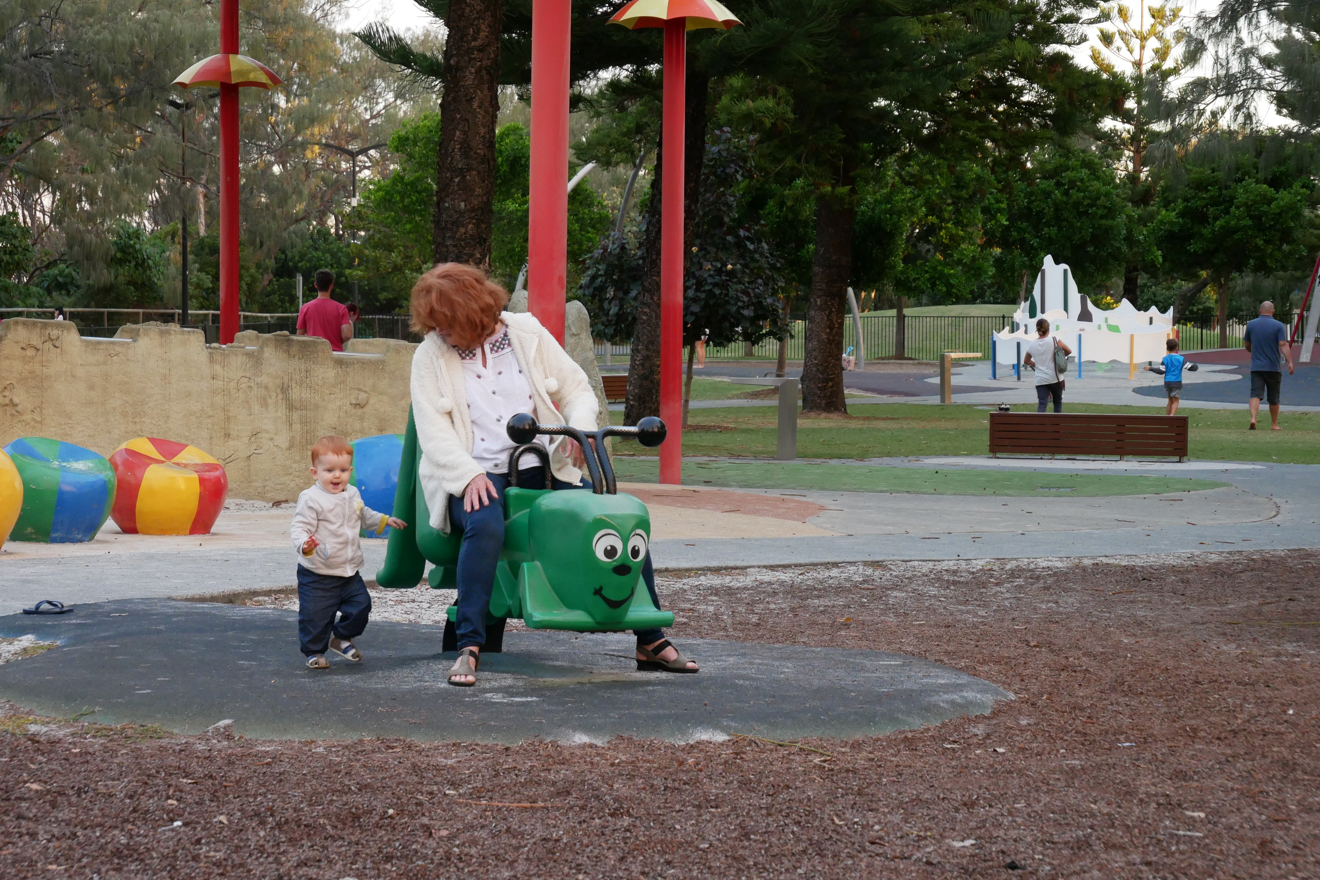 Bon, pour ceux qui n’ont pas suivi, nous les bébés on prend parfois des vacances. Là c’était les derniers jours. On a bien rigolé, j’ai continué d’explorer tous les parcs de jeux. Super sympa, au bilan, j’ai bien aimé les balançoires, certains jeux qui tournent, … J’ai aussi été me baigner à la plage. Ben dis donc, je ne pensais pas mais elles sont costaudes leurs vagues chez eux, reversant ! J’ai bien rigolé, j’ai bien aimé le sable aussi même si mes parents m’ont quelques peu bridée, soit-disant que ce sable est super fin et que j’allais en mettre partout. J’ai aussi vu de (très) près des animaux dans un parc, dont des crocodiles. Ils ne ressemblent pas beaucoup à ceux des dessins animés: aucun sourire et ils sont gros mais ils ne bougent pas. Et puis il a fallu repartir pour rentrer, on a pris l’avion tard le soir, j’ai aidé papa à pousser les bagages, ce qui a fait rire les gens dans l’aéroport. Au final on est arrivés, j’ai retrouvé ma crèche aujourd’hui.