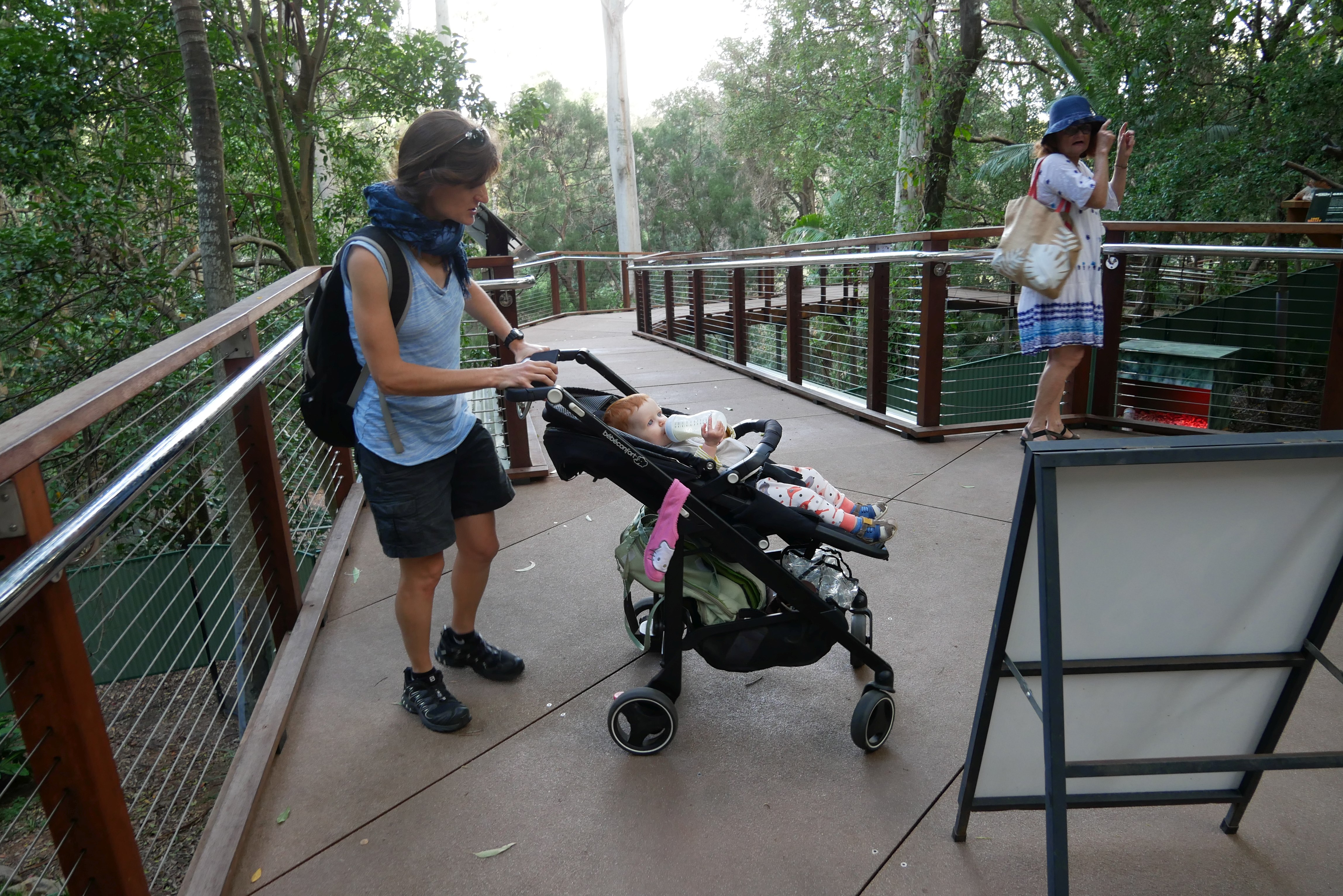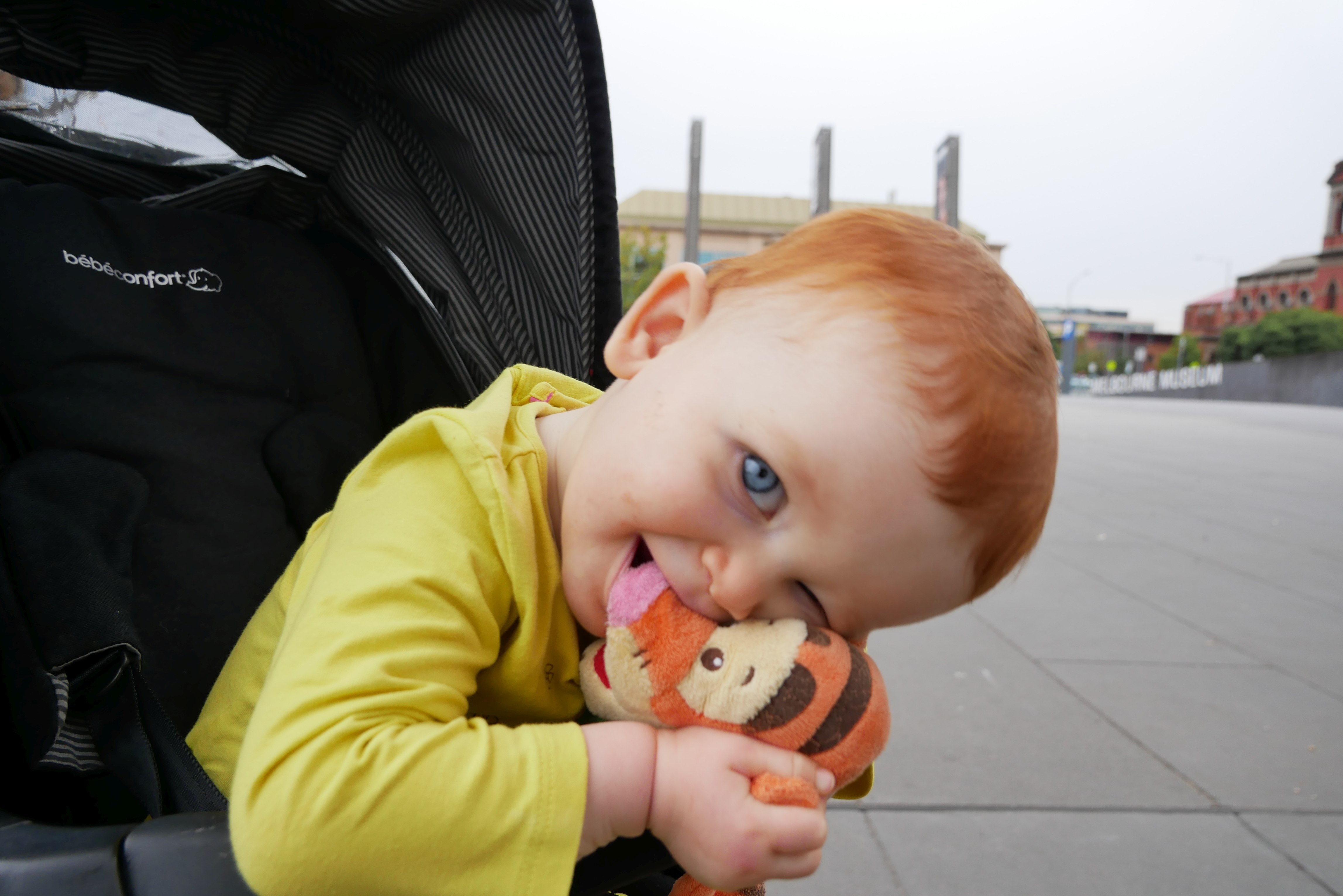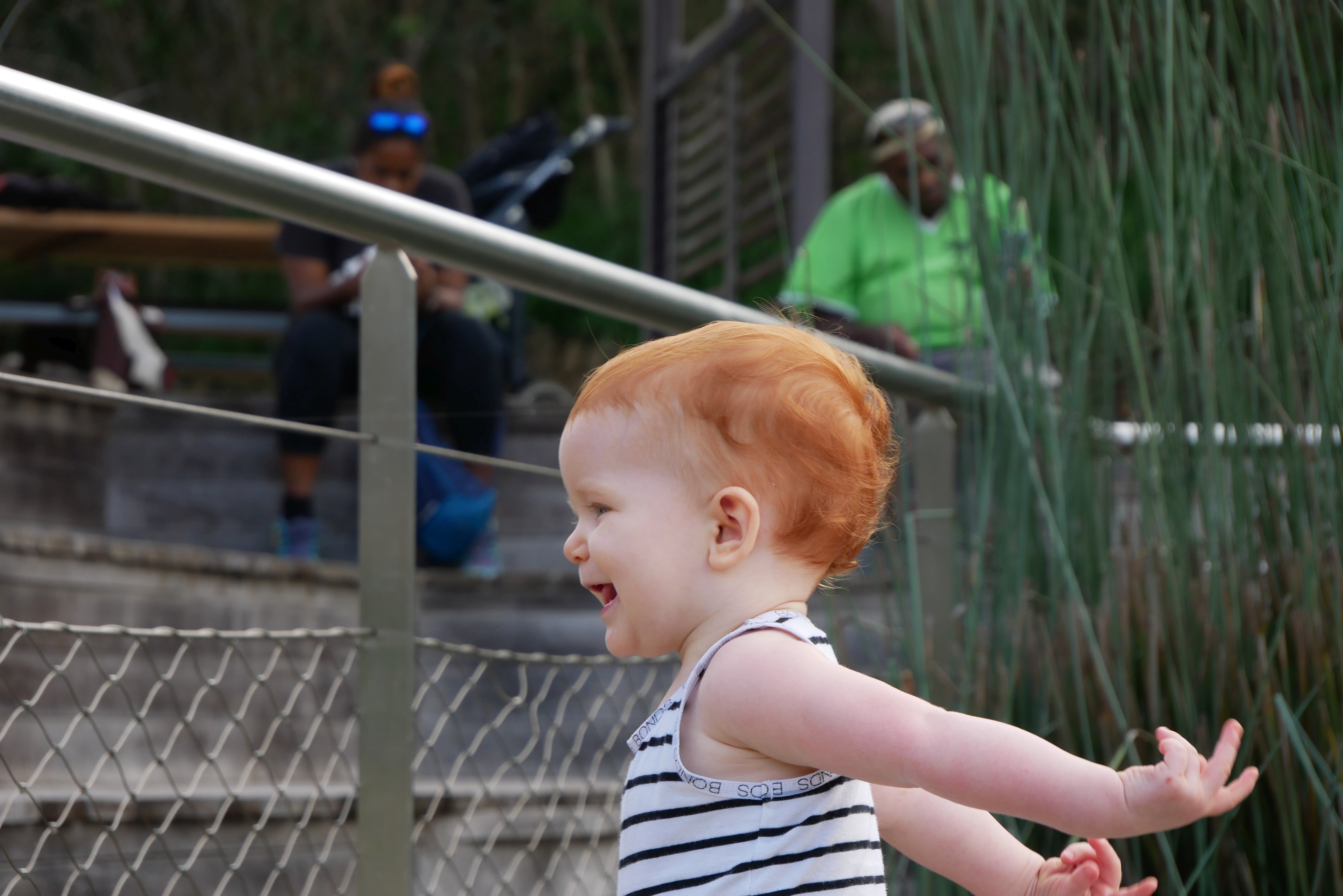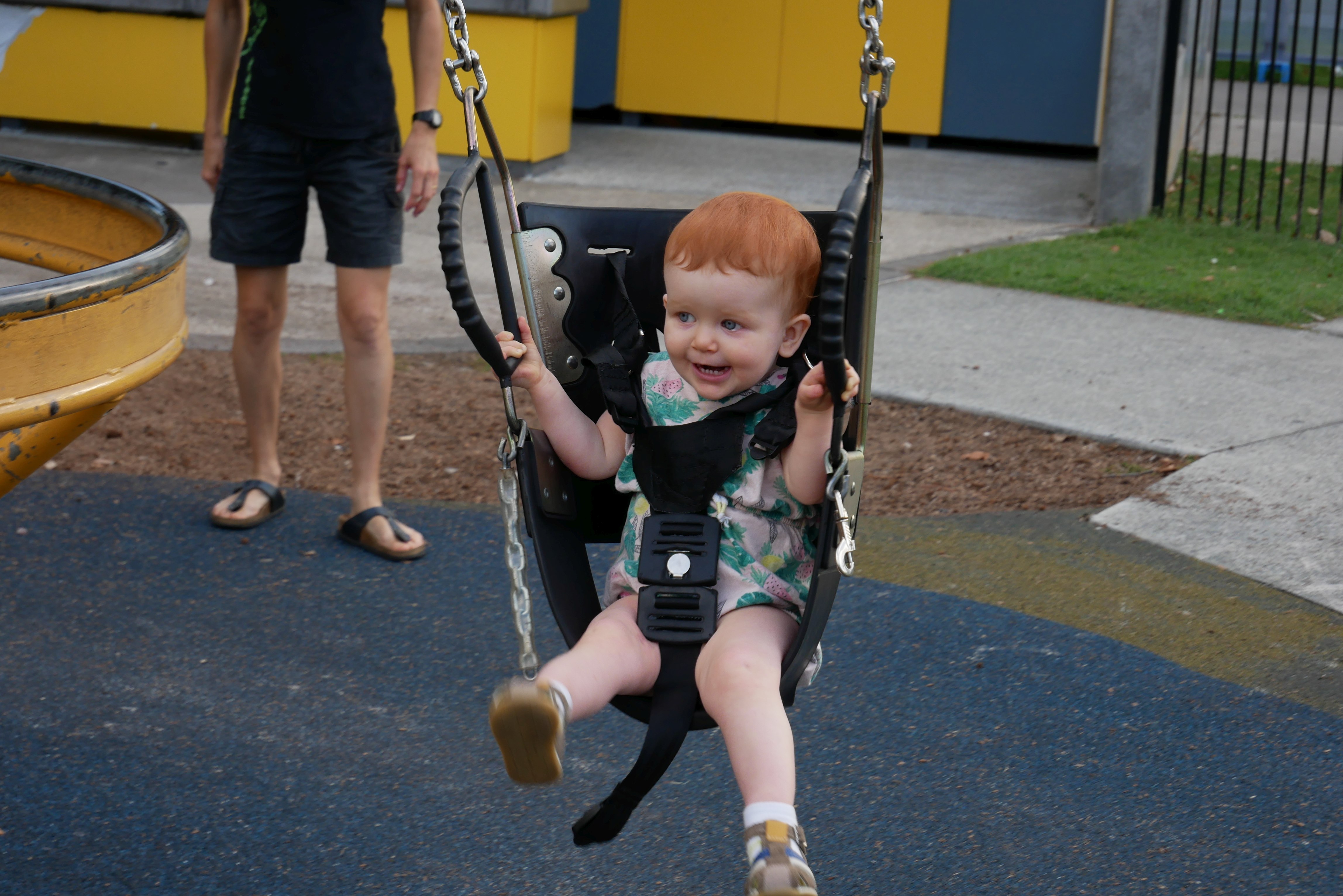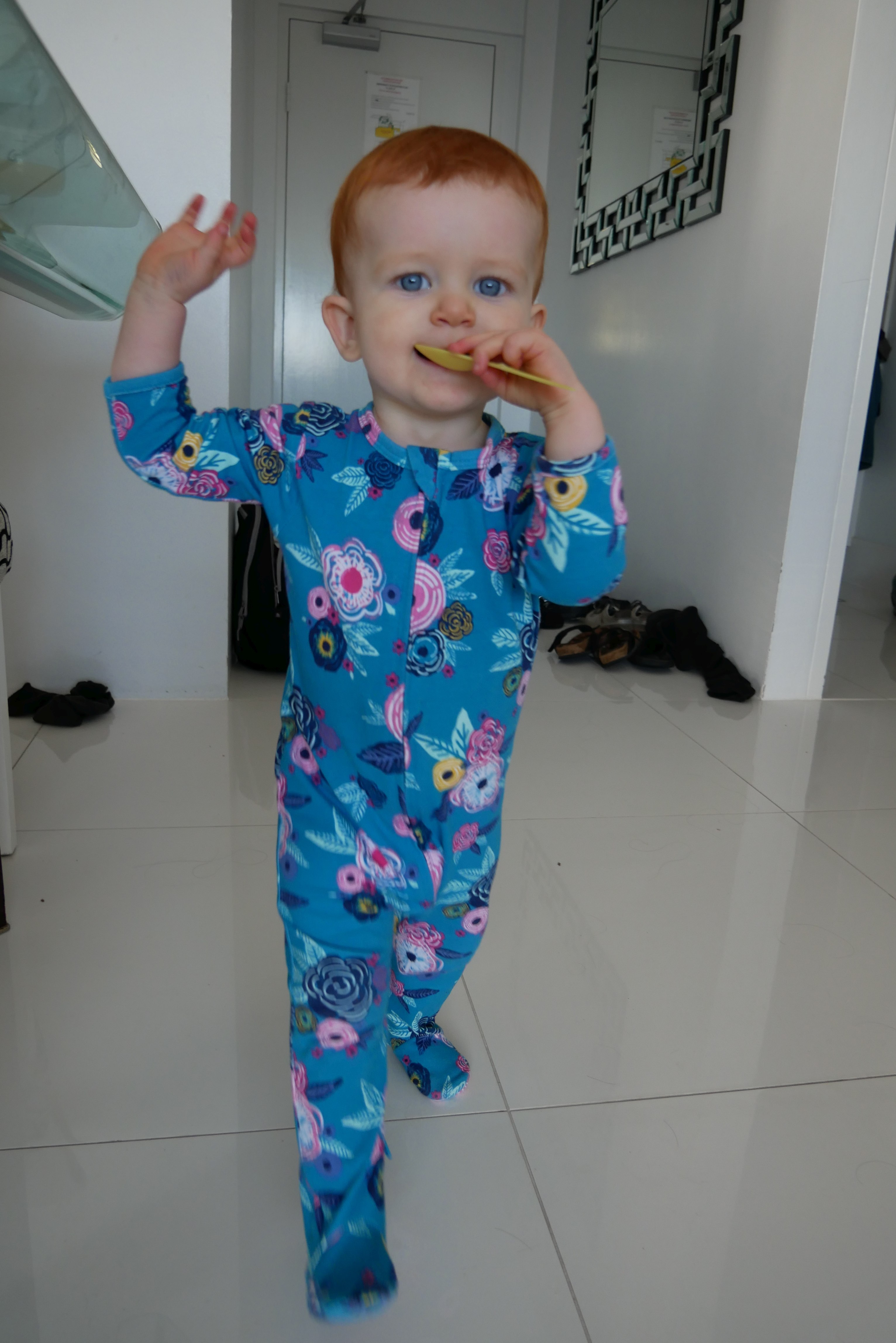 Bon, pour ceux qui n’ont pas suivi, nous les bébés on prend parfois des vacances. Là c’était les derniers jours. On a bien rigolé, j’ai continué d’explorer tous les parcs de jeux. Super sympa, au bilan, j’ai bien aimé les balançoires, certains jeux qui tournent, … J’ai aussi été me baigner à la plage. Ben dis donc, je ne pensais pas mais elles sont costaudes leurs vagues chez eux, reversant ! J’ai bien rigolé, j’ai bien aimé le sable aussi même si mes parents m’ont quelques peu bridée, soit-disant que ce sable est super fin et que j’allais en mettre partout. J’ai aussi vu de (très) près des animaux dans un parc, dont des crocodiles. Ils ne ressemblent pas beaucoup à ceux des dessins animés: aucun sourire et ils sont gros mais ils ne bougent pas. Et puis il a fallu repartir pour rentrer, on a pris l’avion tard le soir, j’ai aidé papa à pousser les bagages, ce qui a fait rire les gens dans l’aéroport. Au final on est arrivés, j’ai retrouvé ma crèche aujourd’hui.