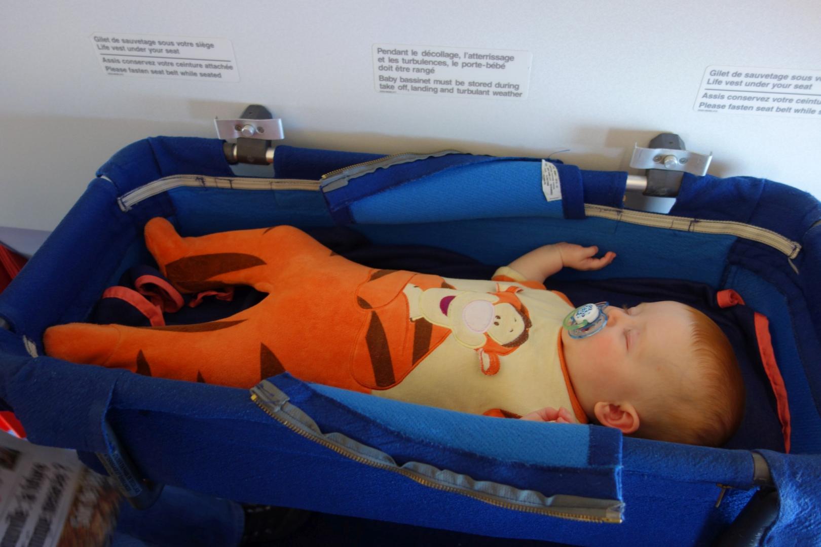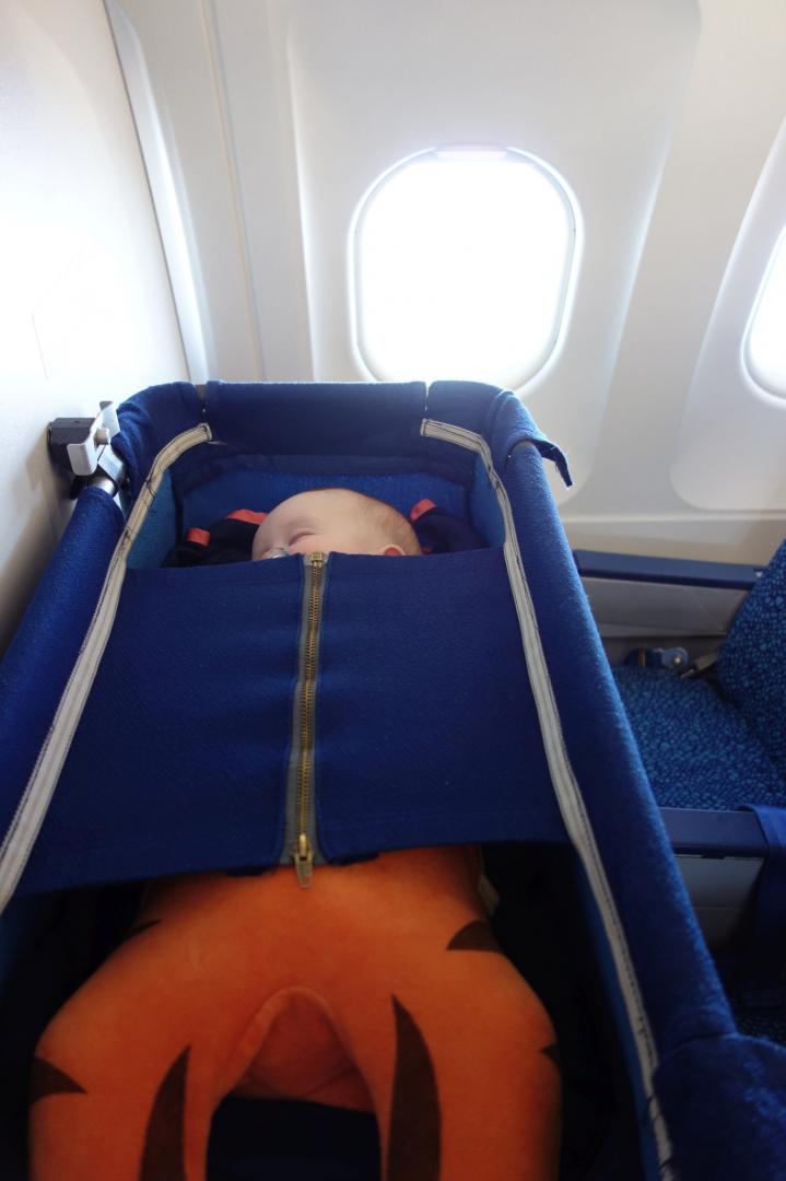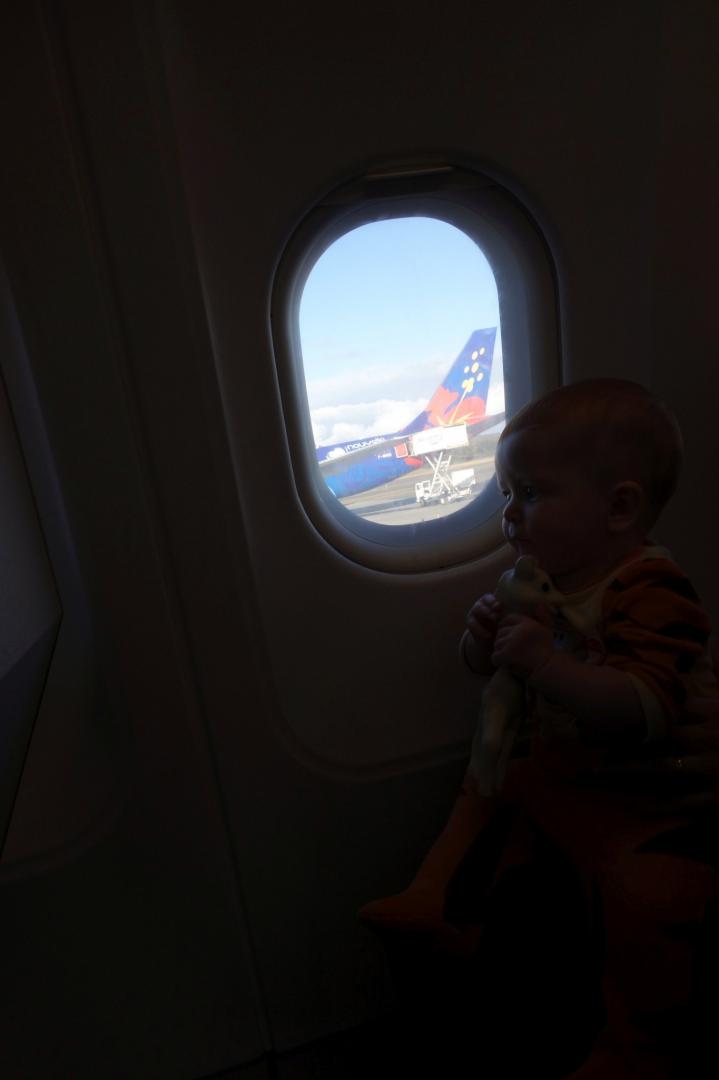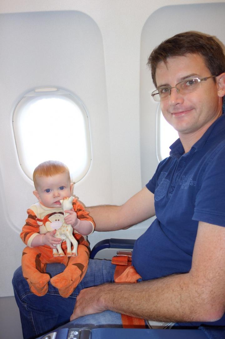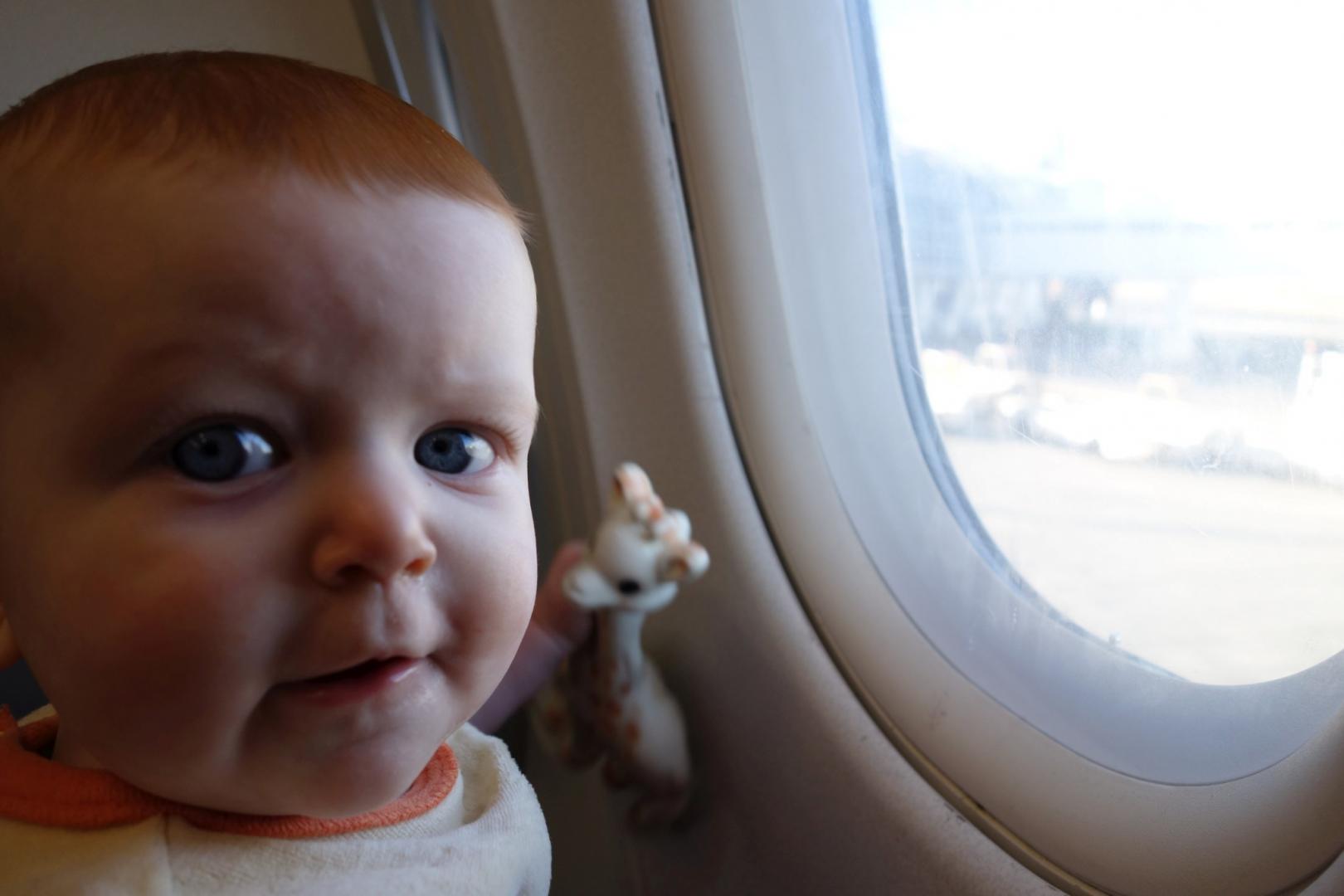 Pour le reste, ça a bougé, on est montés dans l’avion et moi j’ai fait un vol sans le moindre pleur. J’ai pas mal séduit le personnel de bord, ils m’ont installé un lit, j’ai roupillé un peu puis joué et le vol s’est couronné en apothéose sur une tétée pendant la descente. Bref que du bon, à refaire.