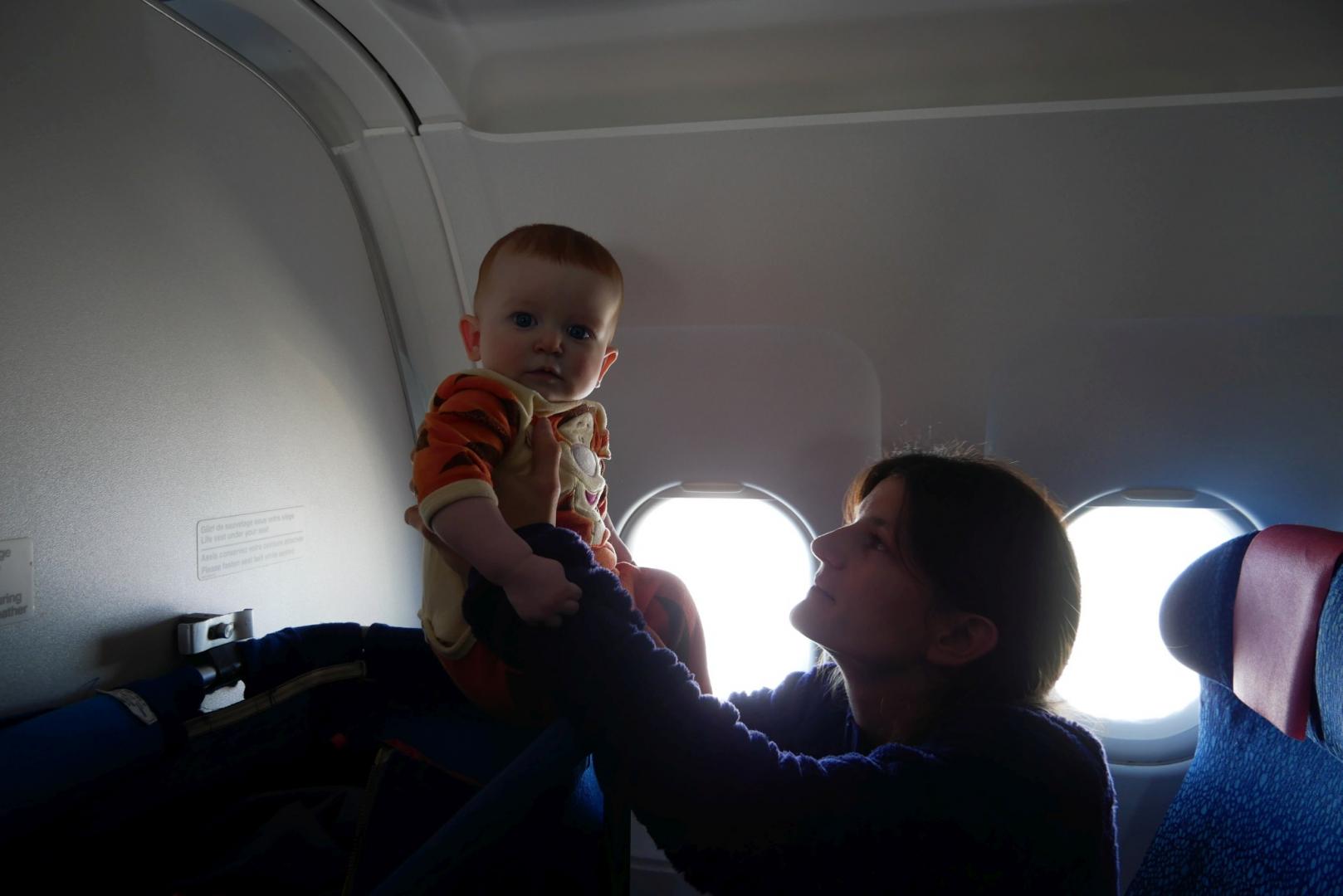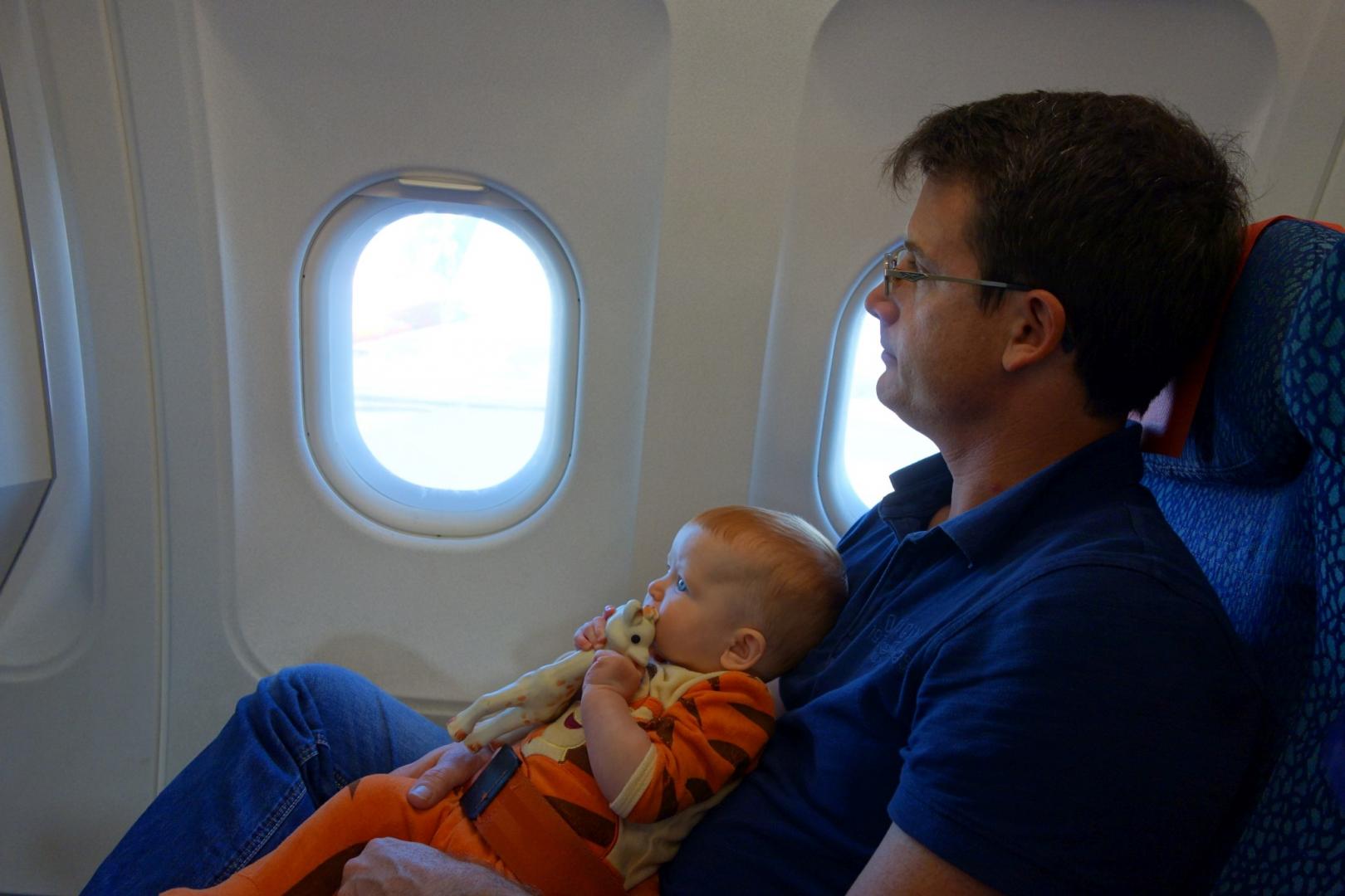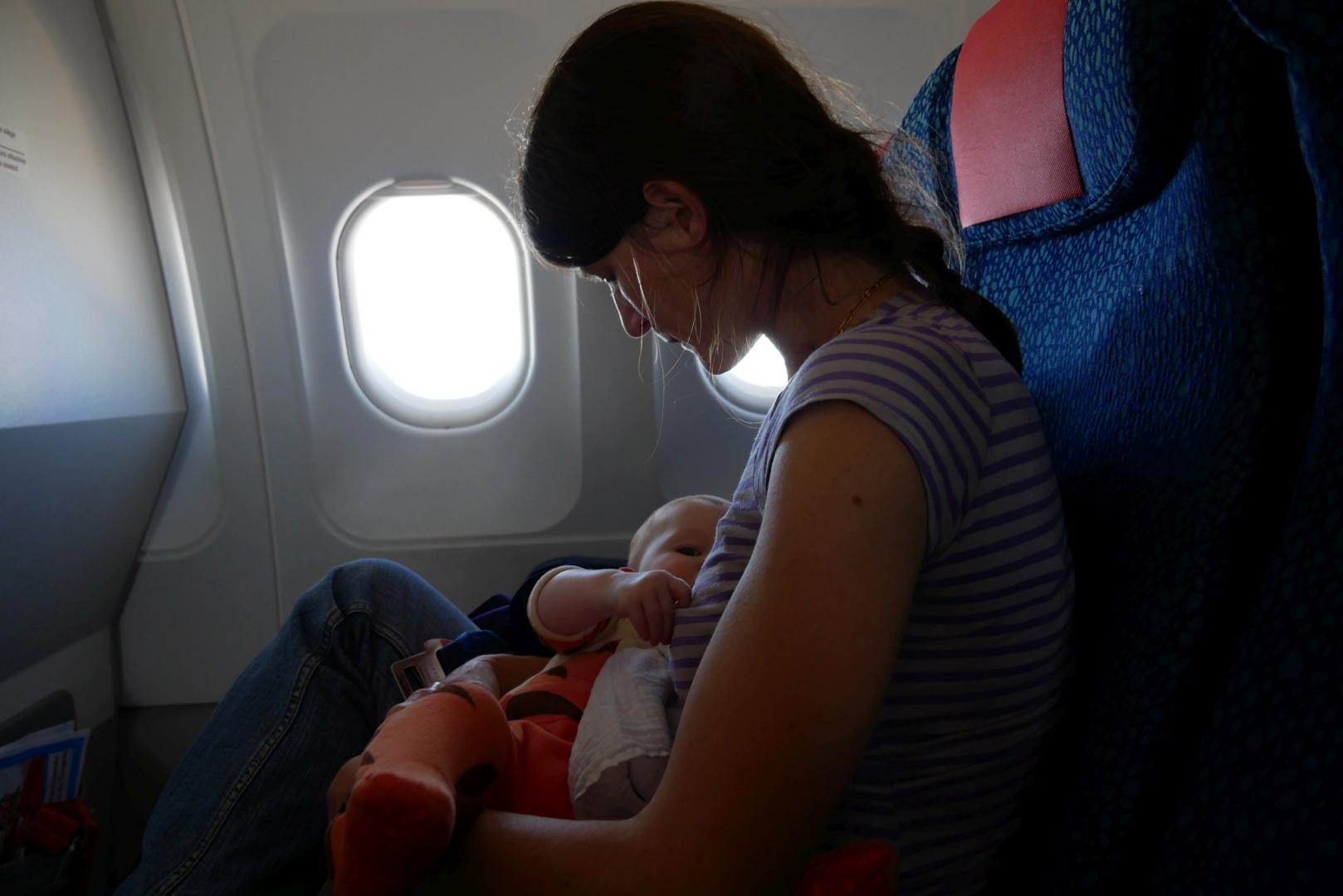 Pour le reste, ça a bougé, on est montés dans l’avion et moi j’ai fait un vol sans le moindre pleur. J’ai pas mal séduit le personnel de bord, ils m’ont installé un lit, j’ai roupillé un peu puis joué et le vol s’est couronné en apothéose sur une tétée pendant la descente. Bref que du bon, à refaire.