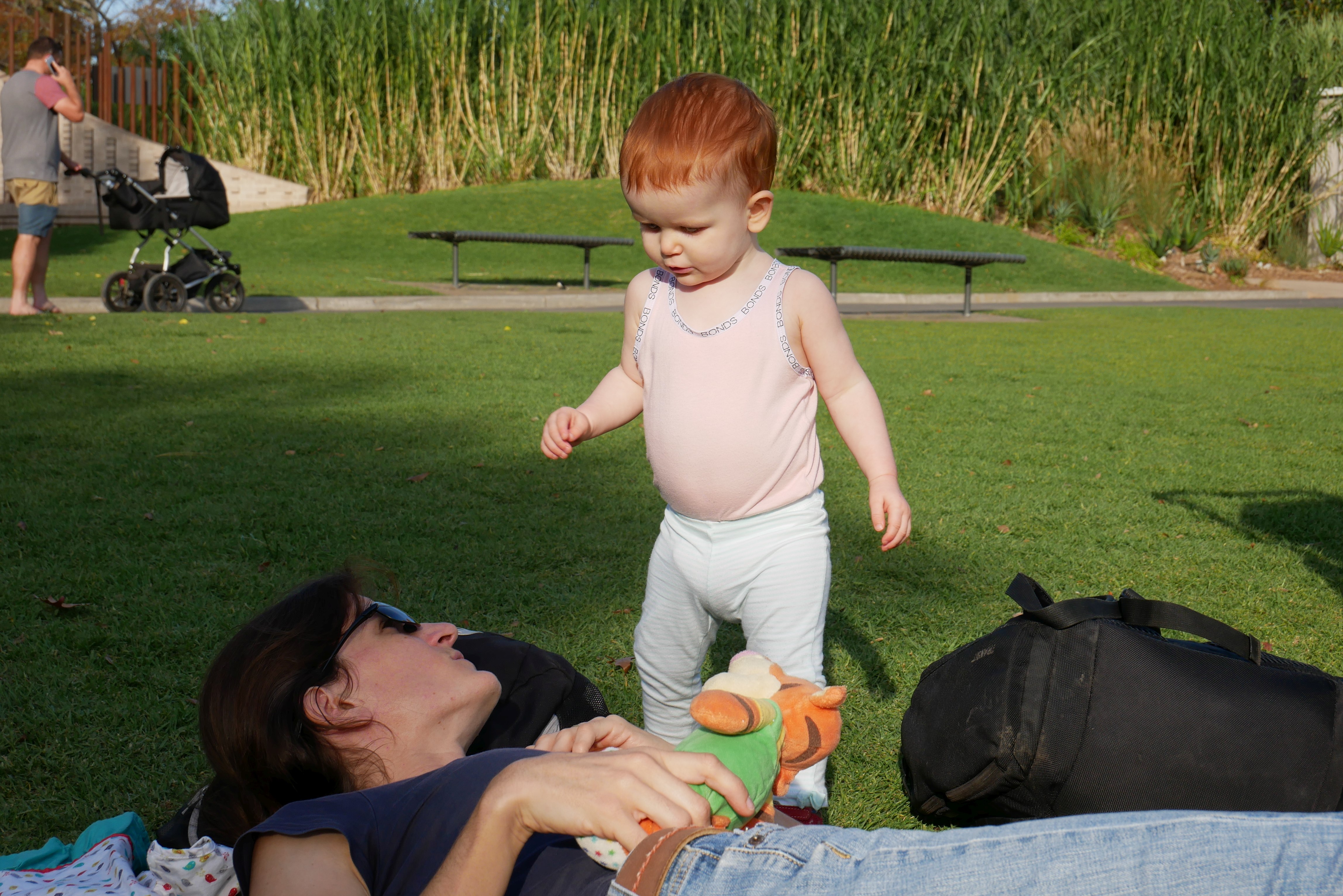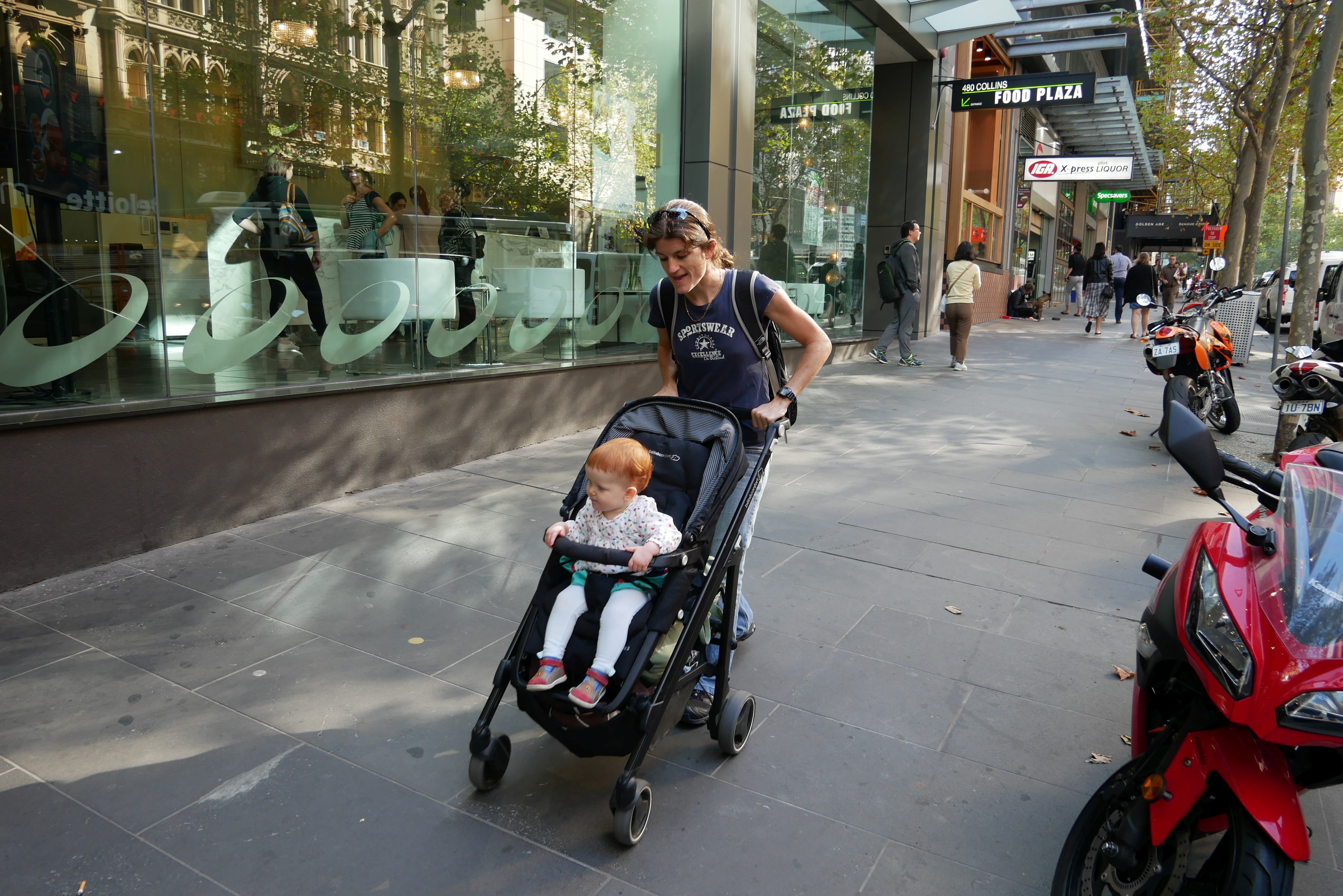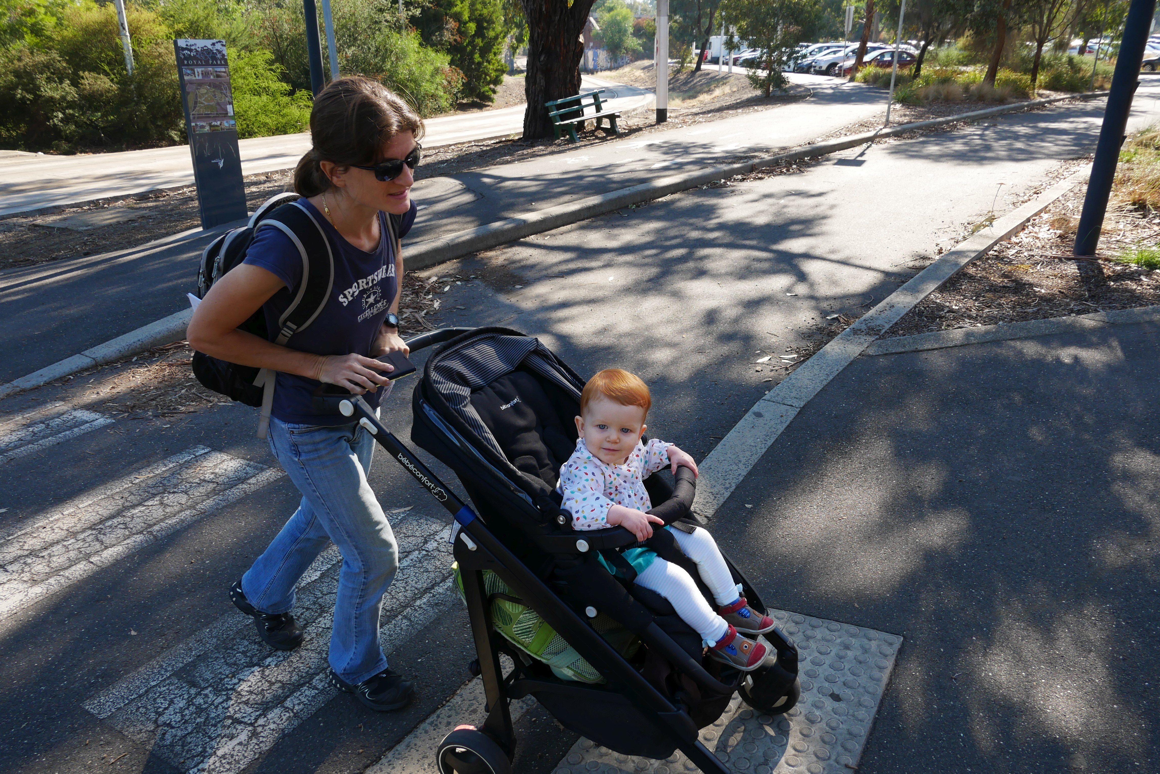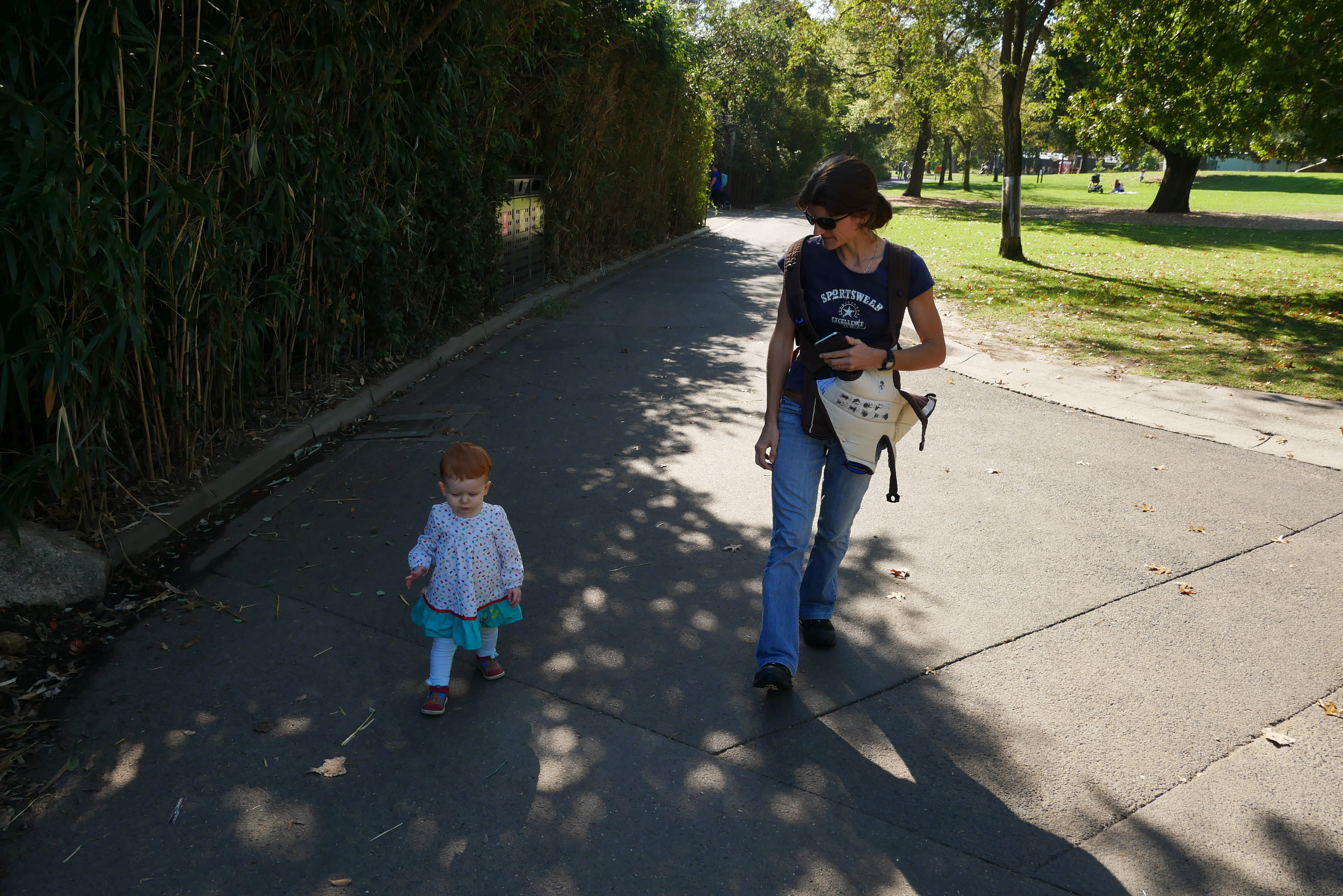 Ensuite on a roulé dans une voiture que je ne connaissais pas, et on est arrivé à l’hôtel. J’ai cru comprendre que c’est là qu’on va habiter un peu. Elle est très bien la chambre d’hôtel, j’ai commencé à l’explorer dès le début et j’y ai fait une bonne sieste. Ensuite on s’est promenés, avant de partir on m’a mis tout plein de vêtements … qu’est-ce que c’est que cette histoire de mettre plusieurs vêtements ? j’espère qu’ils n’auront plus ce genre d’idées tordue mes parents. Pendant la promenade je suis restée dans ma poussette et j’ai contemplé.