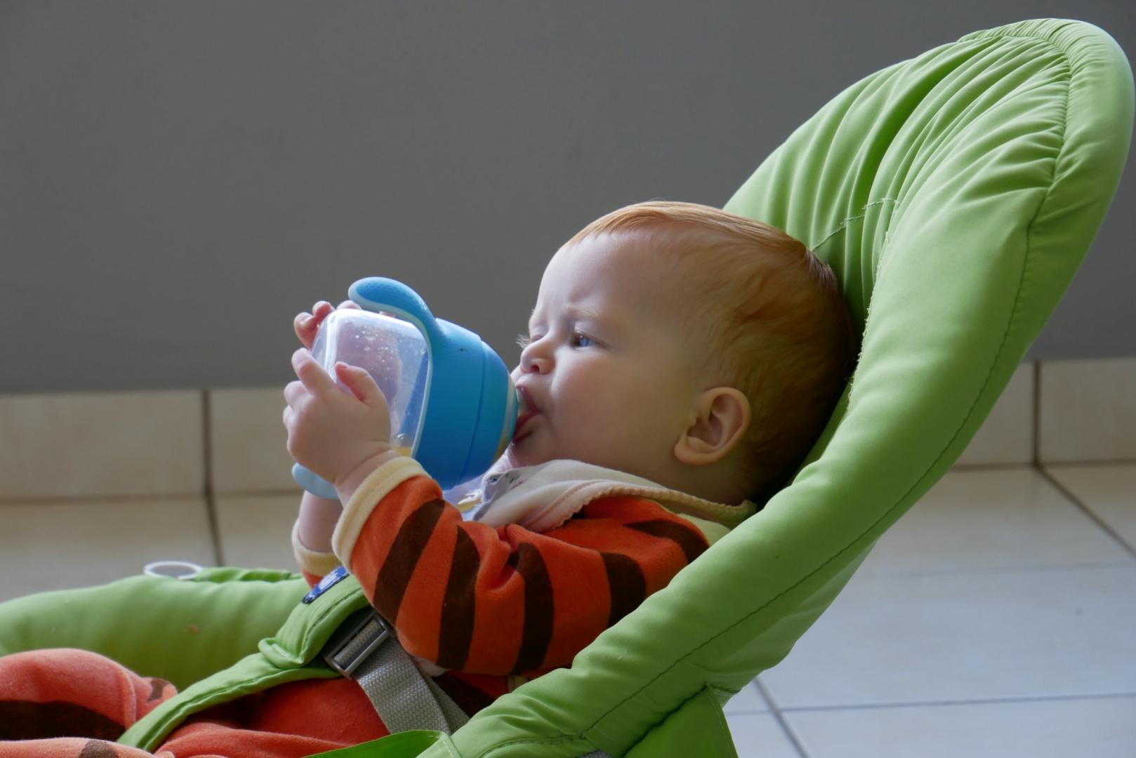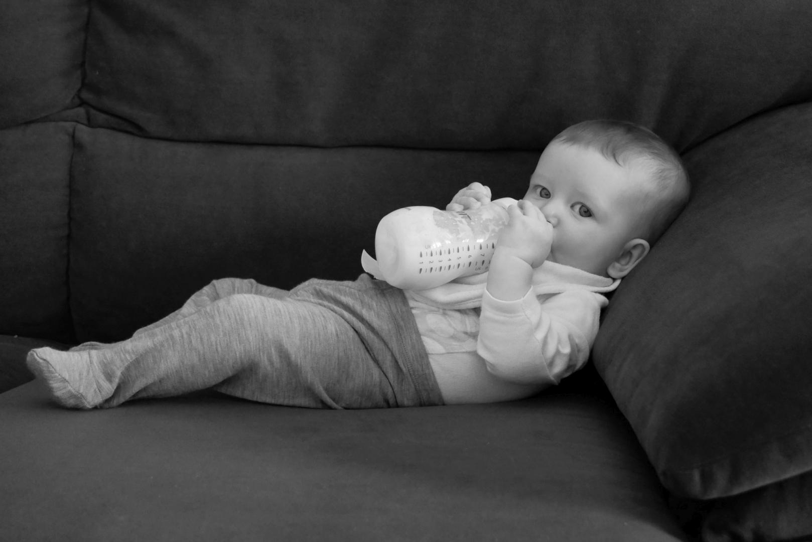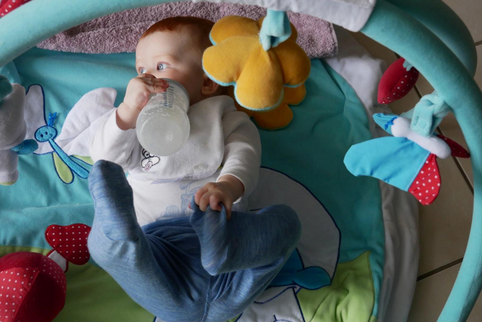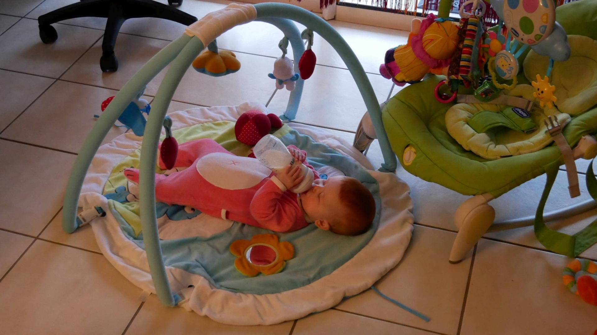 Eh oui ! J’aime bien tenir mon biberon toute seule, certes je le faisais avant mais maintenant j’affine mon niveau d’expertise. Normal, demain j’ai 7 mois ! Sinon on me dit toujours que je suis trop mignonne et que j’ai vraiment un bon appétit. Je tiens bien assise maintenant, je tombe rarement, seulement quand je m’emballe un peu trop ! Mais bon assis c’est bien mais ça ne bouge pas ! mon idée est désormais, une fois assise, d’aller chercher les objets, je change donc de position. Mais le souci, d’ordre purement technique, c’est que pour l’instant je sais avancer … en marche arrière.  Vous parlez si c’est pratique !