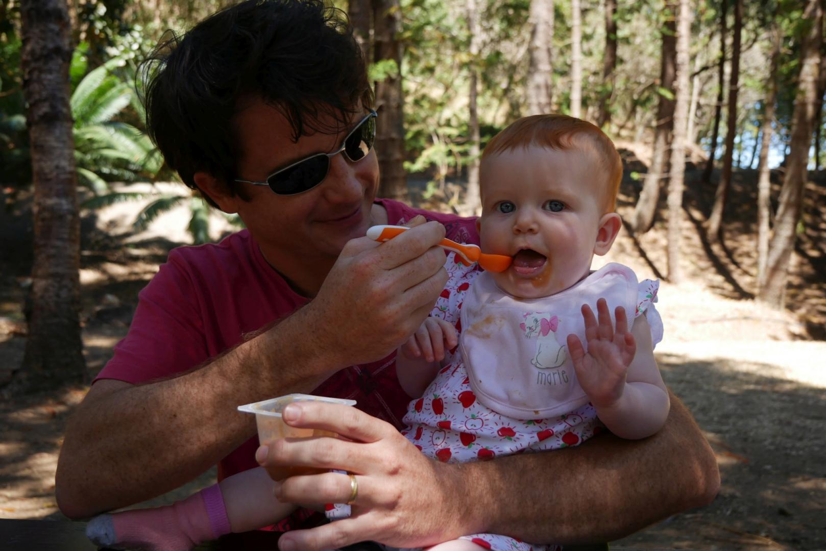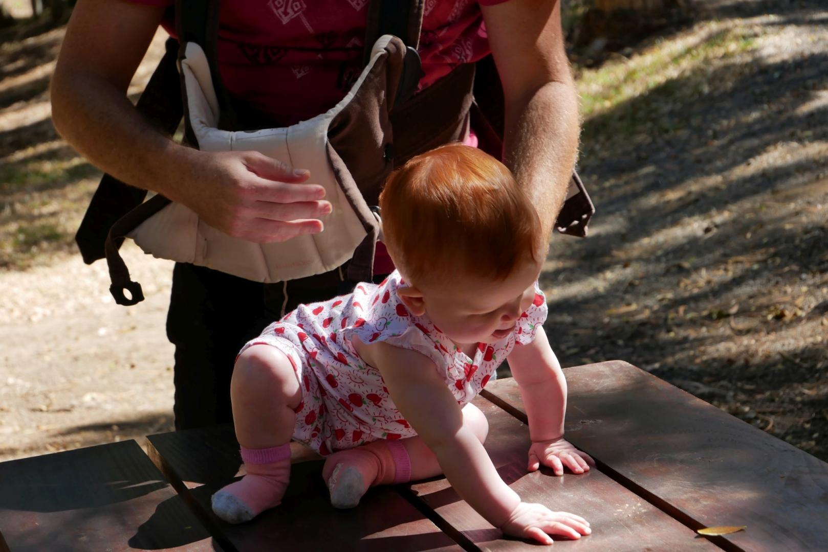 Les w-end aussi, mes parents continuent de m’amener au parc, où je déjeune avec eux, observe tout depuis le « kangourou » (surtout les paons) et sieste parfois et brièvement, à la faveur de chaos alors que je suis dans ma poussette (eh oui, plus ça remue mieux je m’endors ! Papa et maman tentent donc de viser tous les trous possibles).