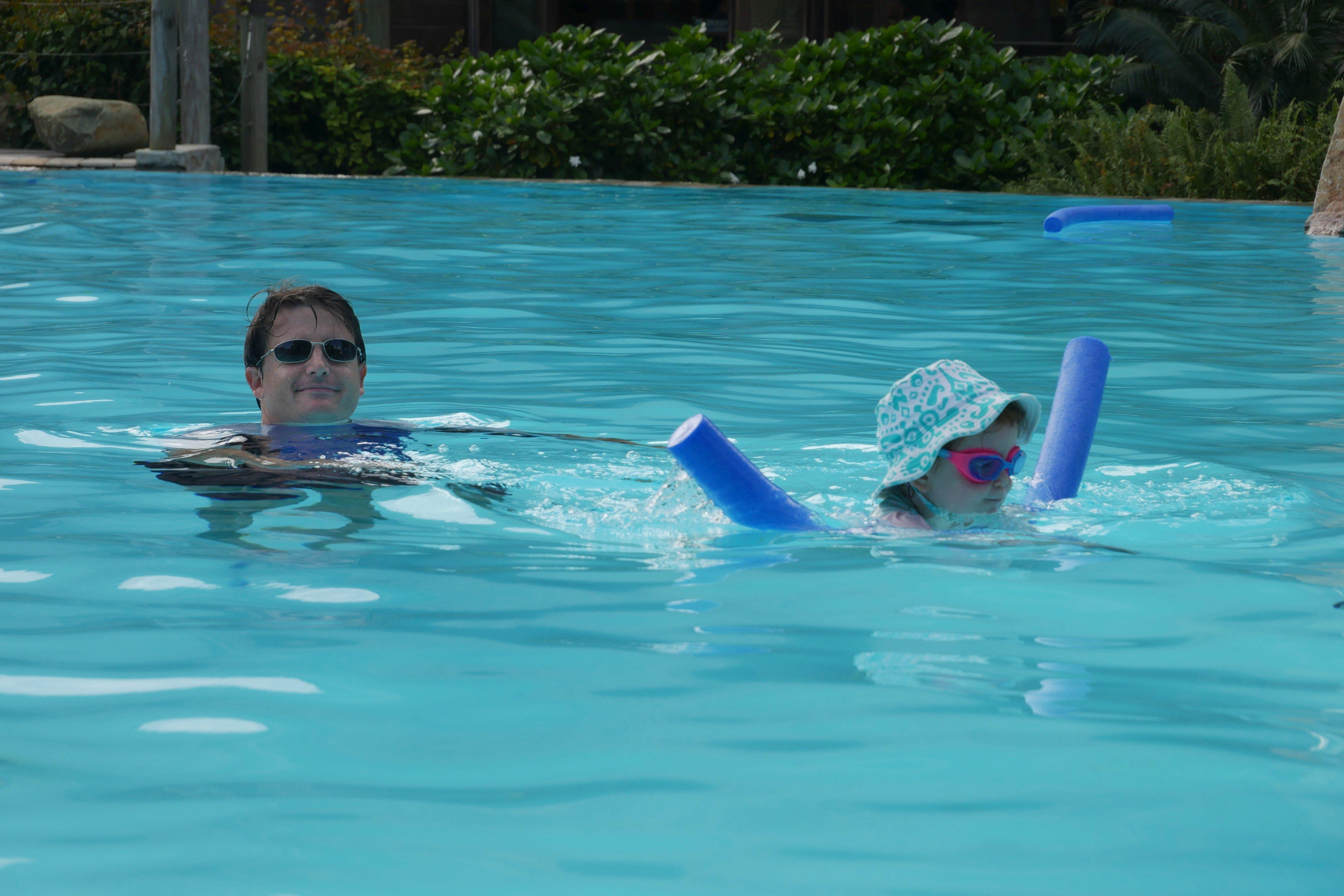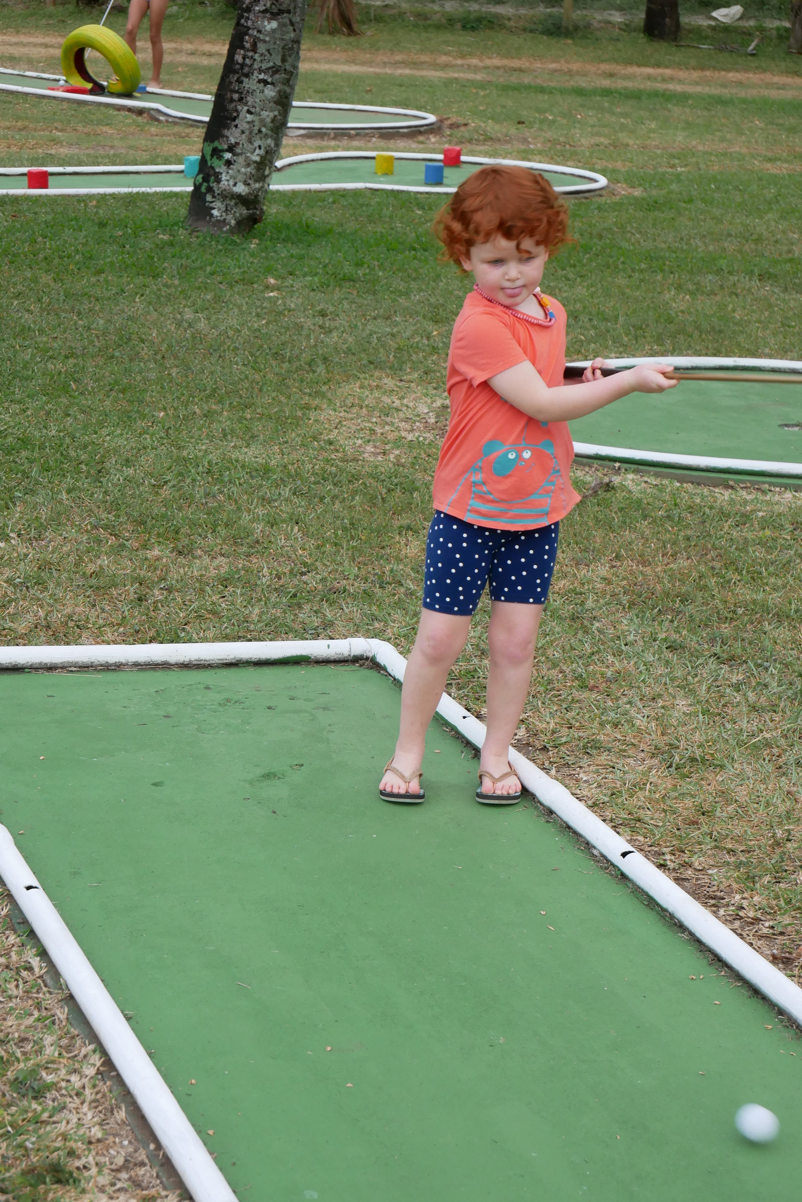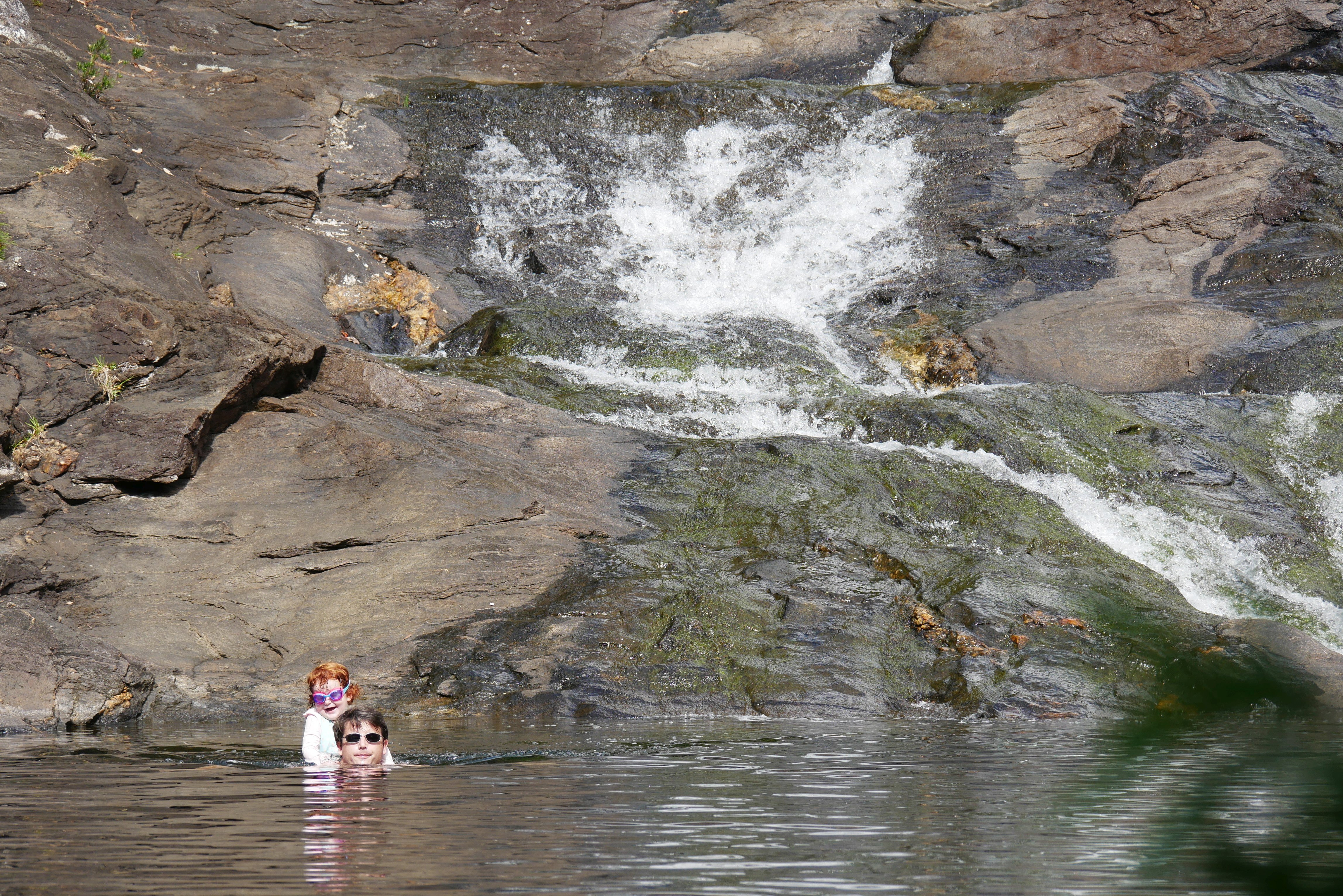 On a dormi dans plein de « bungalows » différents (eux ils disent que des fois c’est des chambres, d’autre fois des bungalows … pour moi c’est des bungalows). Et on a fait des trucs super : du canoé, des visites, du baby foot et du mini golf à l’hôtel, on a visité des grottes, on s’est baignés à la plage et à la cascade, j’ai joué – longtemps – dans une baignoire … Plein de choses quoi. J’avais emmené ma draisienne et je m’en suis bien servie. Franchement je me suis bien amusée et je crois que mes parents aussi. Et maintenant j’ai retrouvé ma chambre et tous mes doudous (on avait dû n’en prendre qu’une « sélection ») et j’ai repris l’école. C’était chouette !